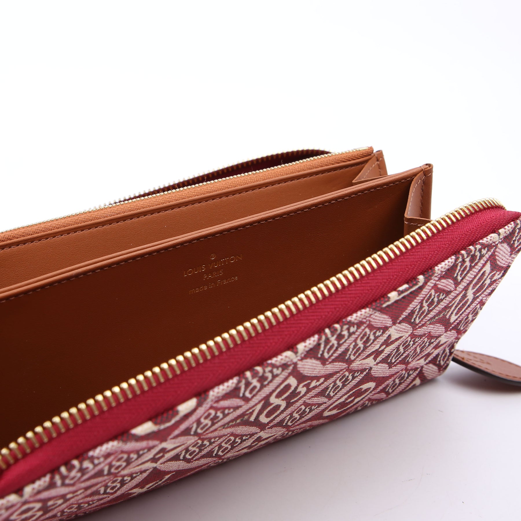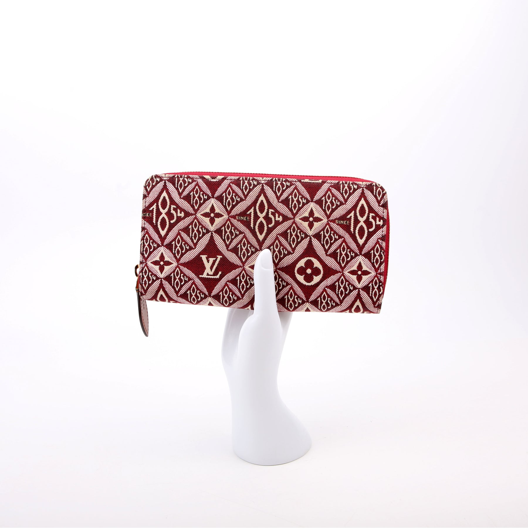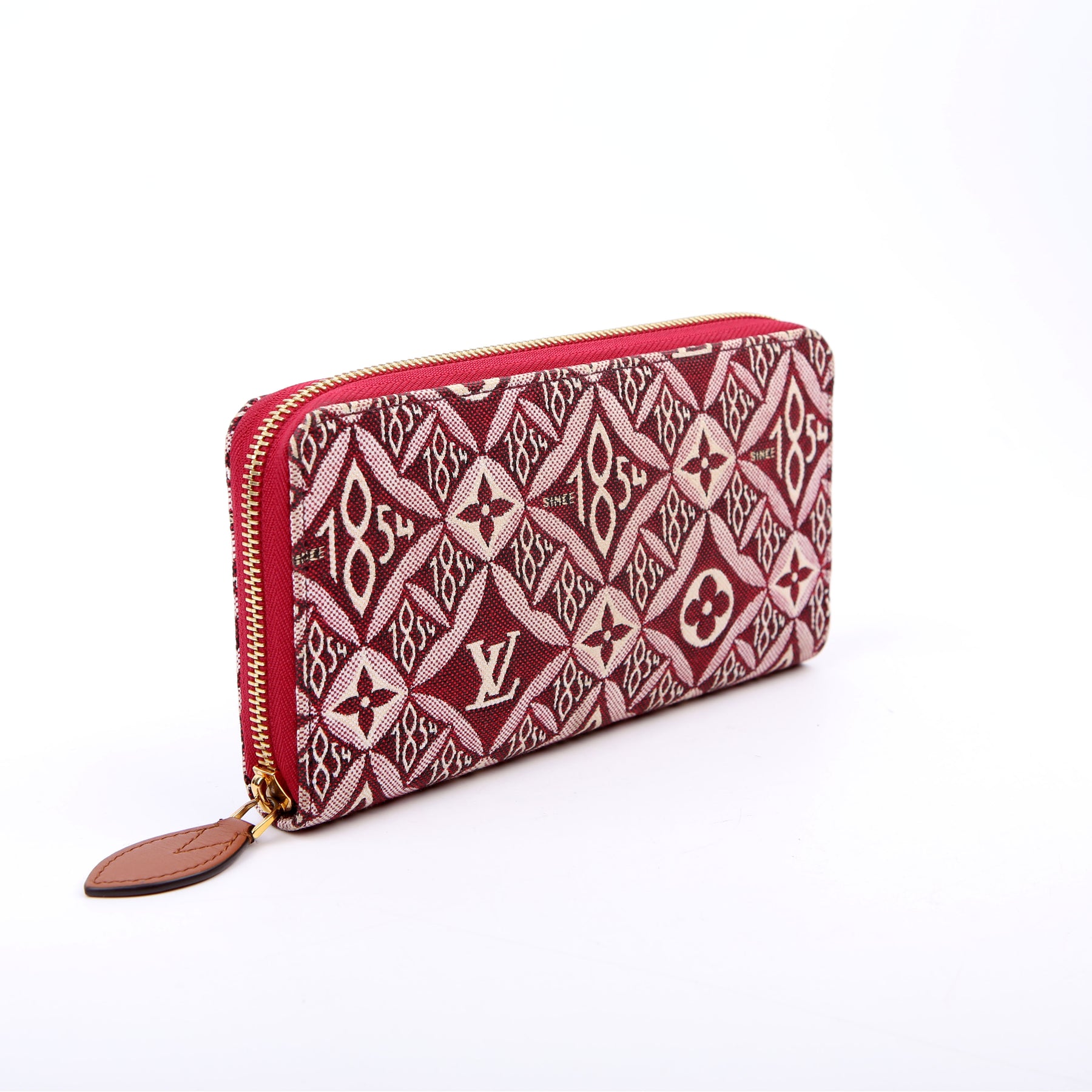 This pre-owned Louis Vuitton Zippy Wallet is guaranteed 100% authentic. The exterior is in the classic Louis Vuitton Since 1854 Jacquard canvas.