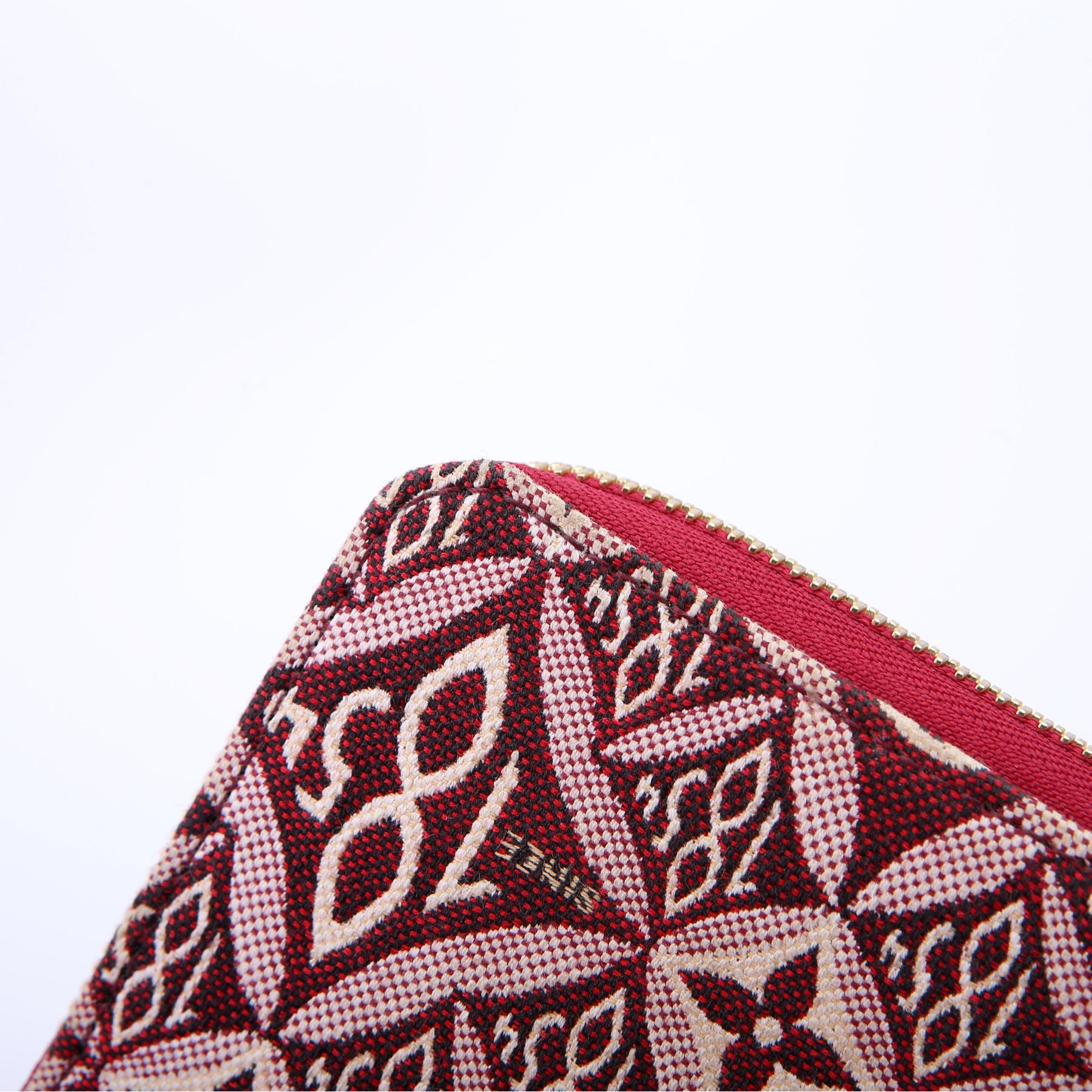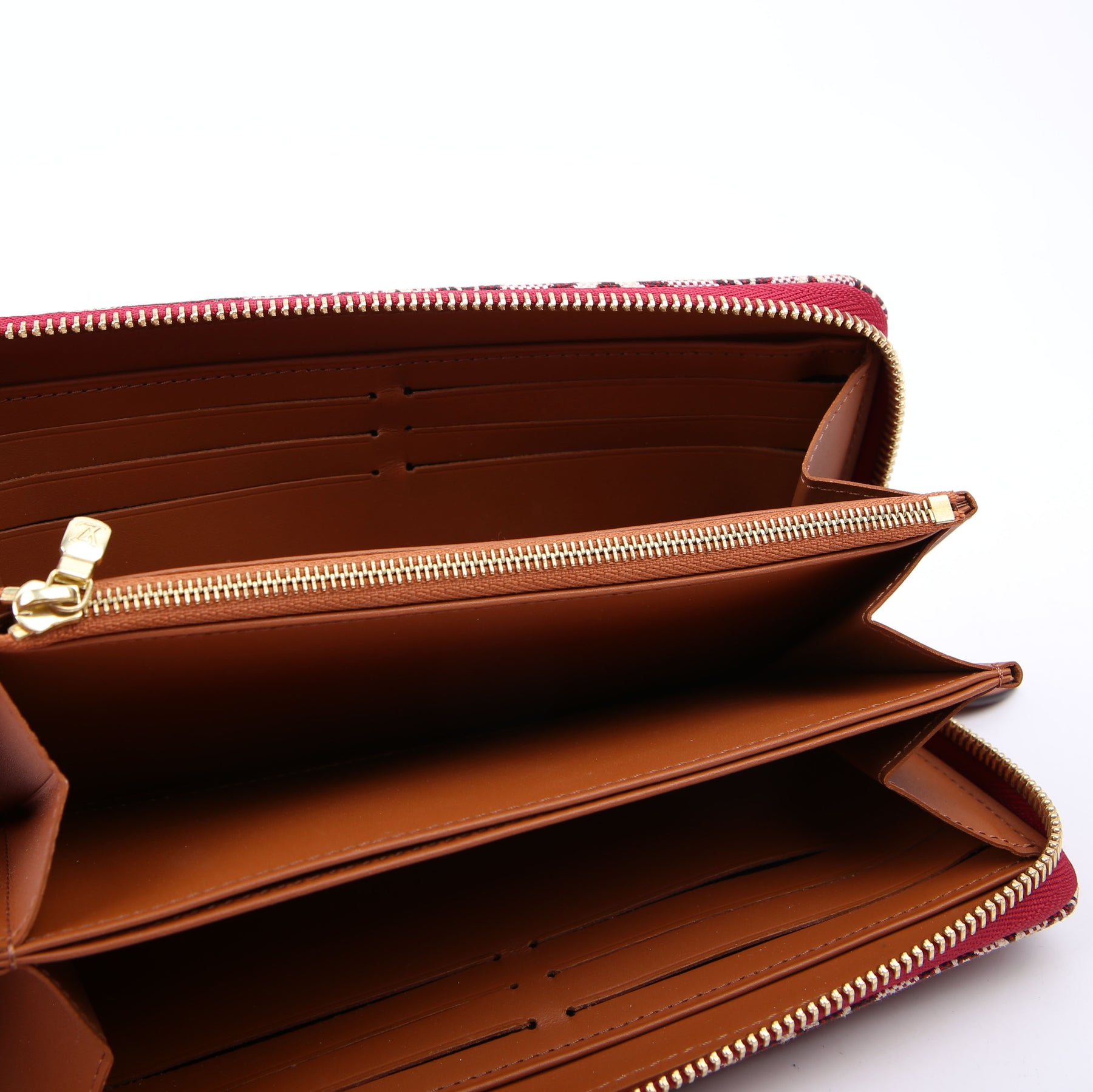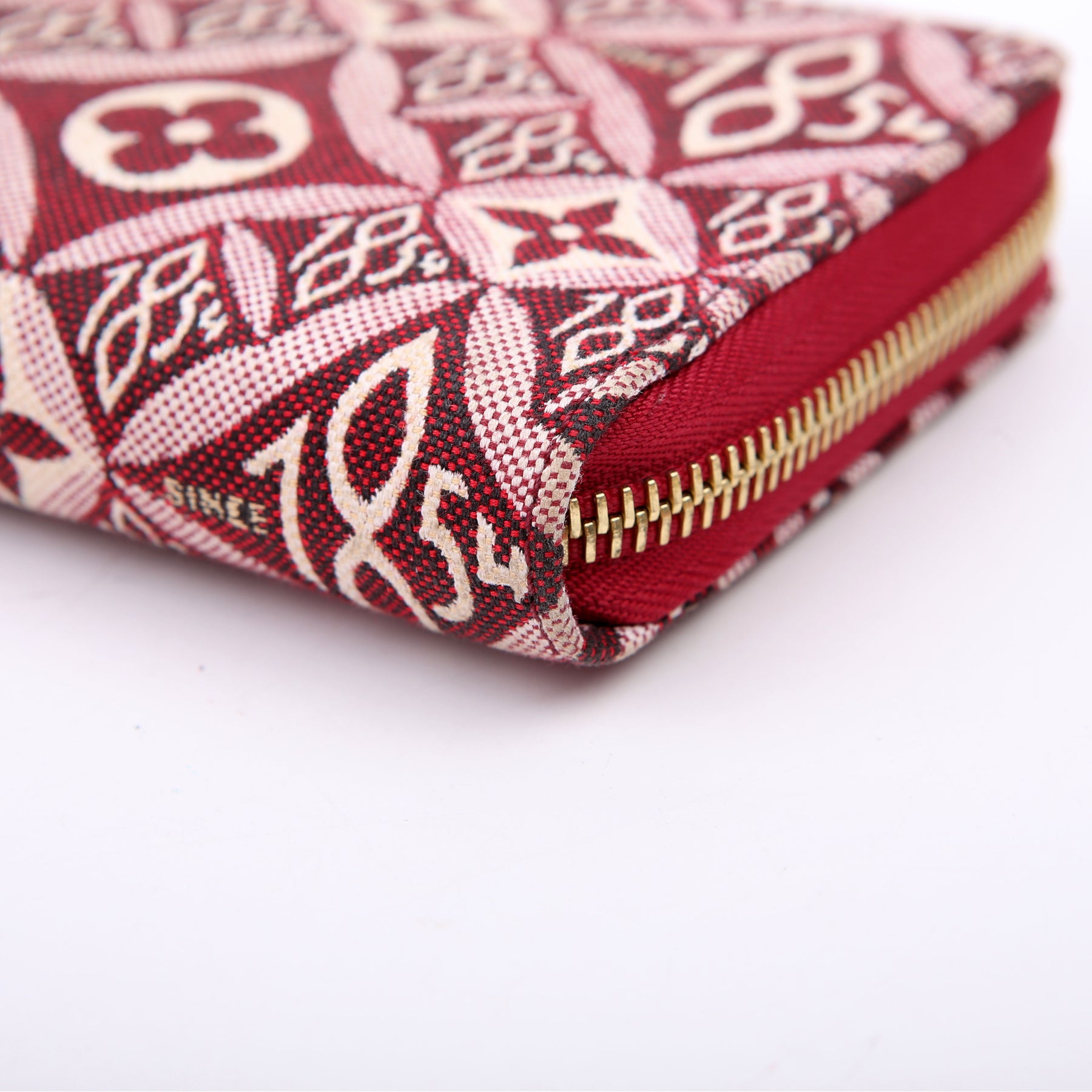 This pre-owned Louis Vuitton Zippy Wallet is guaranteed 100% authentic. The exterior is in the classic Louis Vuitton Since 1854 Jacquard canvas.