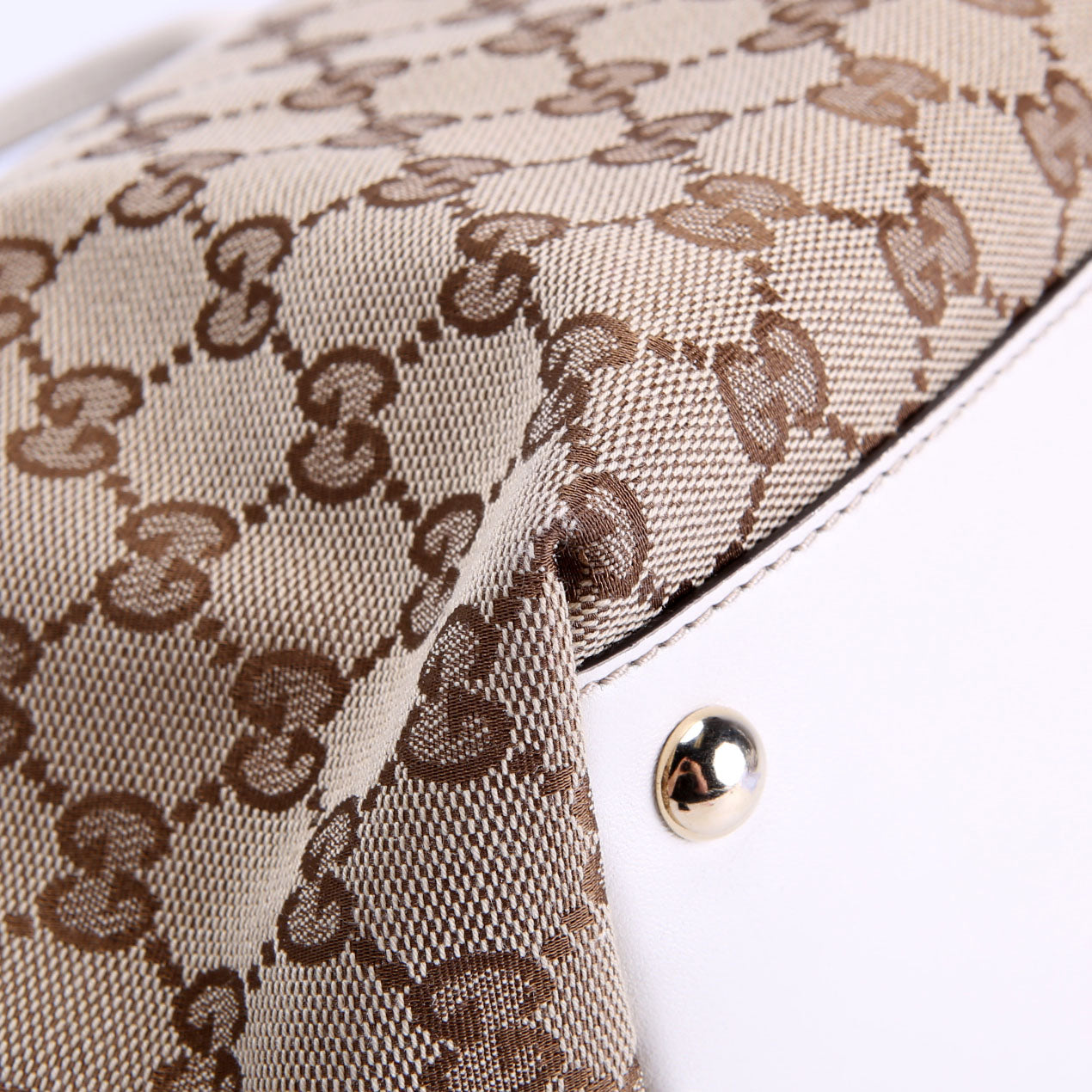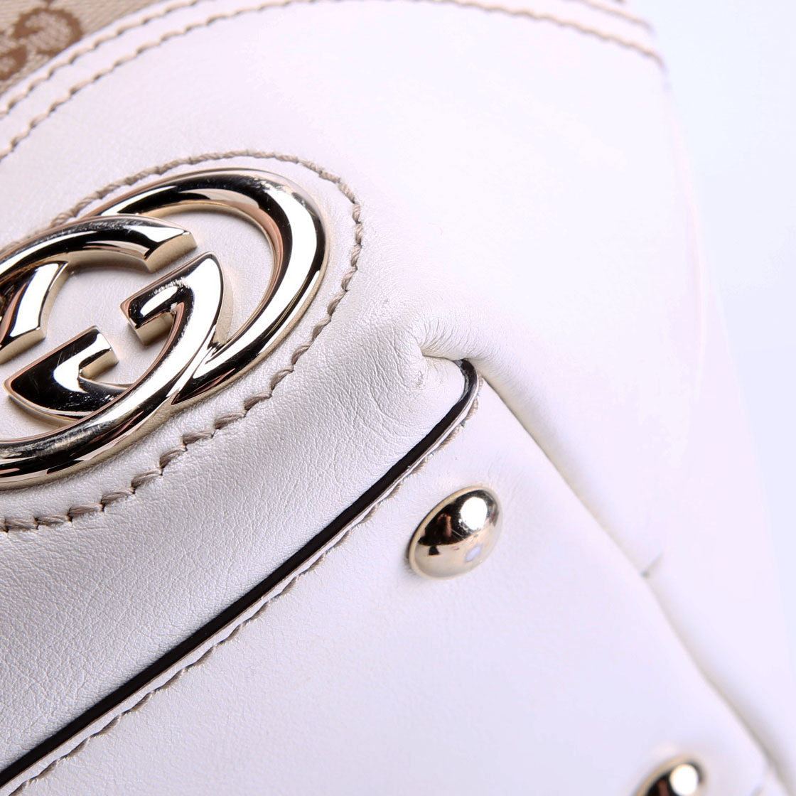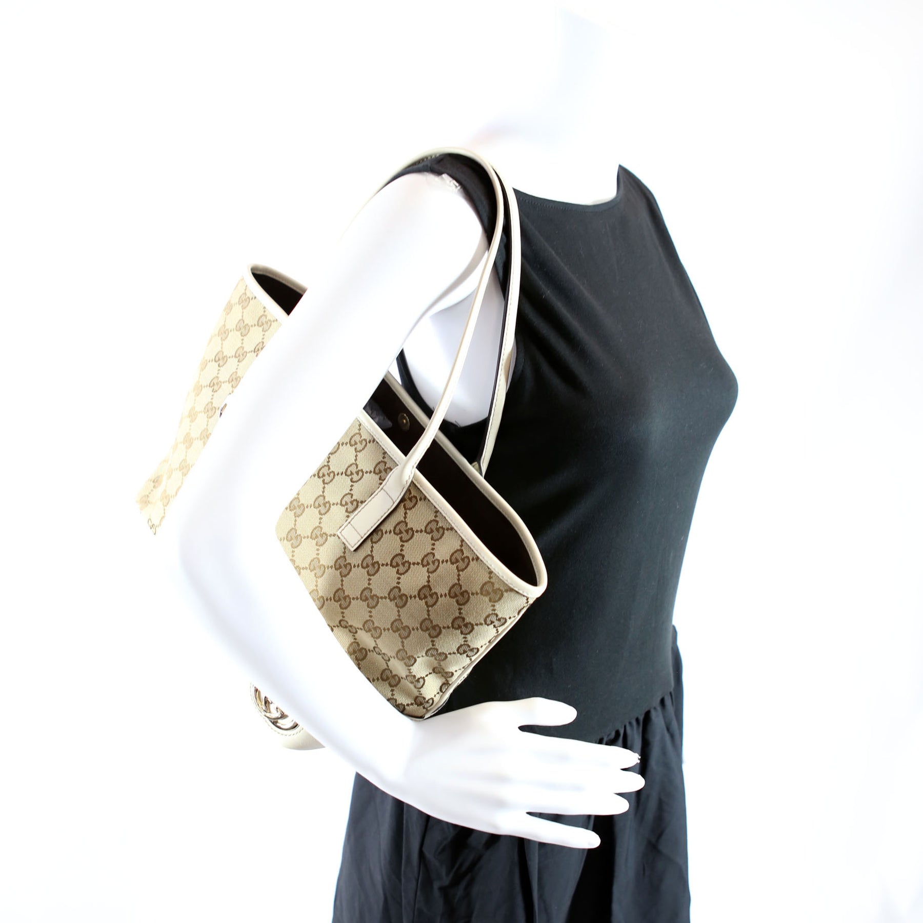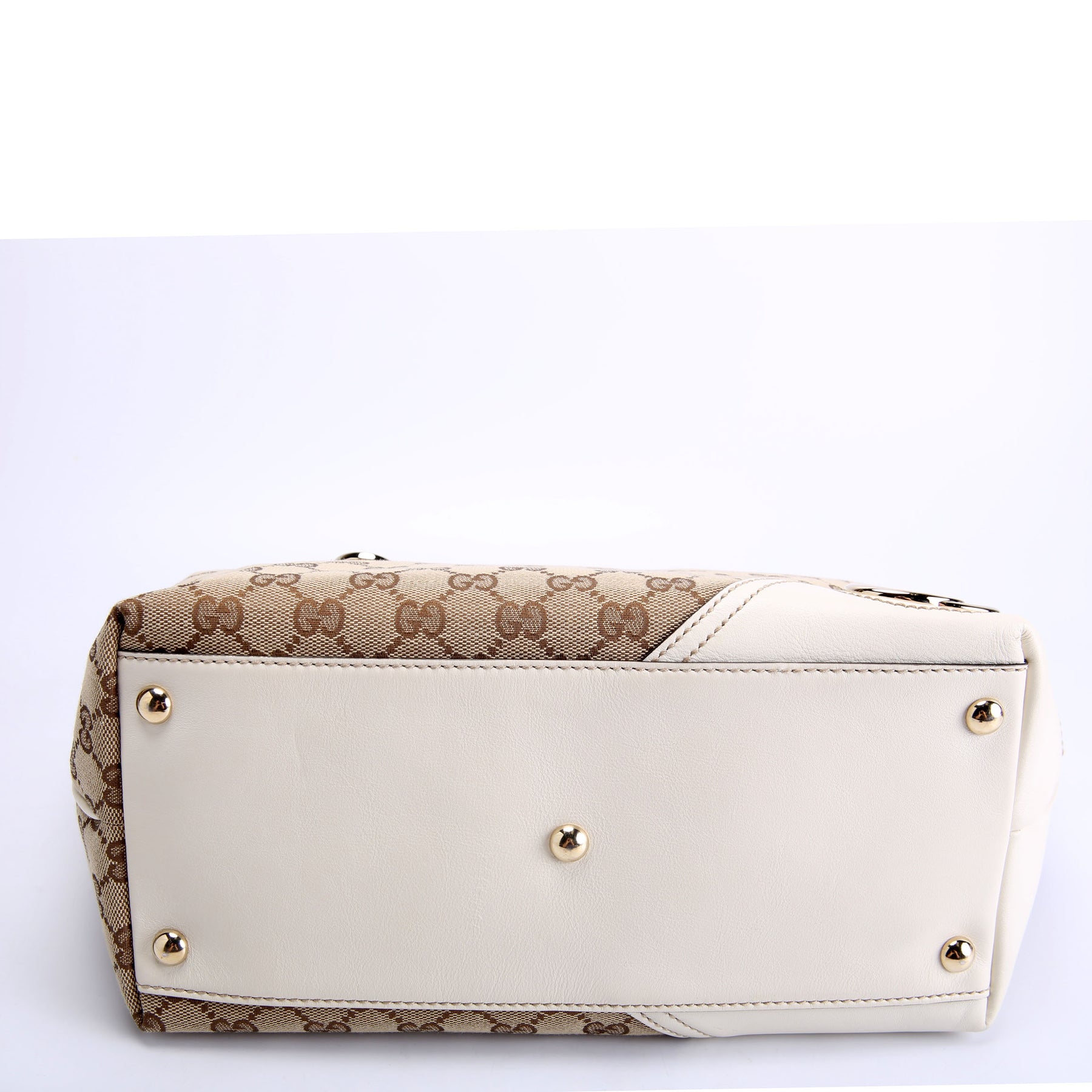 This pre-owned Gucci Britt Shoulder Bag Small is guaranteed 100% authentic. The exterior is in the classic Gucci GG Canvas.