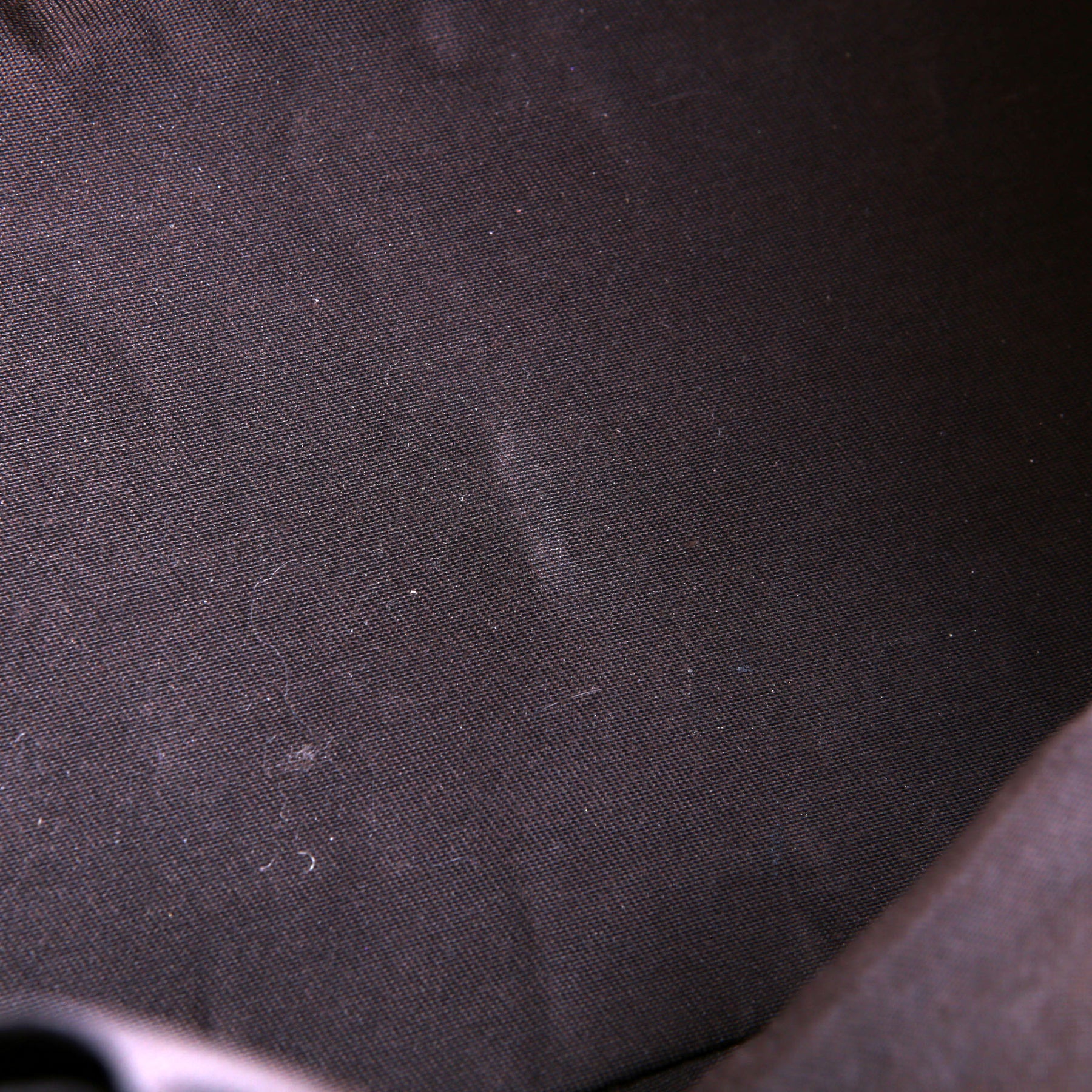 Interior: The interior shows minor stains. The interior features one zip closure pocket , and two open pockets.