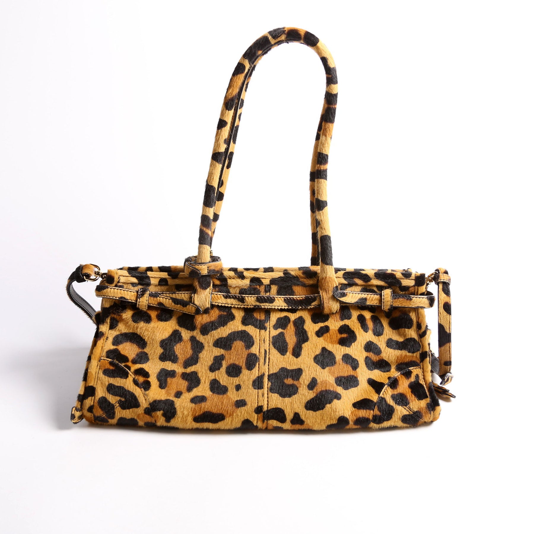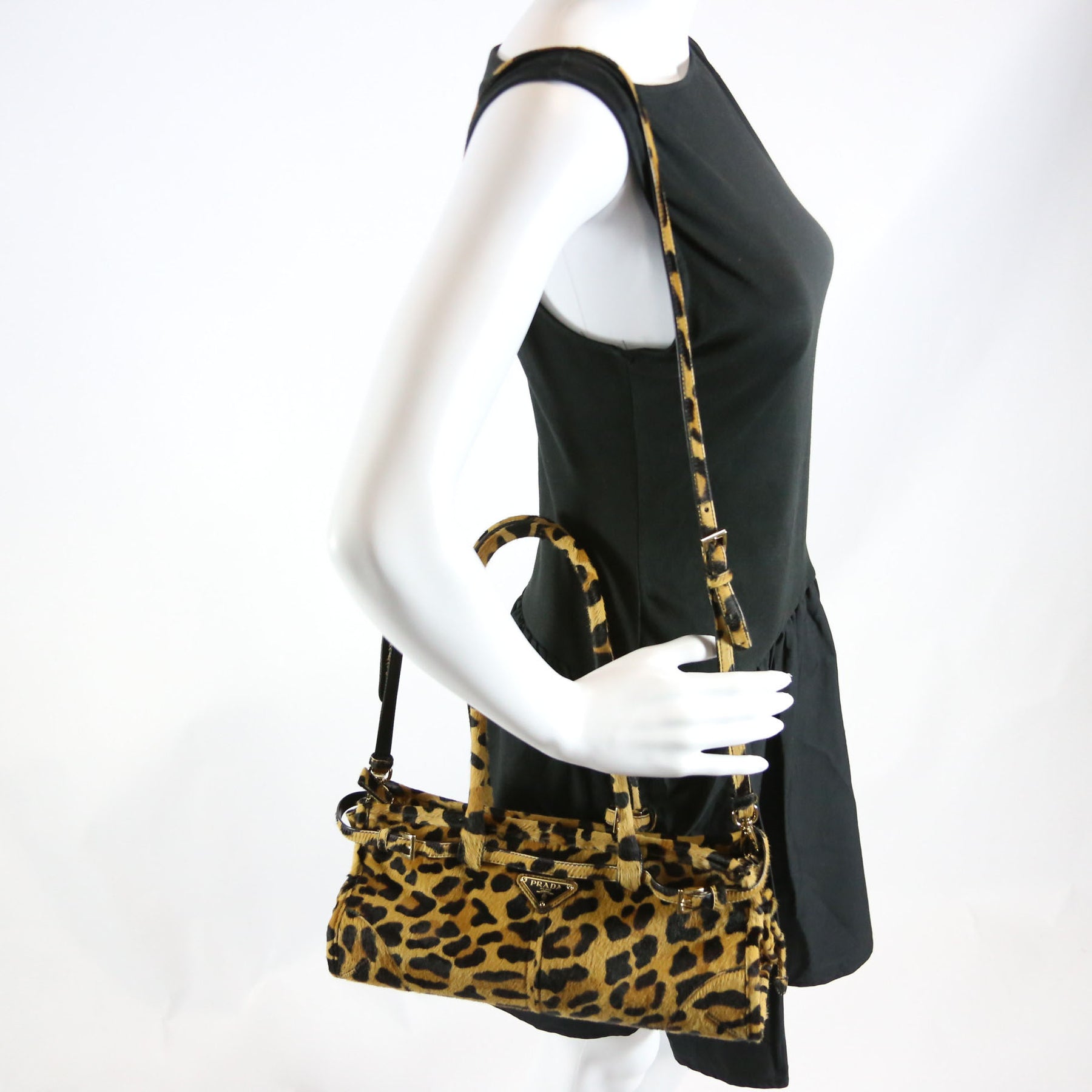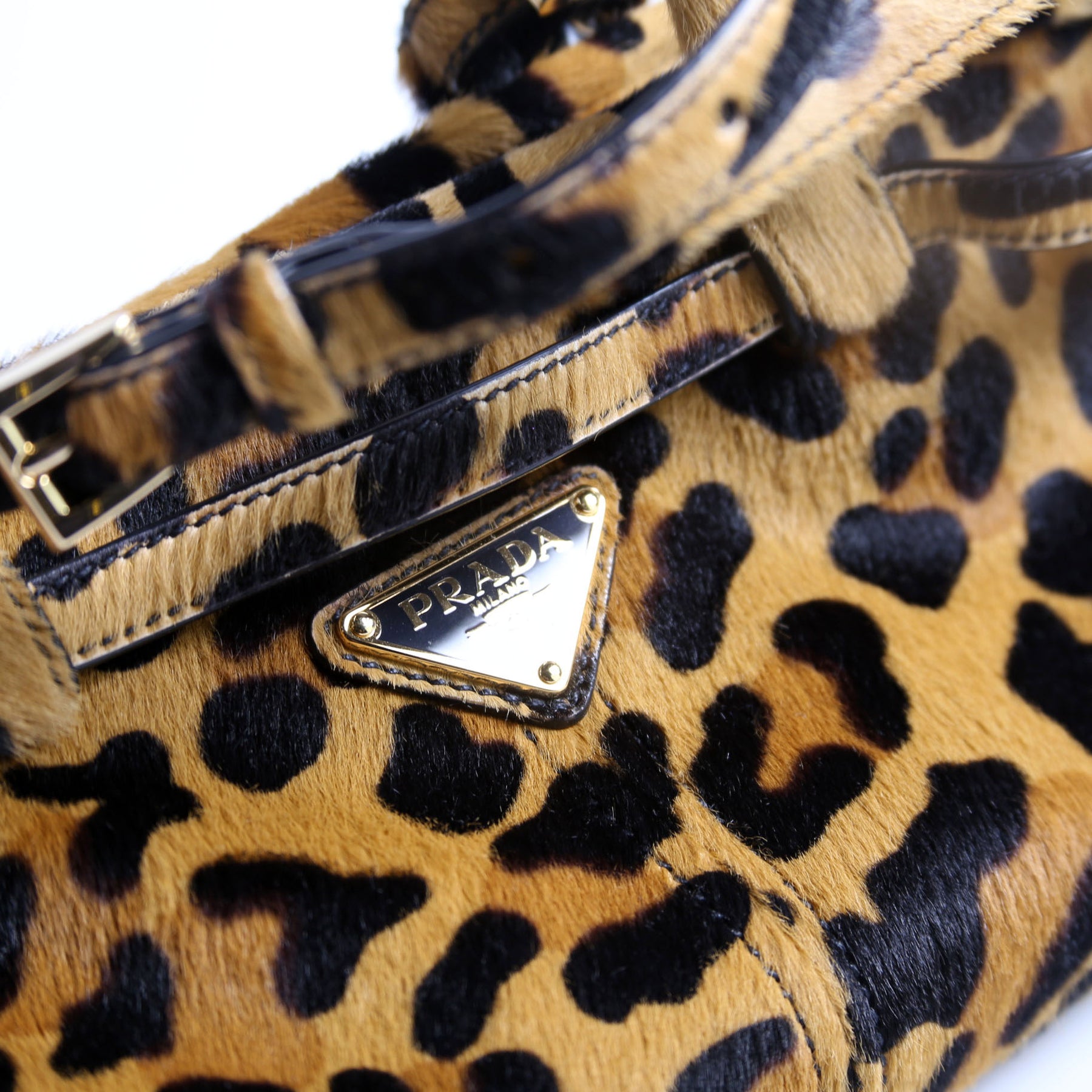 This pre-owned Prada Bonnie Medium Shoulder Bag is guaranteed 100% authentic. The exterior is in the classic Prada Calf Hair.