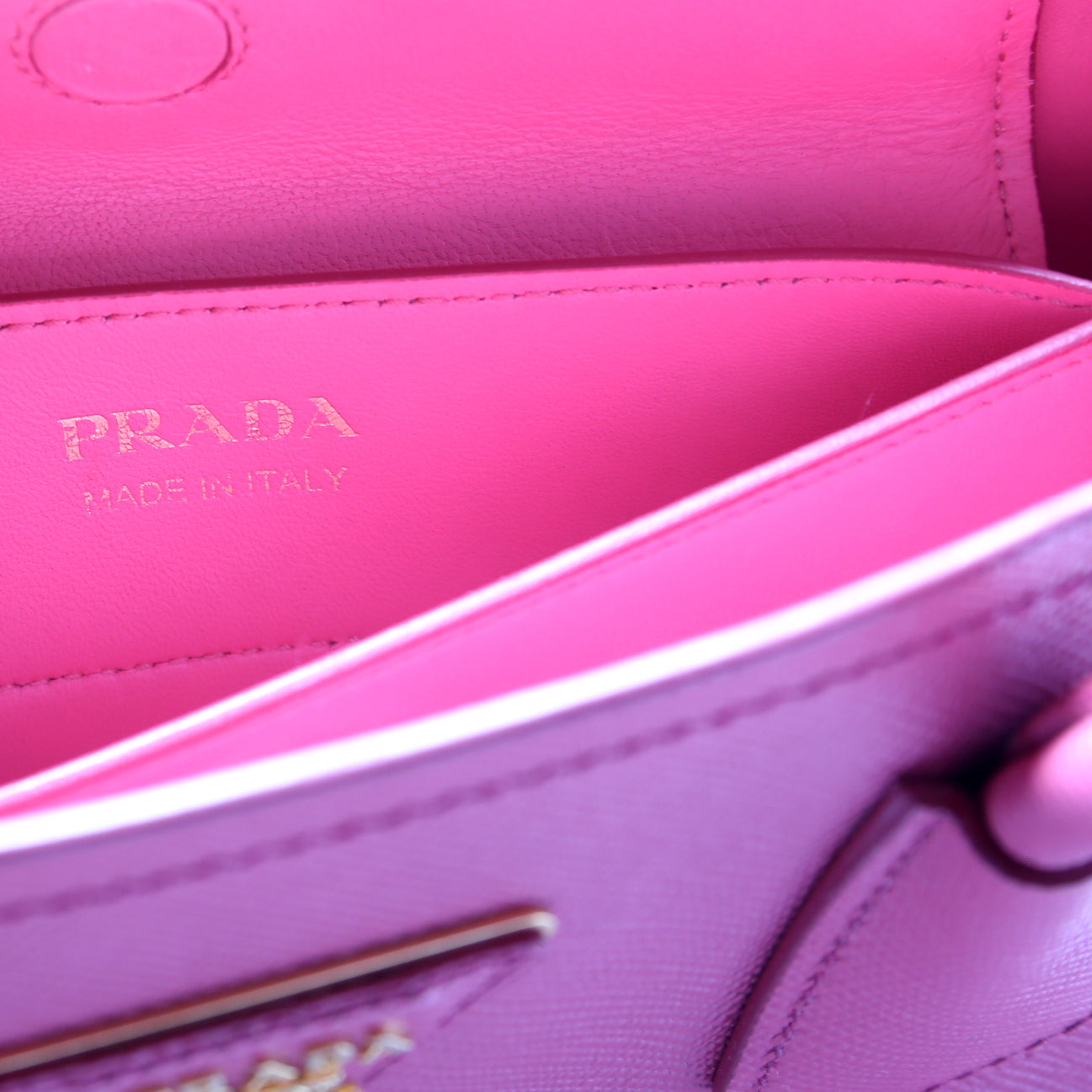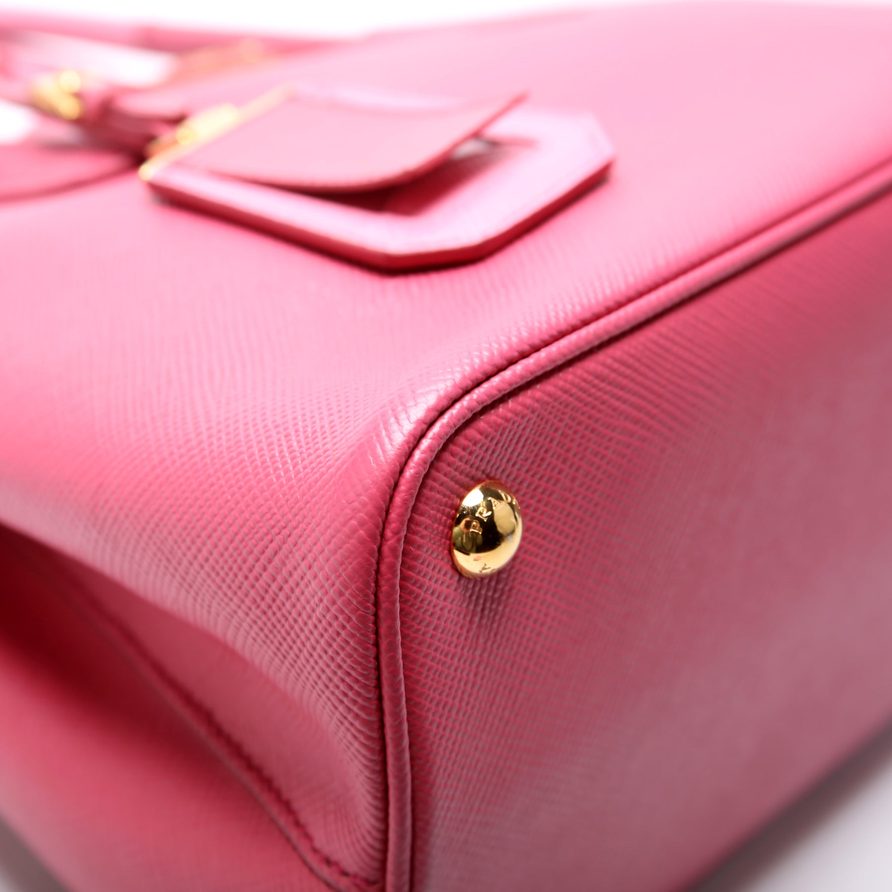 This pre-owned Prada Saffiano Cuir Double Small is guaranteed 100% authentic. The exterior is in the classic Prada Saffiano leather.