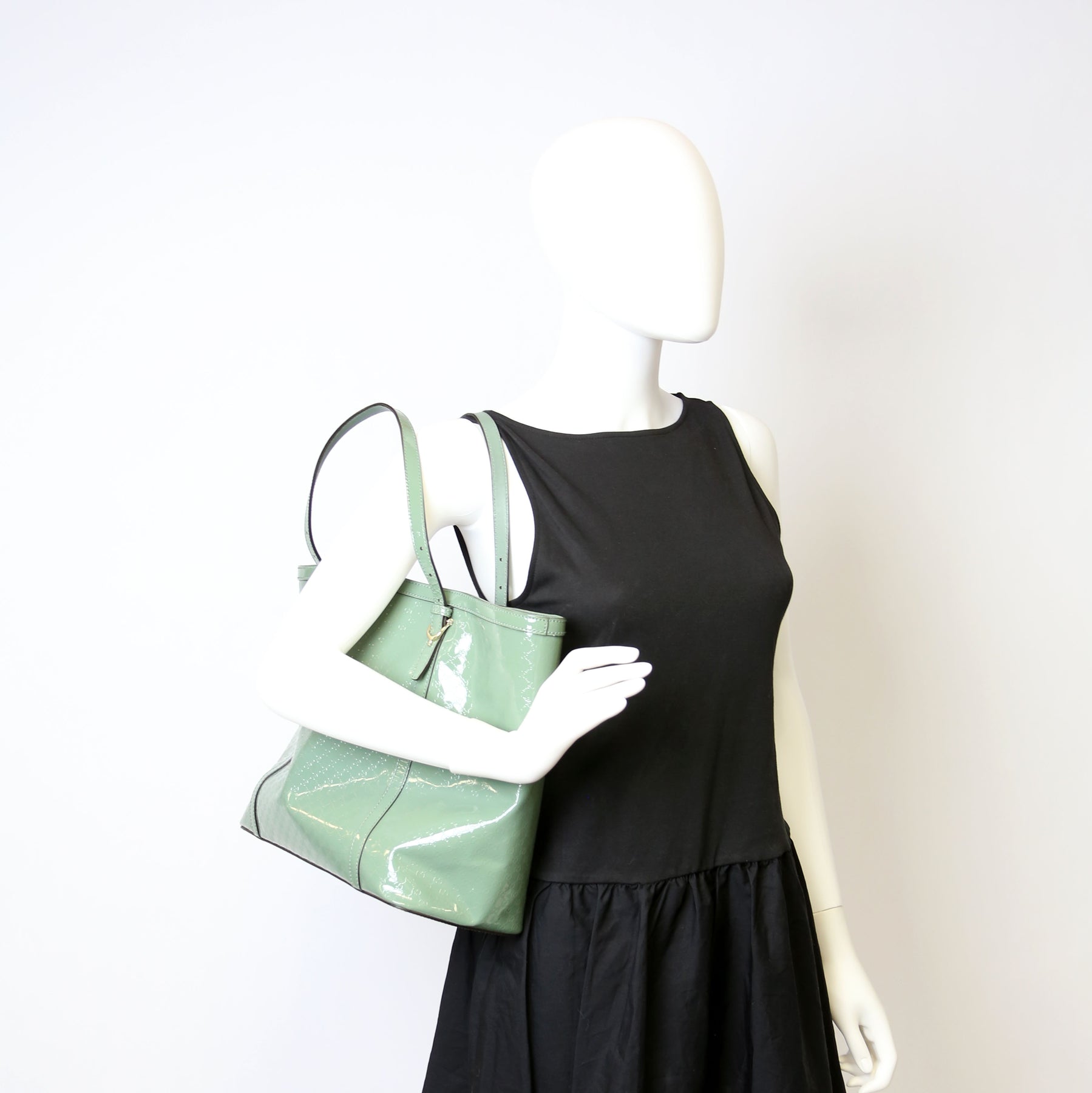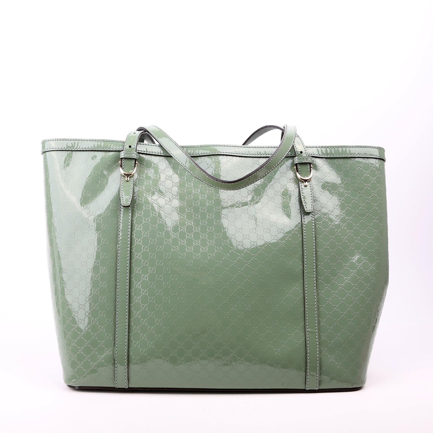 This pre-owned Gucci Patent Microguccissima Nice Tote is guaranteed 100% authentic.