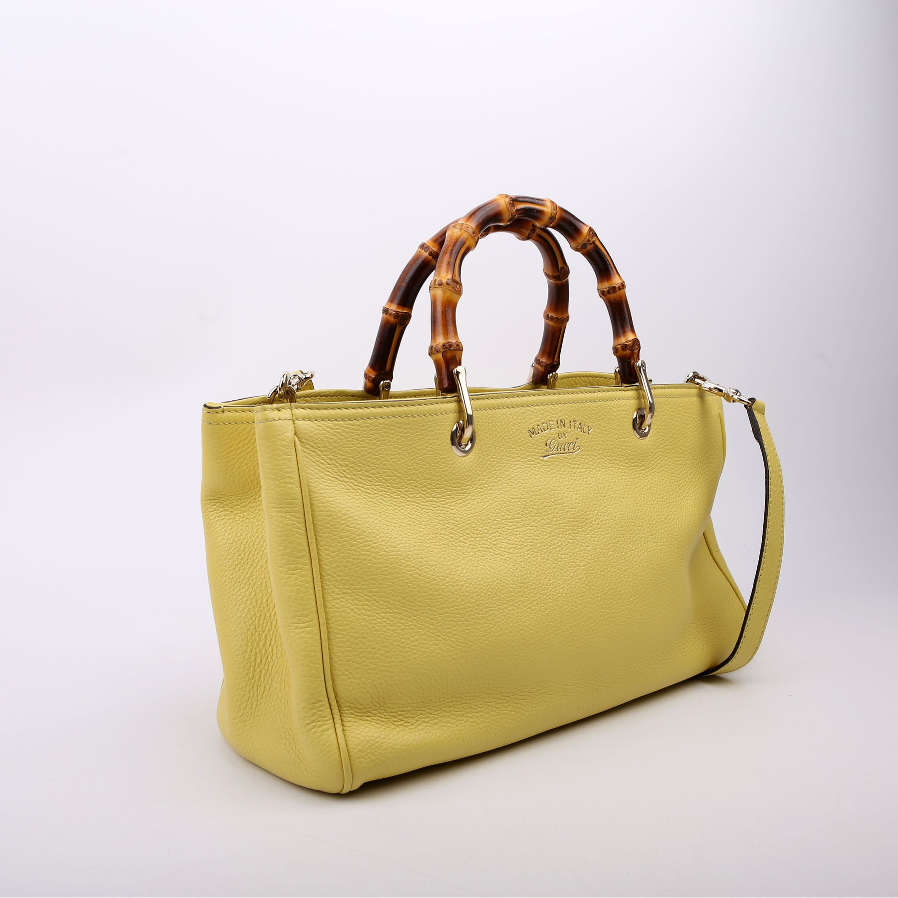 323660 Leather Bamboo Shopper Medium Yellow
