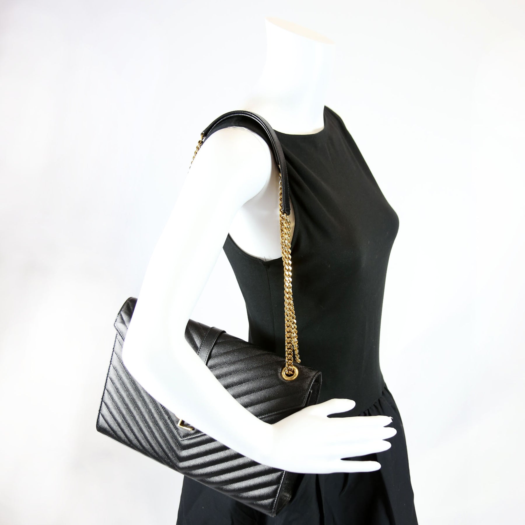 This pre-owned Saint Laurent Envelope Chevron Large is guaranteed 100% authentic.