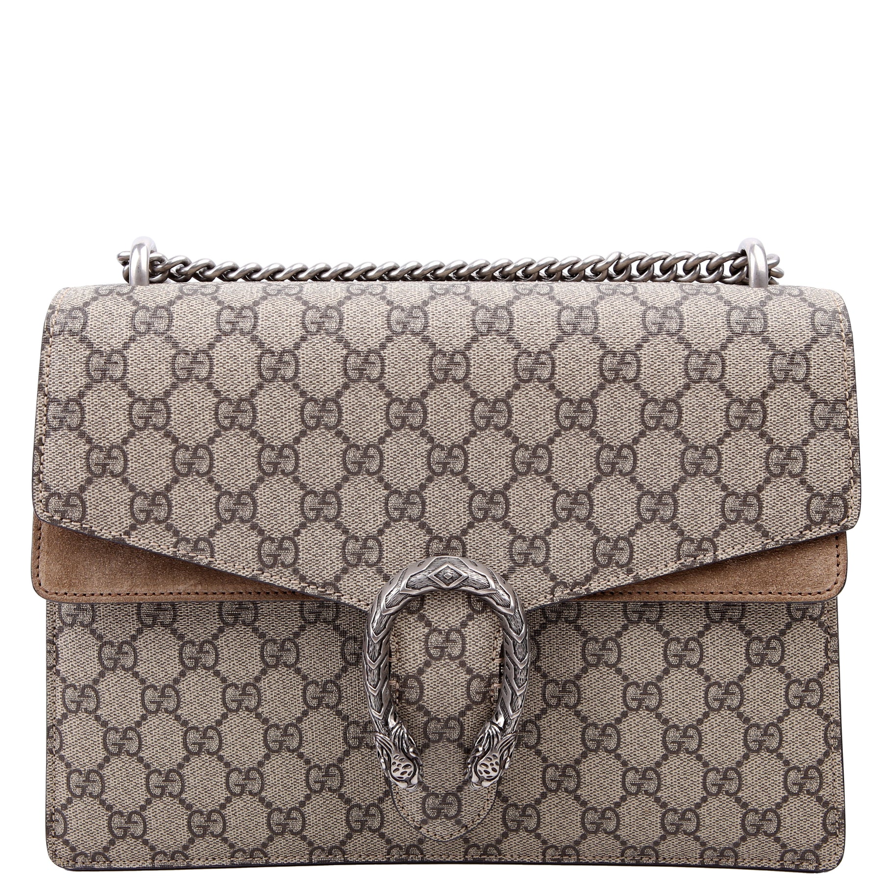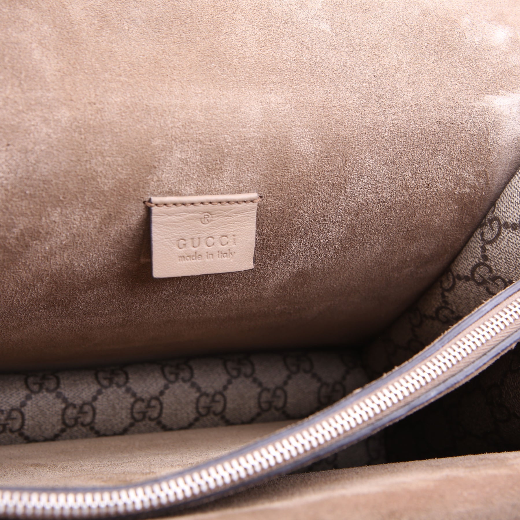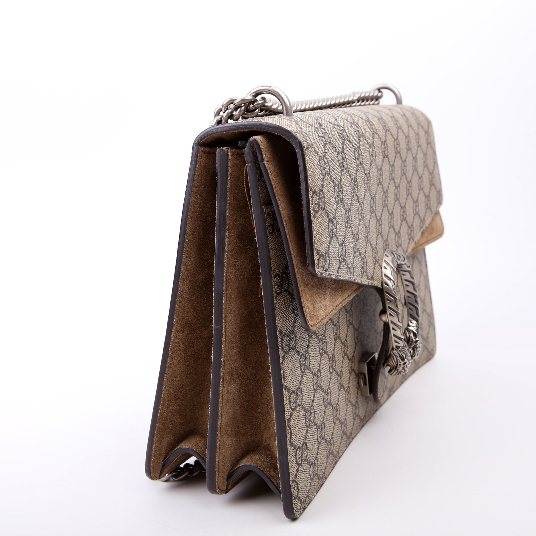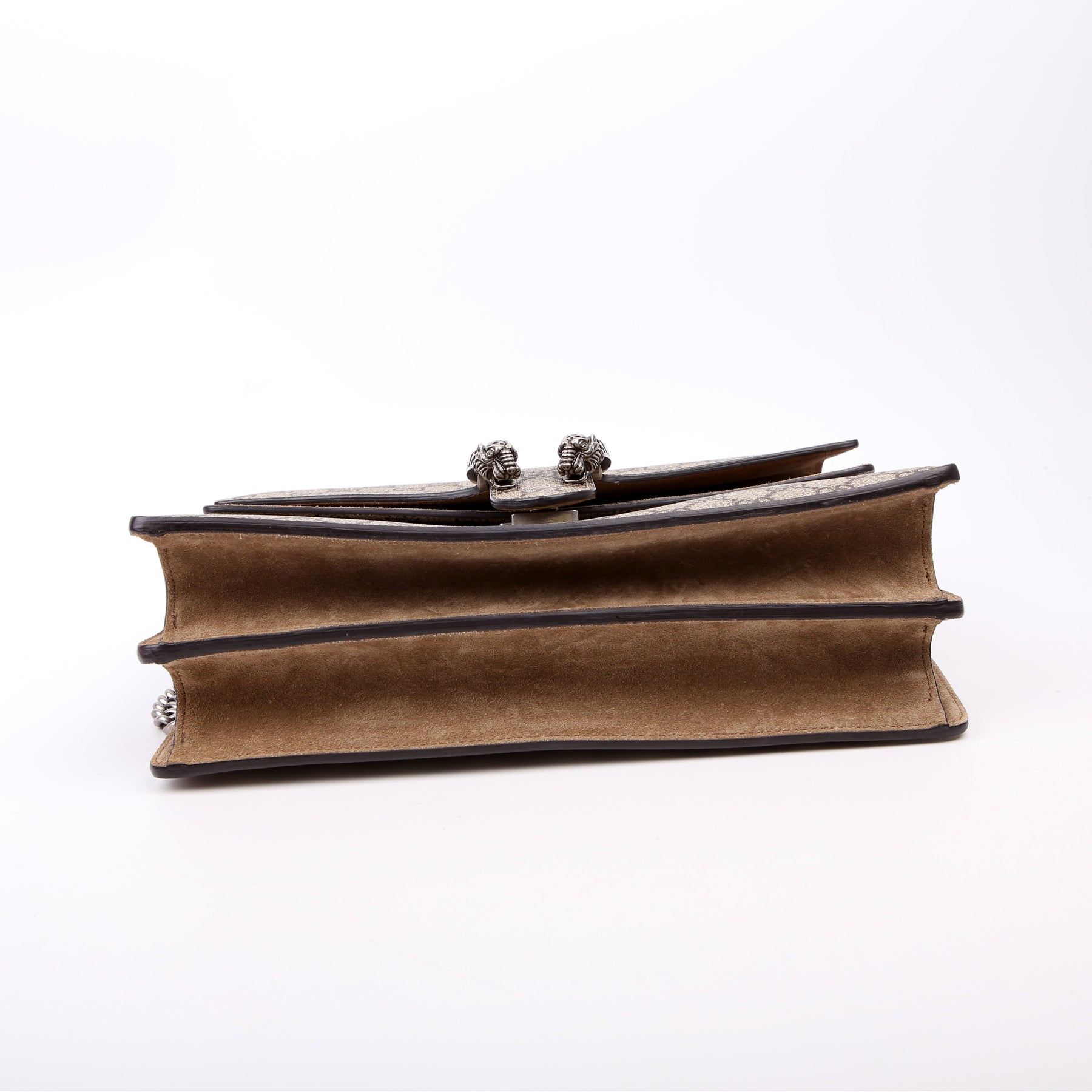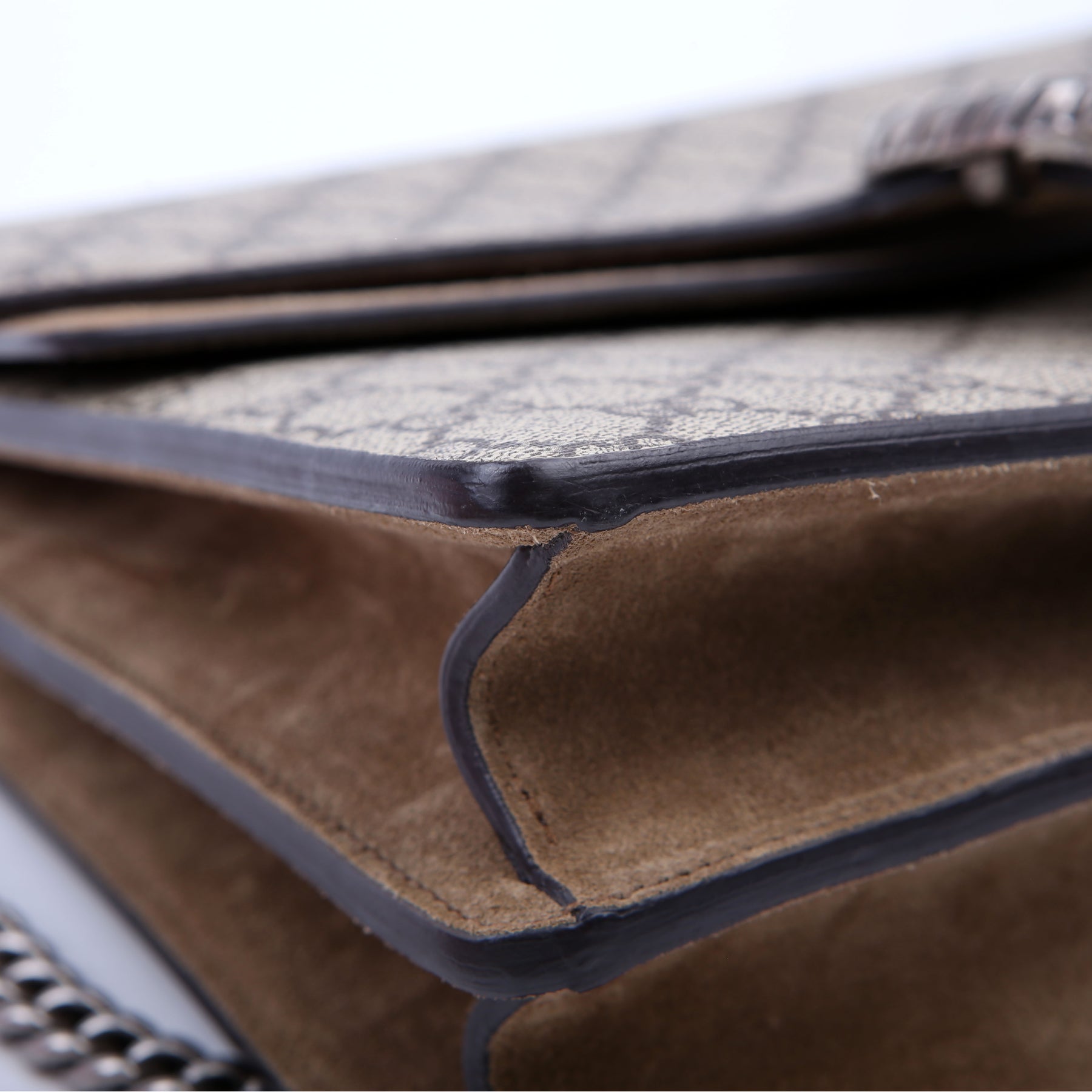 This pre-owned Gucci Dionysus Shoulder Medium is guaranteed 100% authentic. The exterior is in the classic Gucci GG Supreme Coated Canvas.