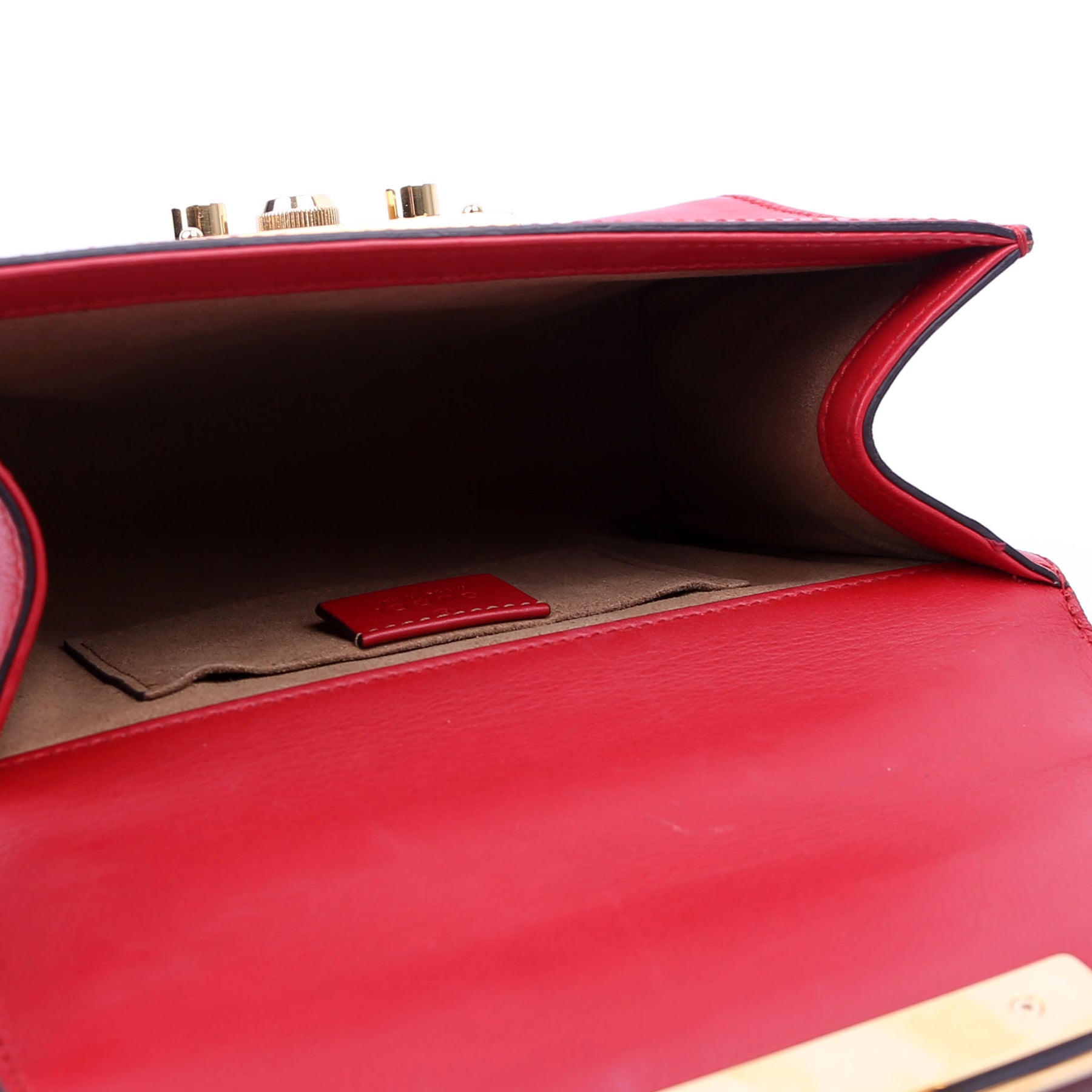 This pre-owned Gucci Padlock is guaranteed 100% authentic. The exterior is in the classic Gucci smooth leather.