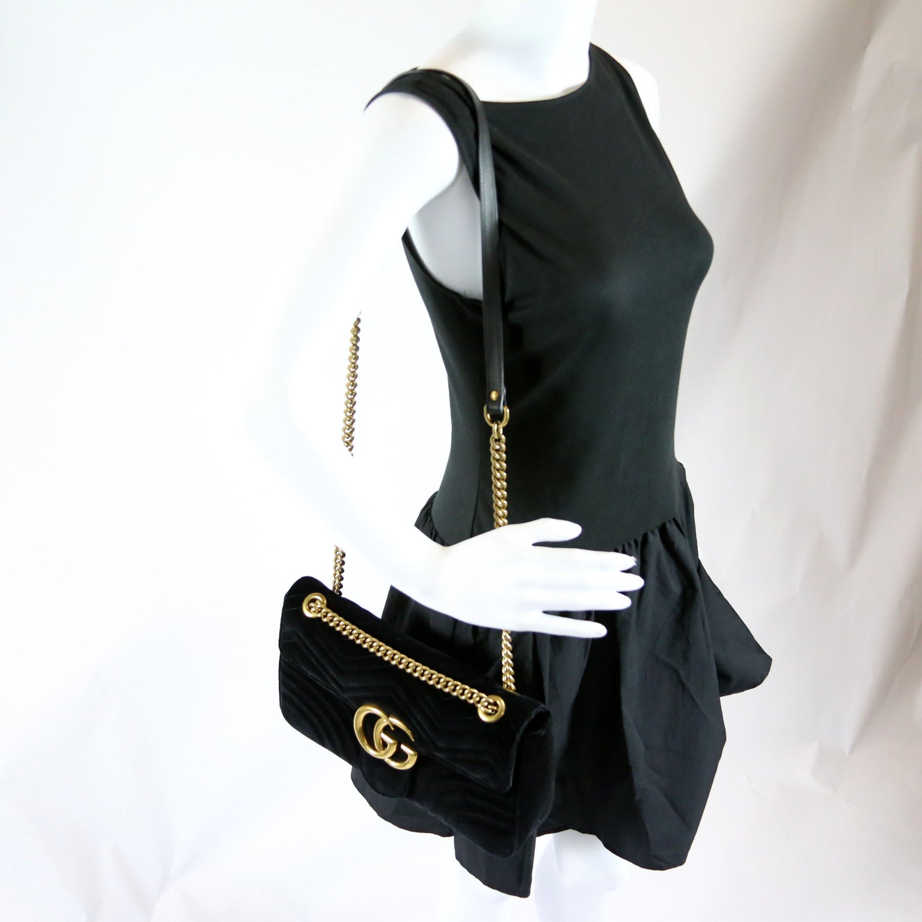 This pre-owned Gucci Marmont Velvet Medium Shoulder is guaranteed 100% authentic.