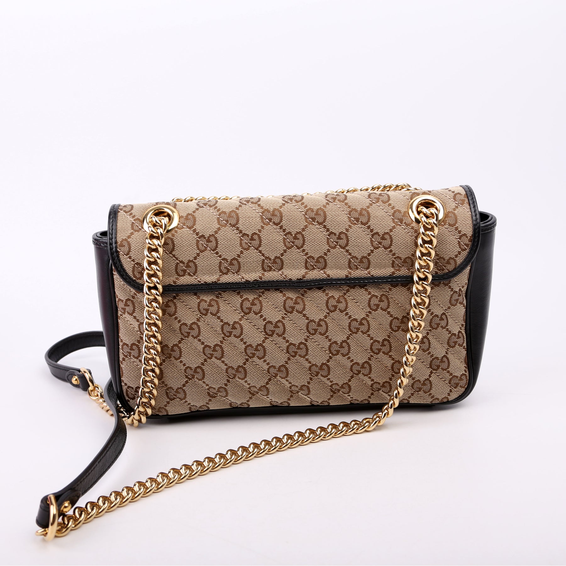 This pre-owned Gucci Marmont GG Canvas Shoulder Small Flap is guaranteed 100% authentic.