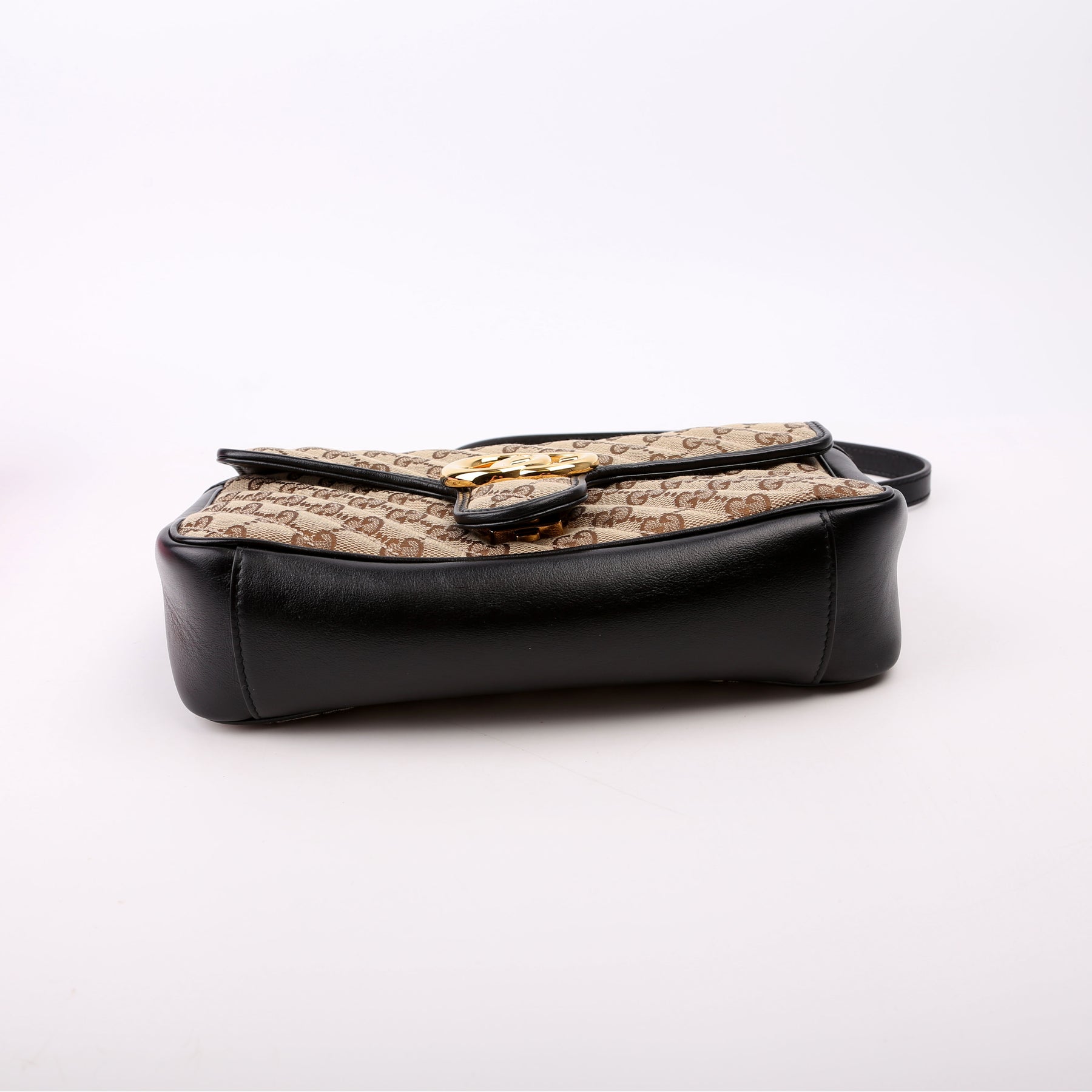 443497 Marmont GG Canvas Shoulder Small Flap Brown/Black