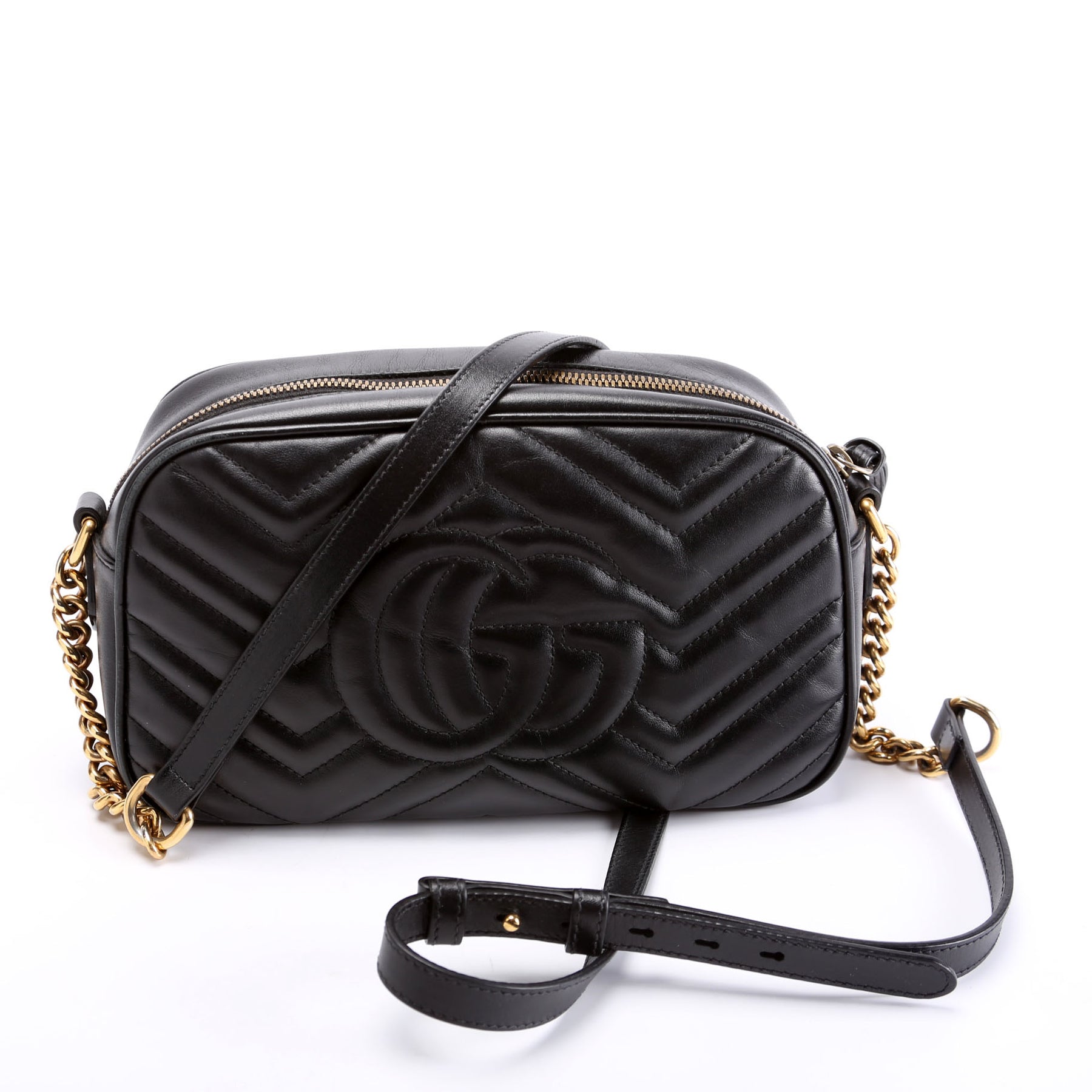 This pre-owned Gucci Marmont Small Leather Camera is guaranteed 100% authentic.