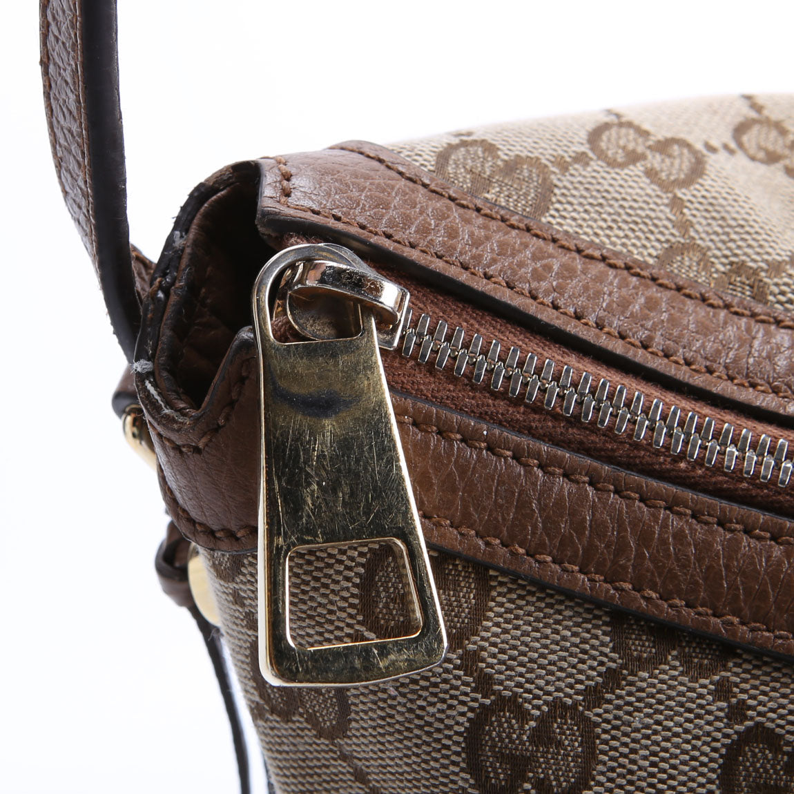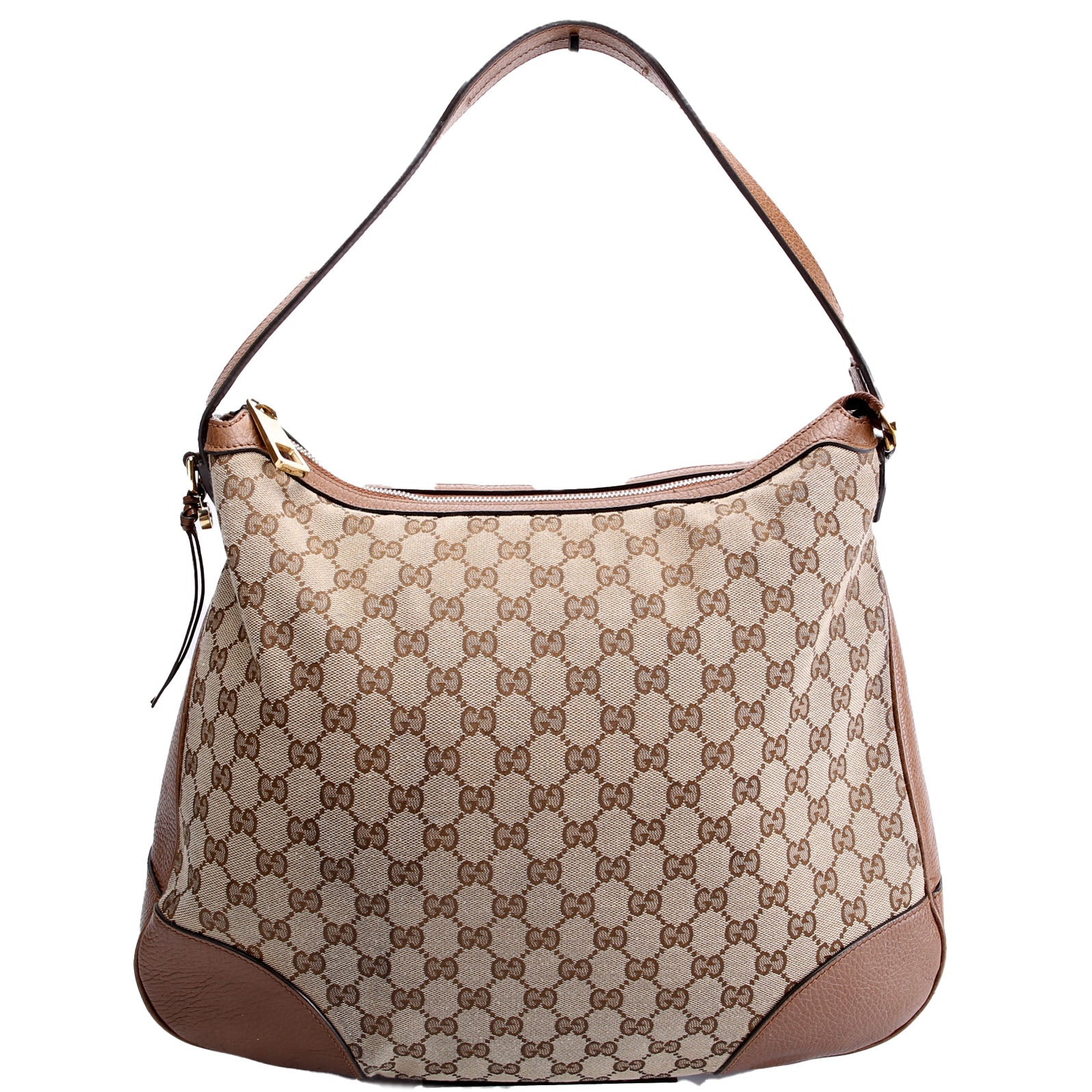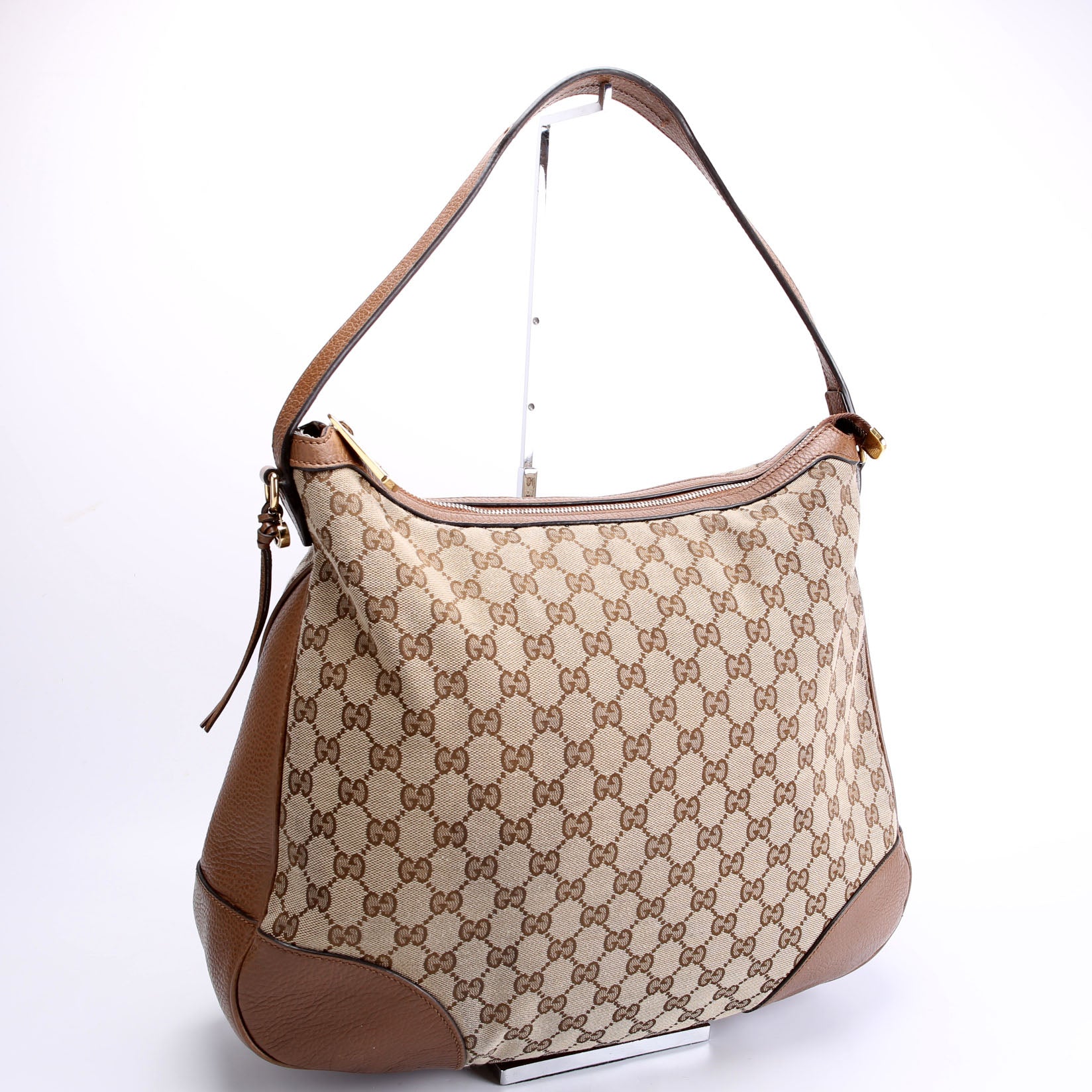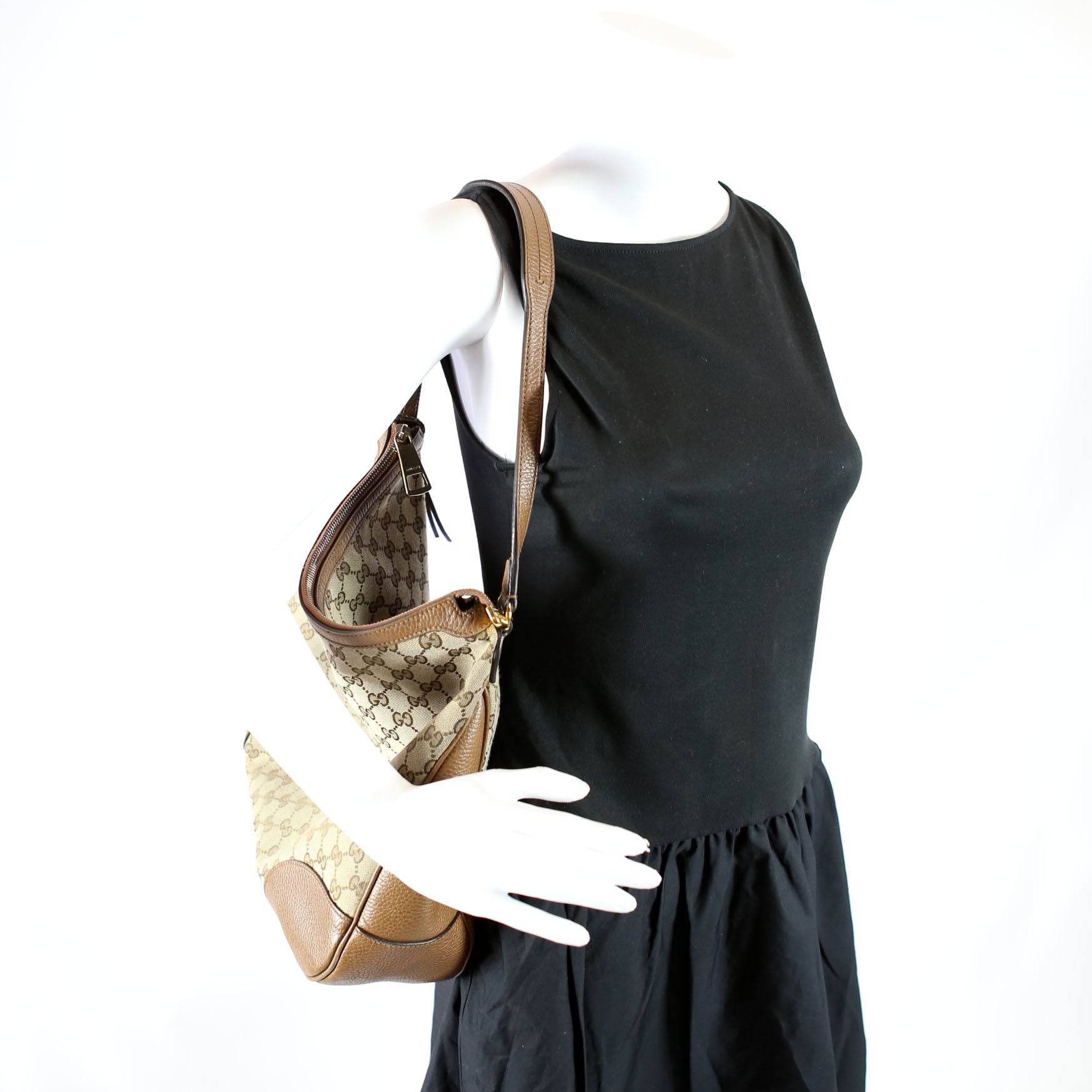 This pre-owned Gucci GG Canvas Bree Hobo is guaranteed 100% authentic. The exterior is in the classic Gucci GG canvas and leather.