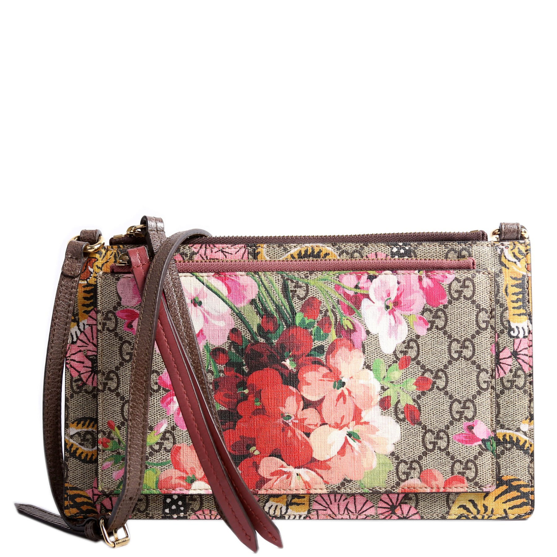 This pre-owned Gucci GG Supreme Blooms/Bengals Double Zip Shoulder Bag is guaranteed 100% authentic. The exterior is in the classic Gucci GG Supreme coated canvas.