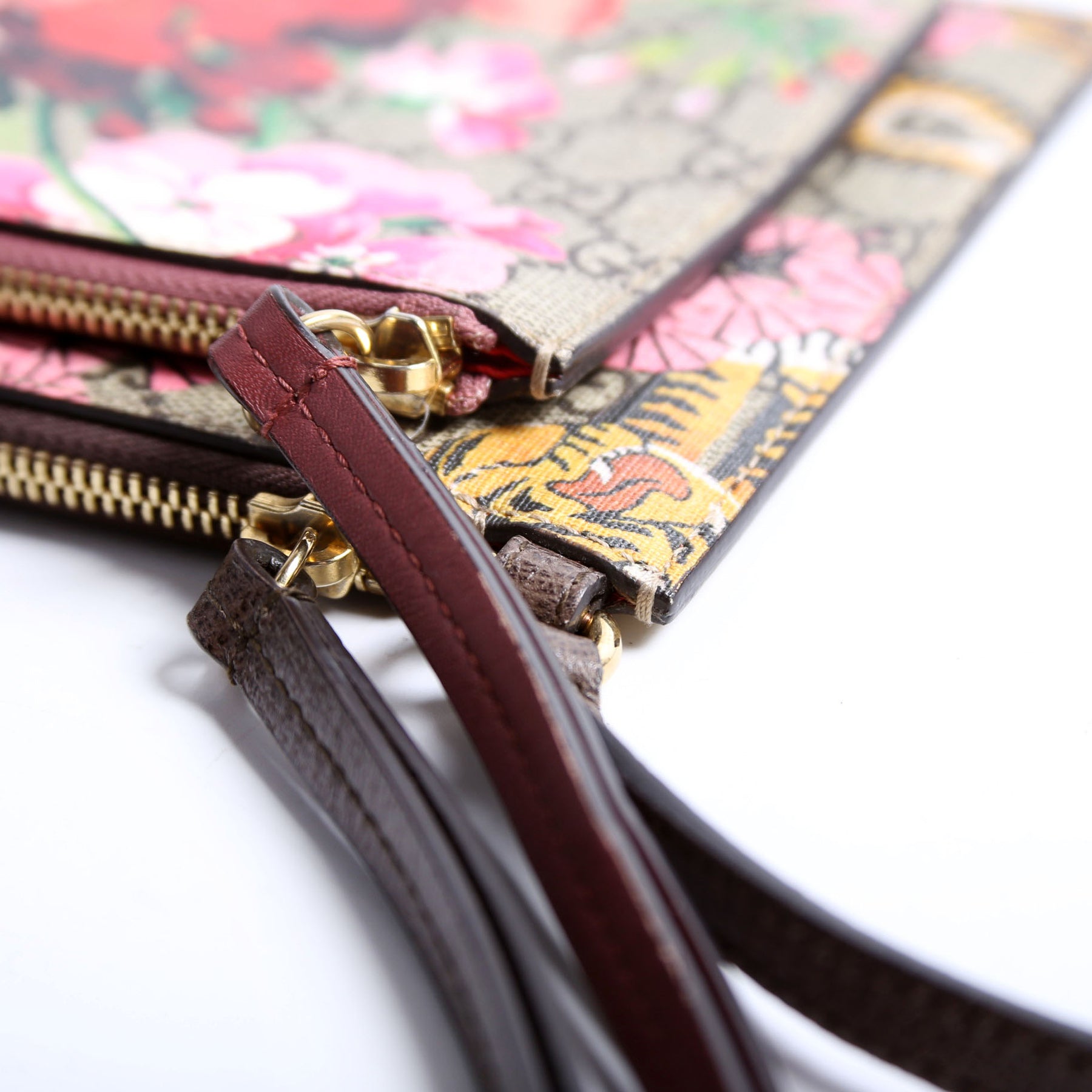 This pre-owned Gucci GG Supreme Blooms/Bengals Double Zip Shoulder Bag is guaranteed 100% authentic. The exterior is in the classic Gucci GG Supreme coated canvas.