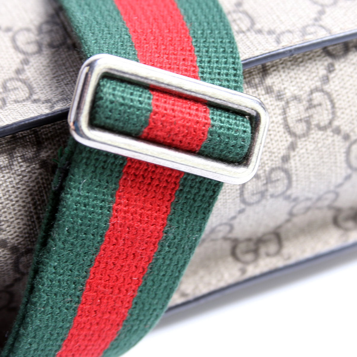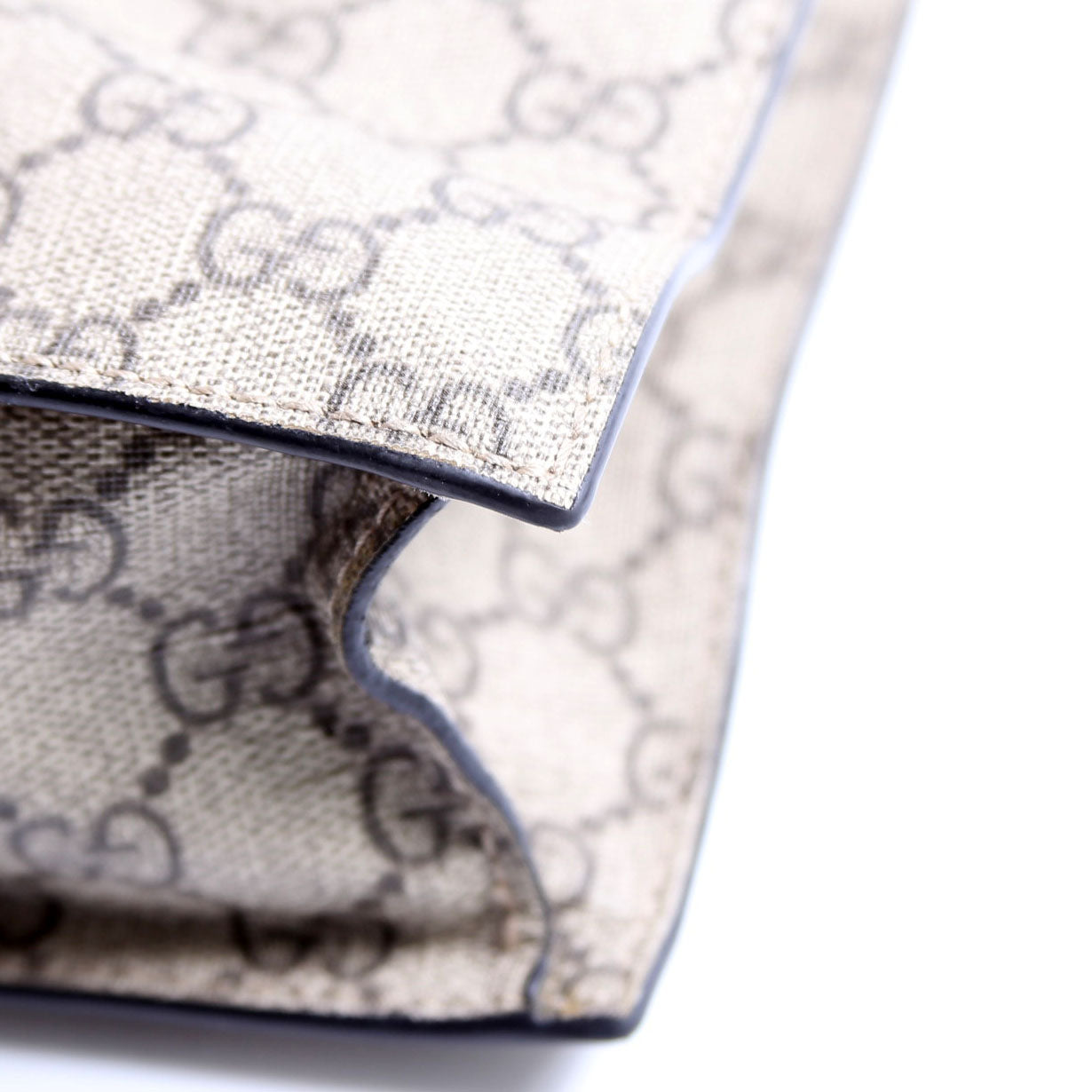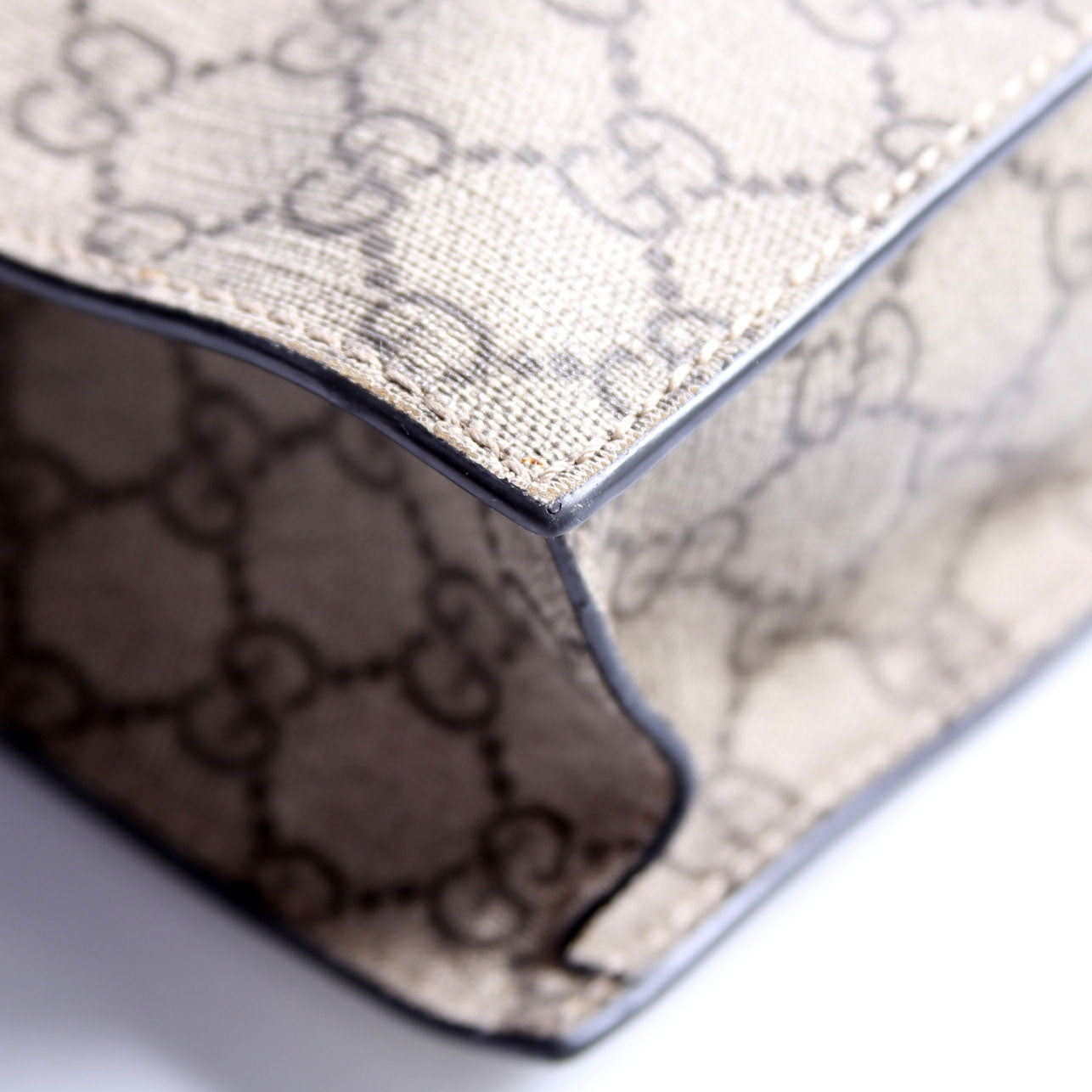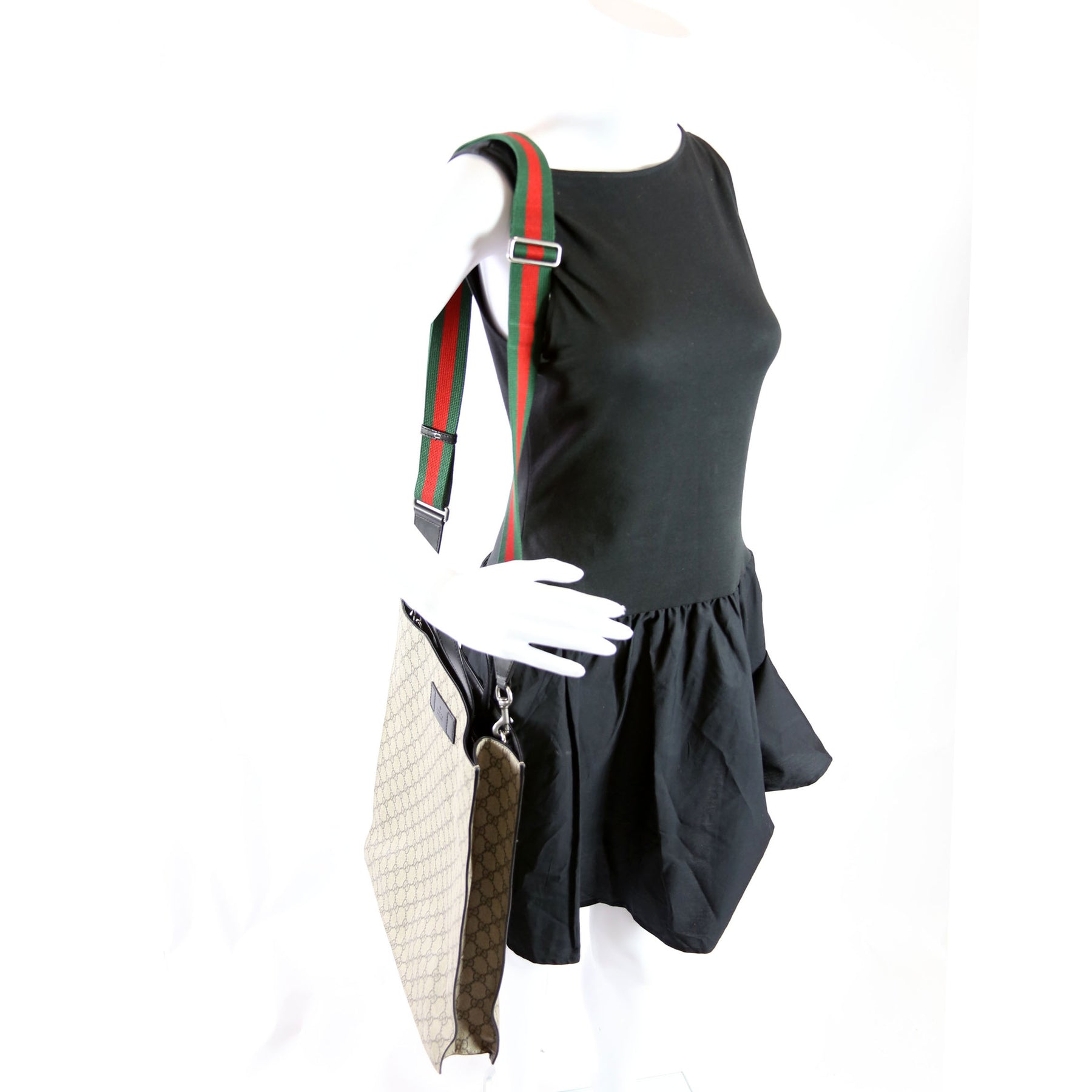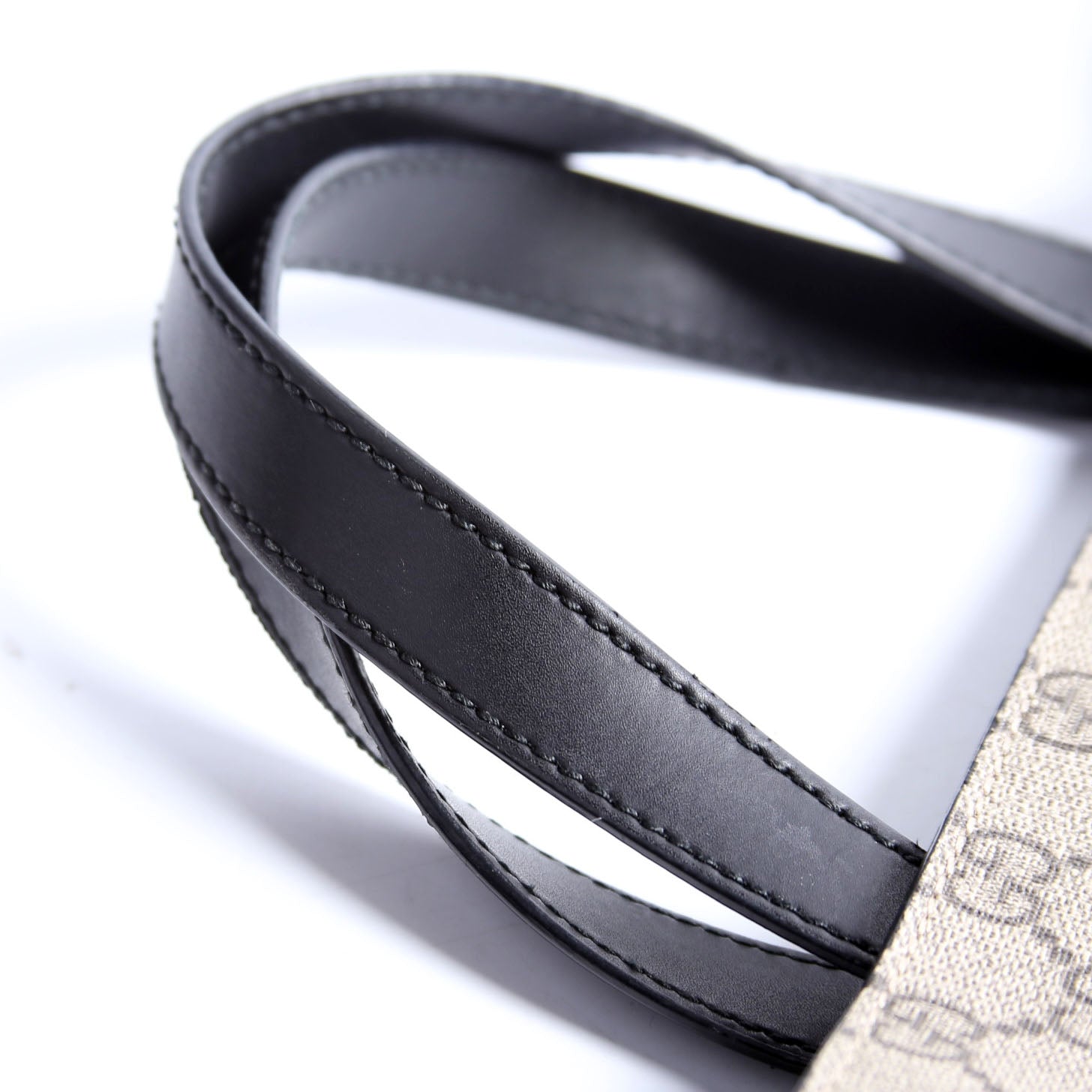 This pre-owned Gucci GG Supreme Web Vertical Tote is guaranteed 100% authentic. The exterior is in the classic Gucci GG Supreme coated canvas.