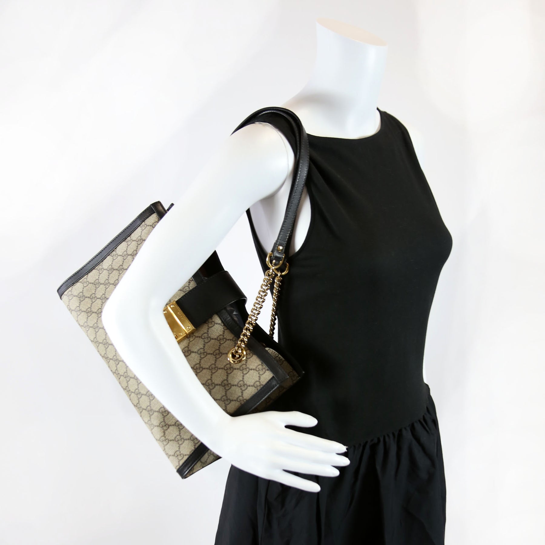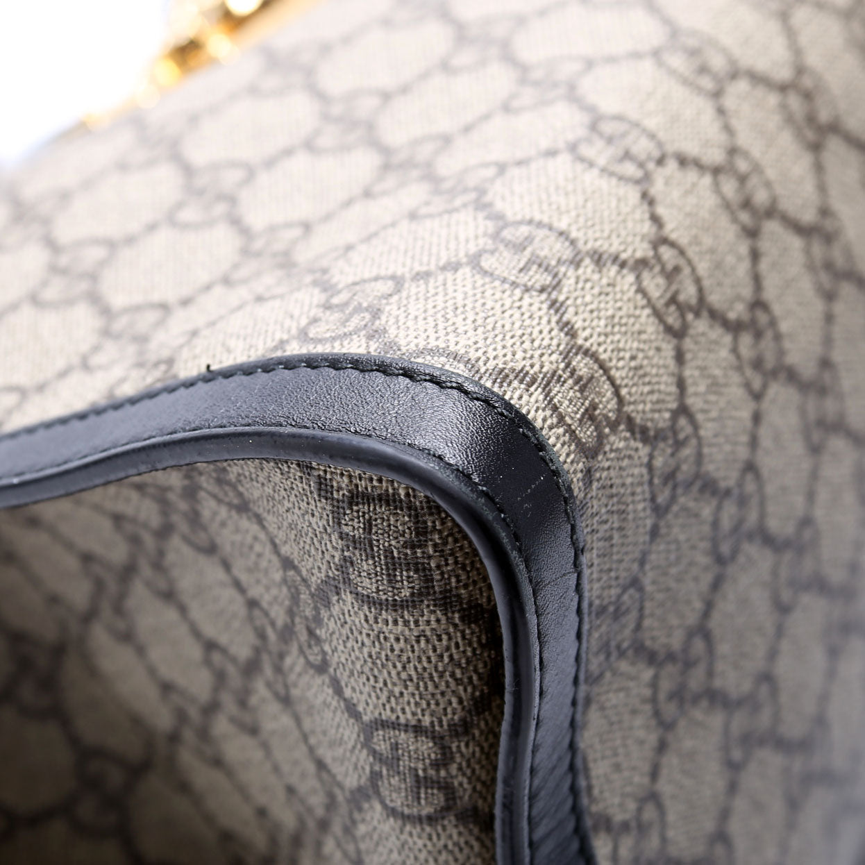 This pre-owned Gucci Padlock GG Shoulder Bag is guaranteed 100% authentic. The exterior is in the classic supreme coated canvas.