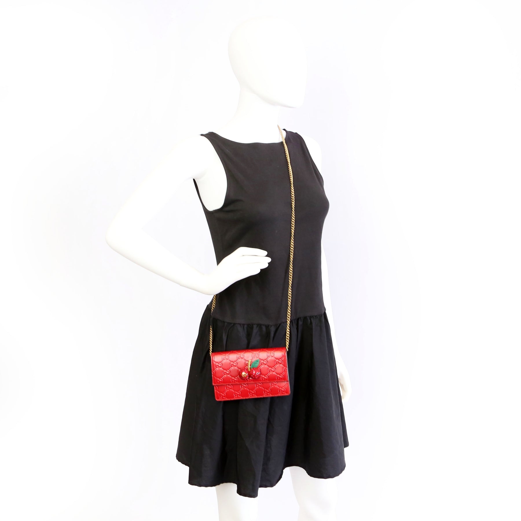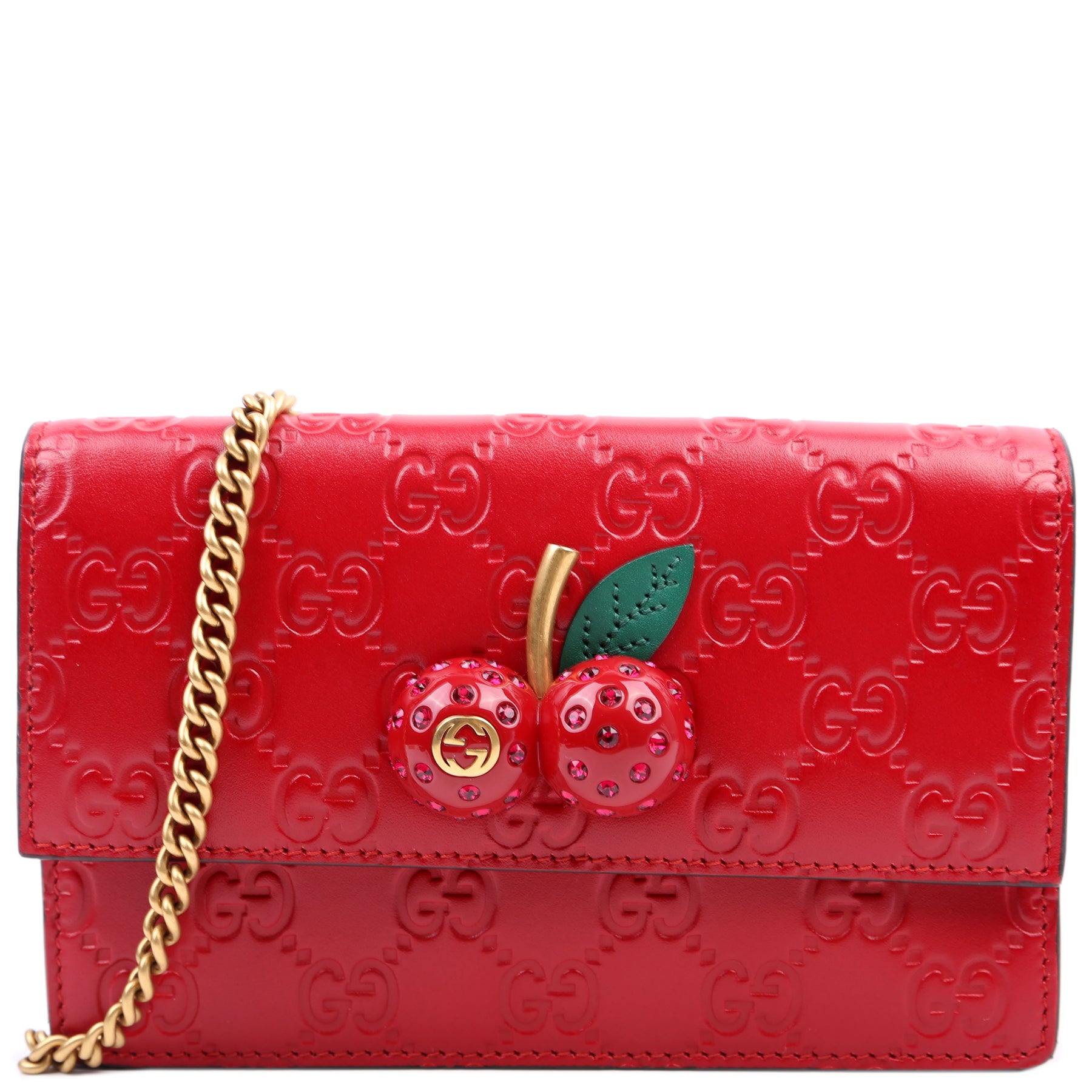This pre-owned Gucci GG Leather Cherries Mini Chain Bag is guaranteed 100% authentic.