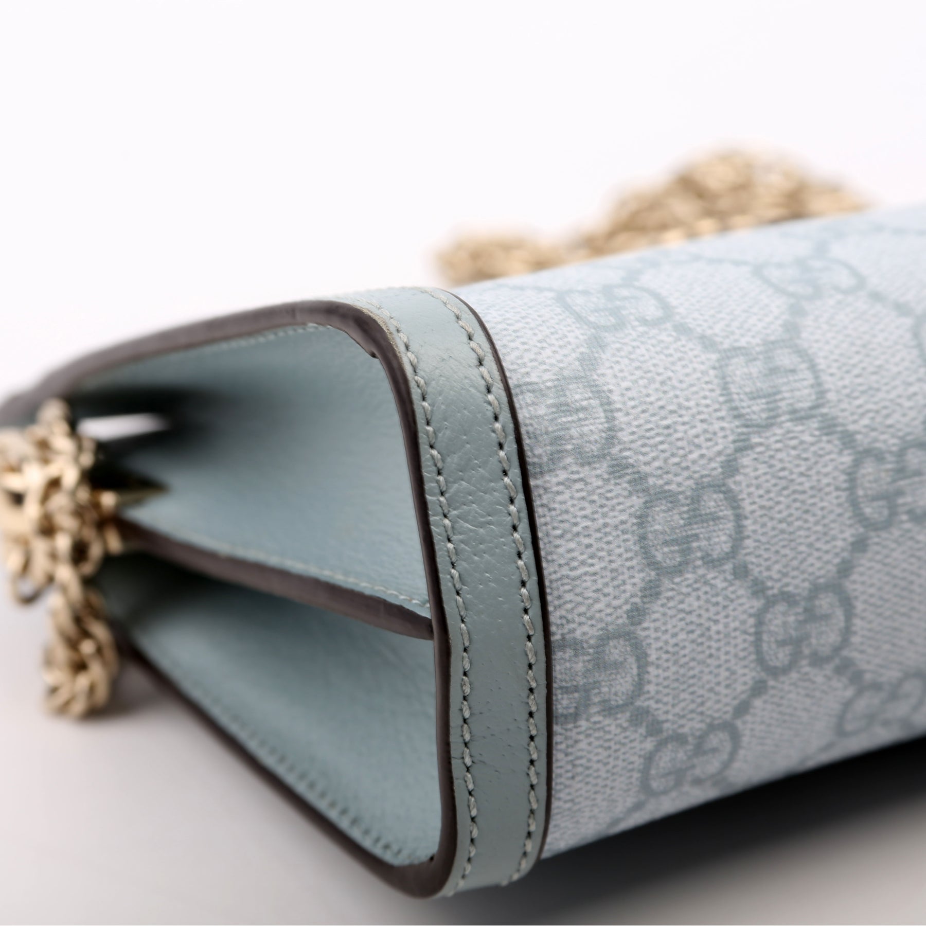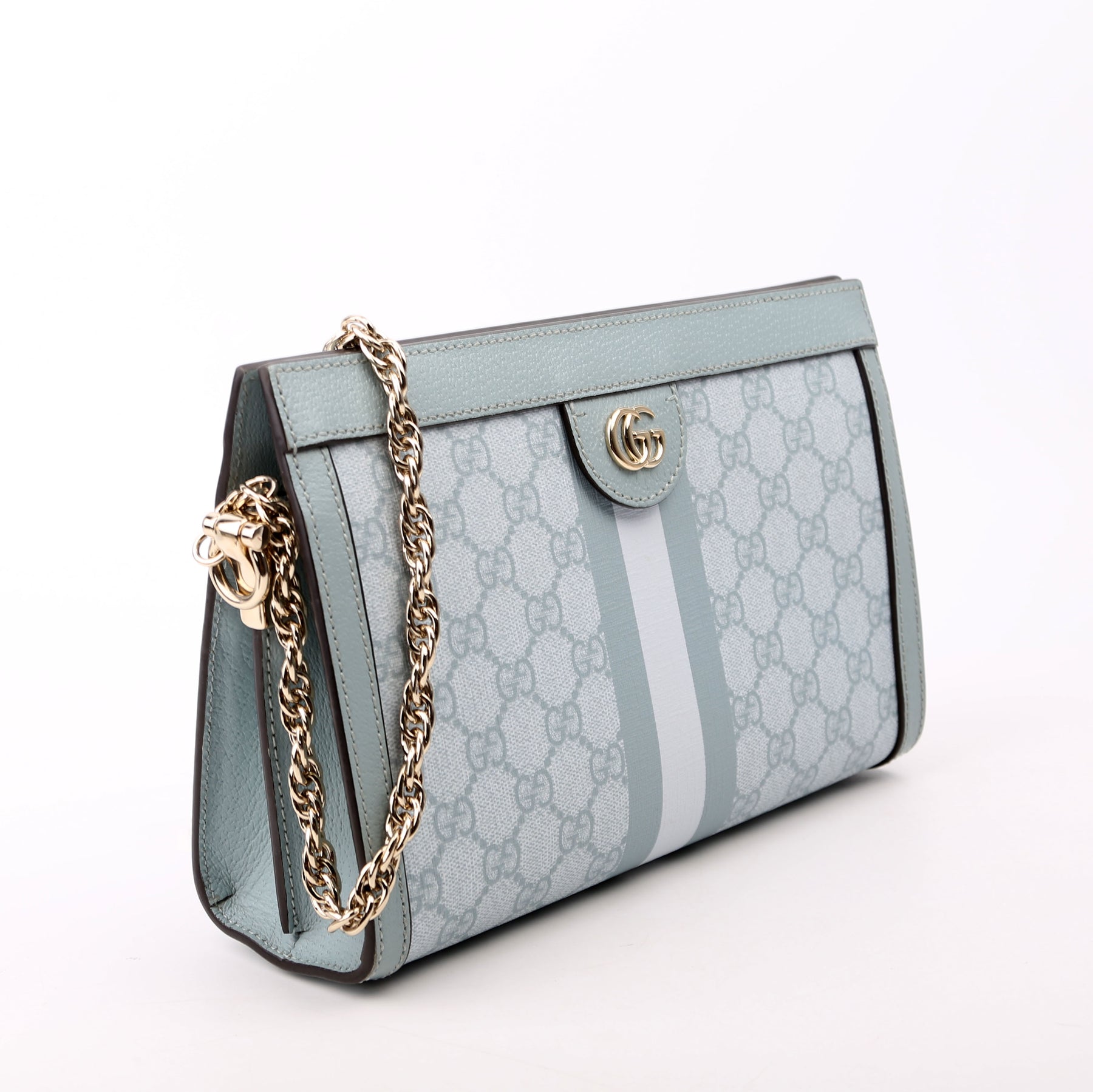 This pre-owned Gucci GG Supreme Ophidia Small Chain is guaranteed 100% authentic. The exterior is in the classic Gucci GG Supreme coated canvas.