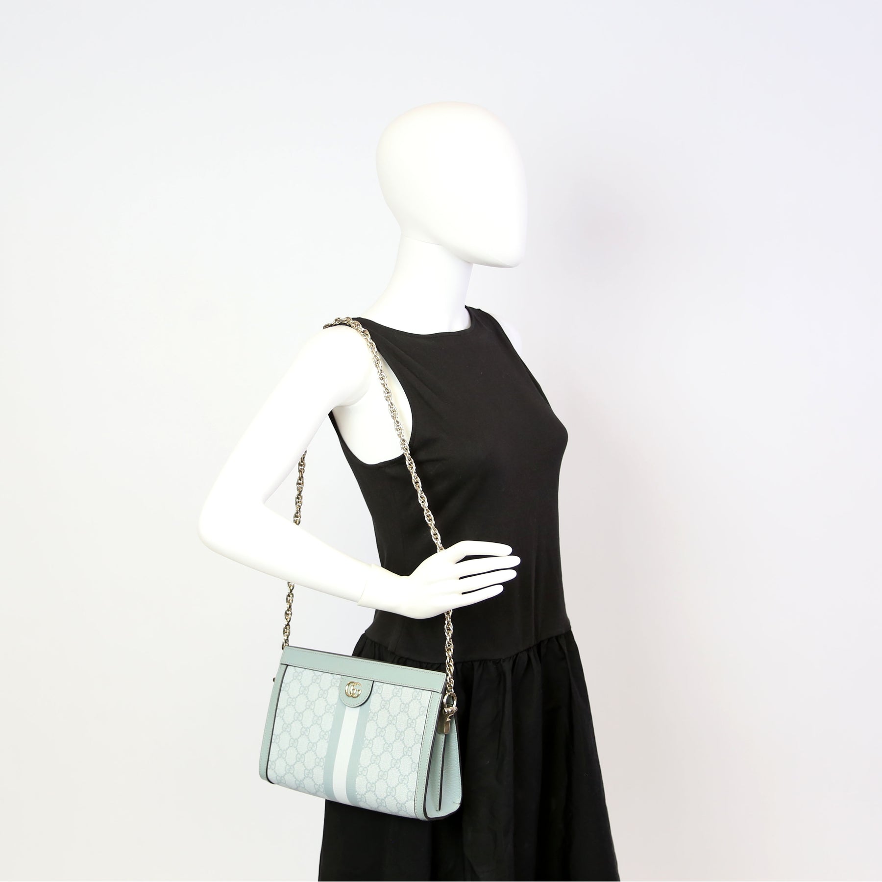 This pre-owned Gucci GG Supreme Ophidia Small Chain is guaranteed 100% authentic. The exterior is in the classic Gucci GG Supreme coated canvas.