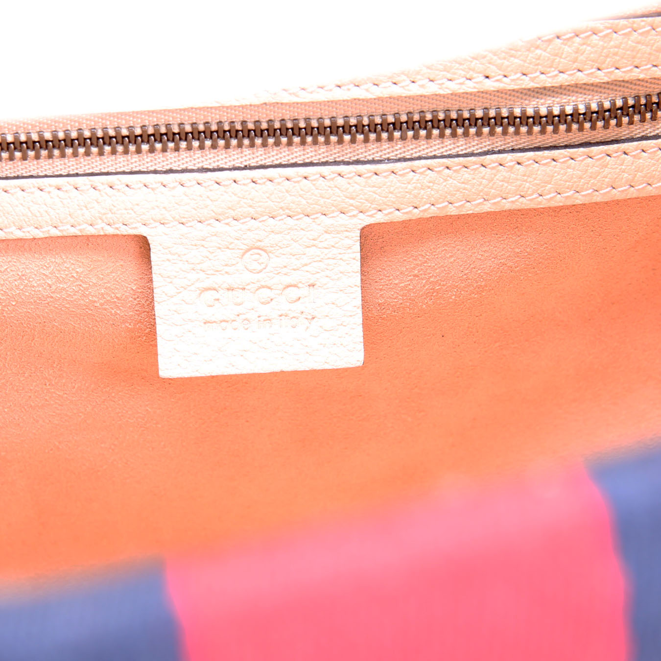 Interior: The interior is free from wear. It features one zip closure pocket, and one open pocket.
