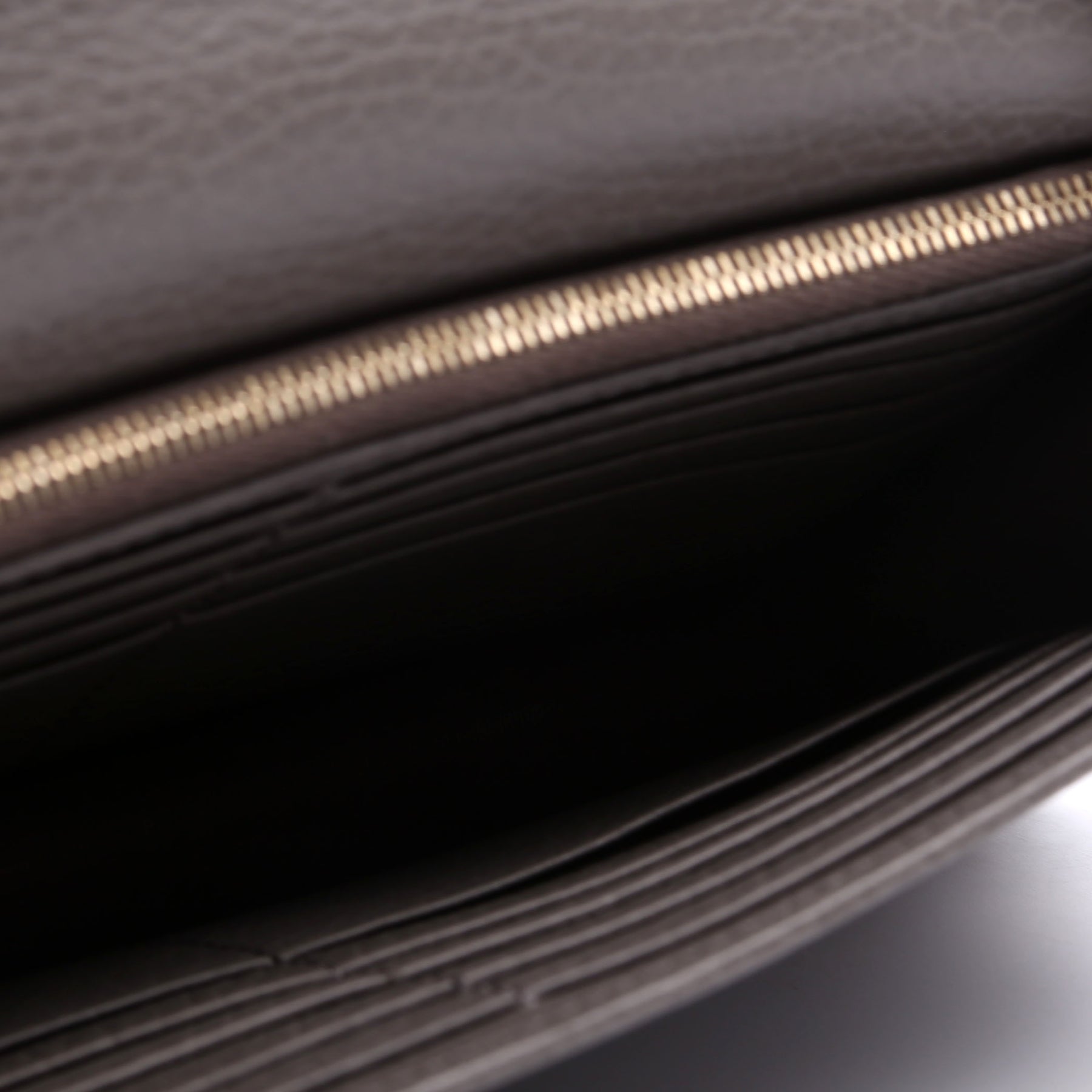 Interior: The interior is free from major wear. The interior features one zip closure pocket and eighteen card slots.