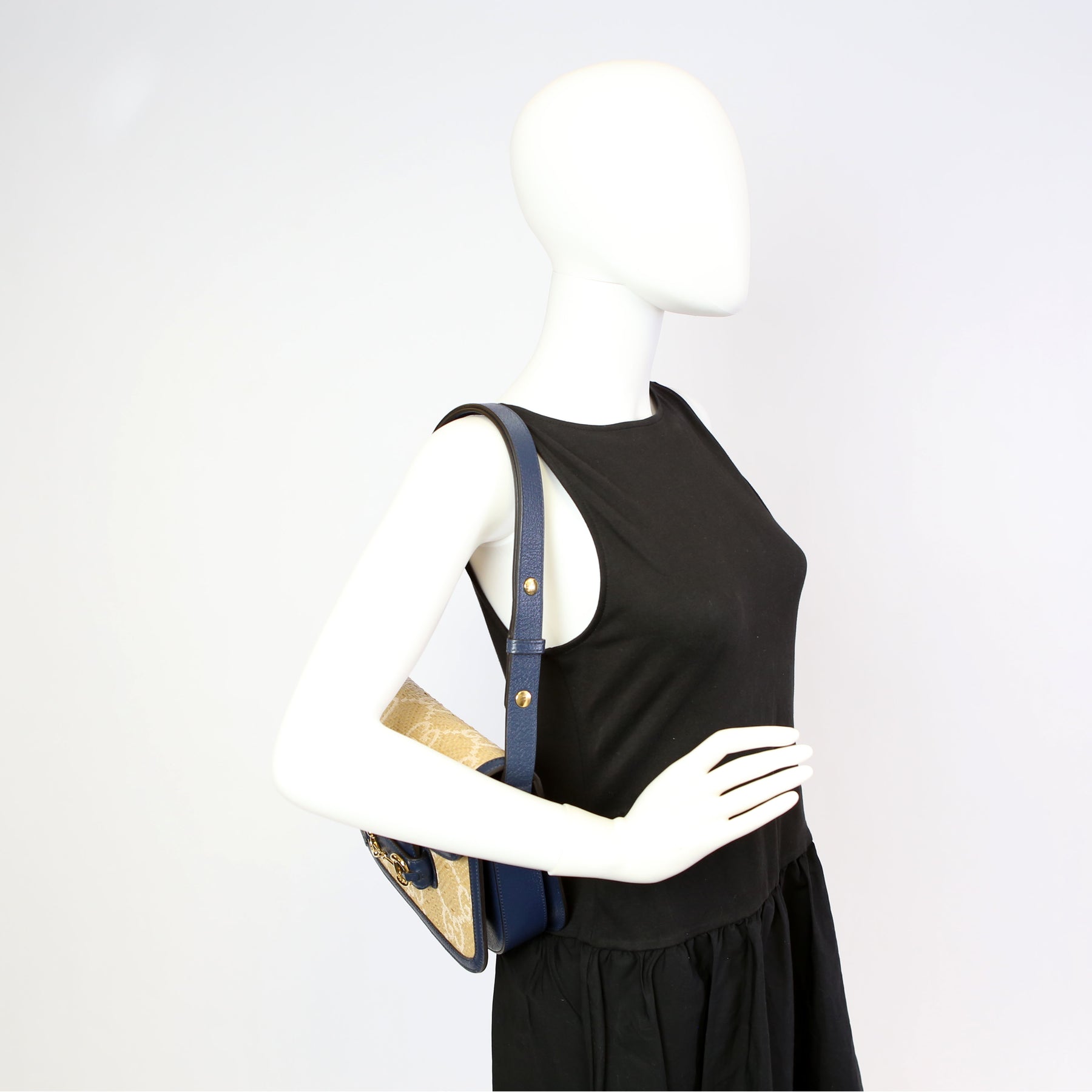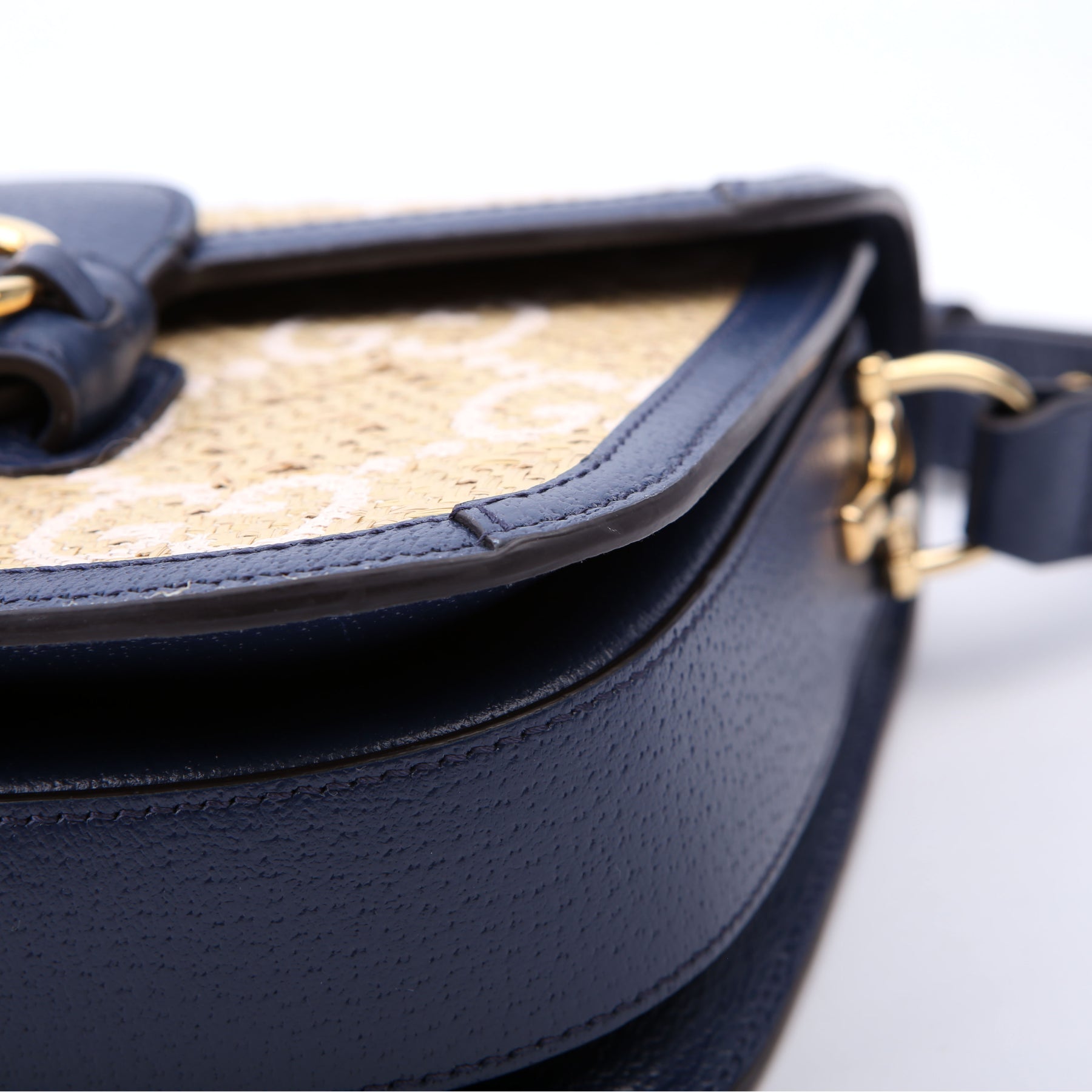 602204 Horsebit 1955 GG Raffia Shoulder Bag Blue