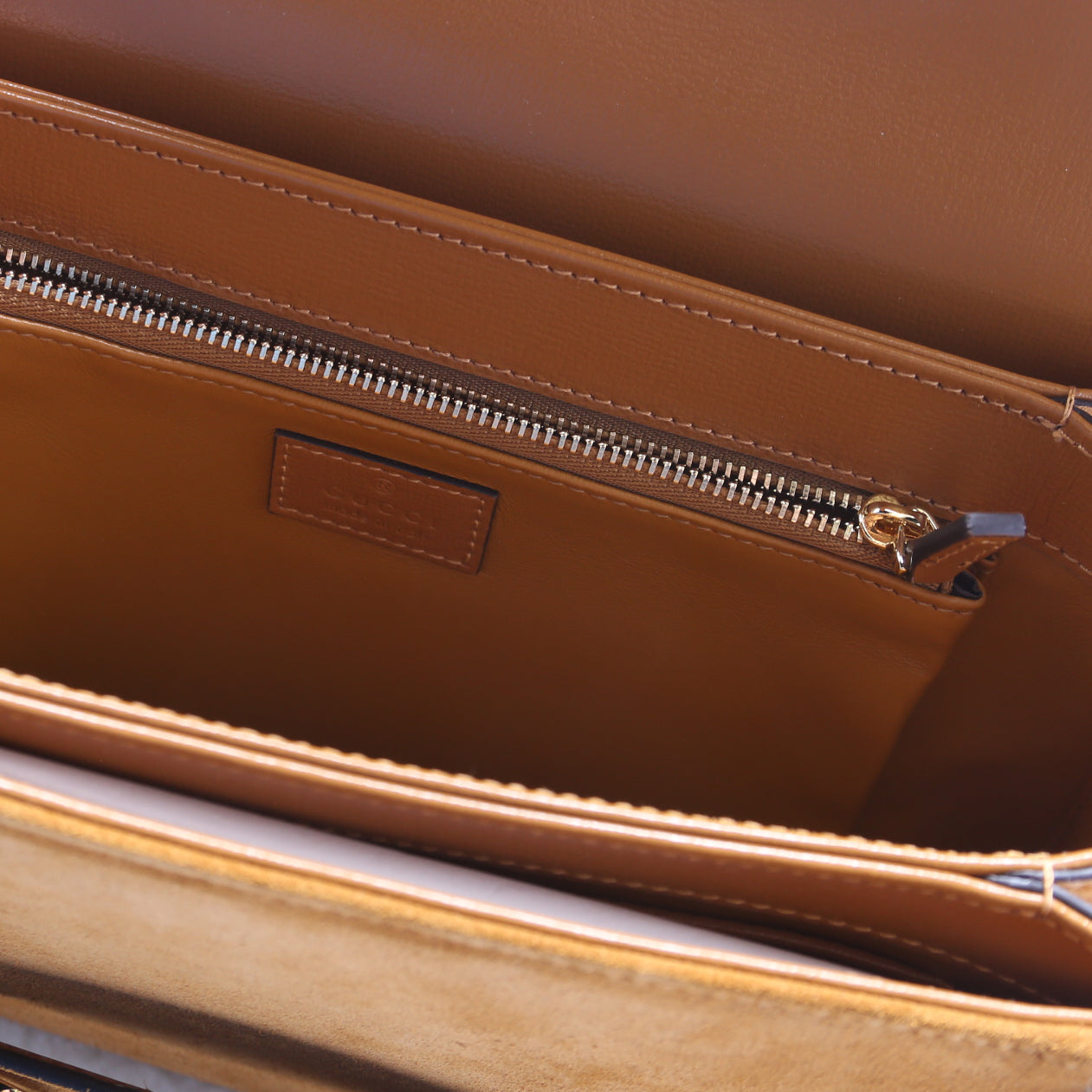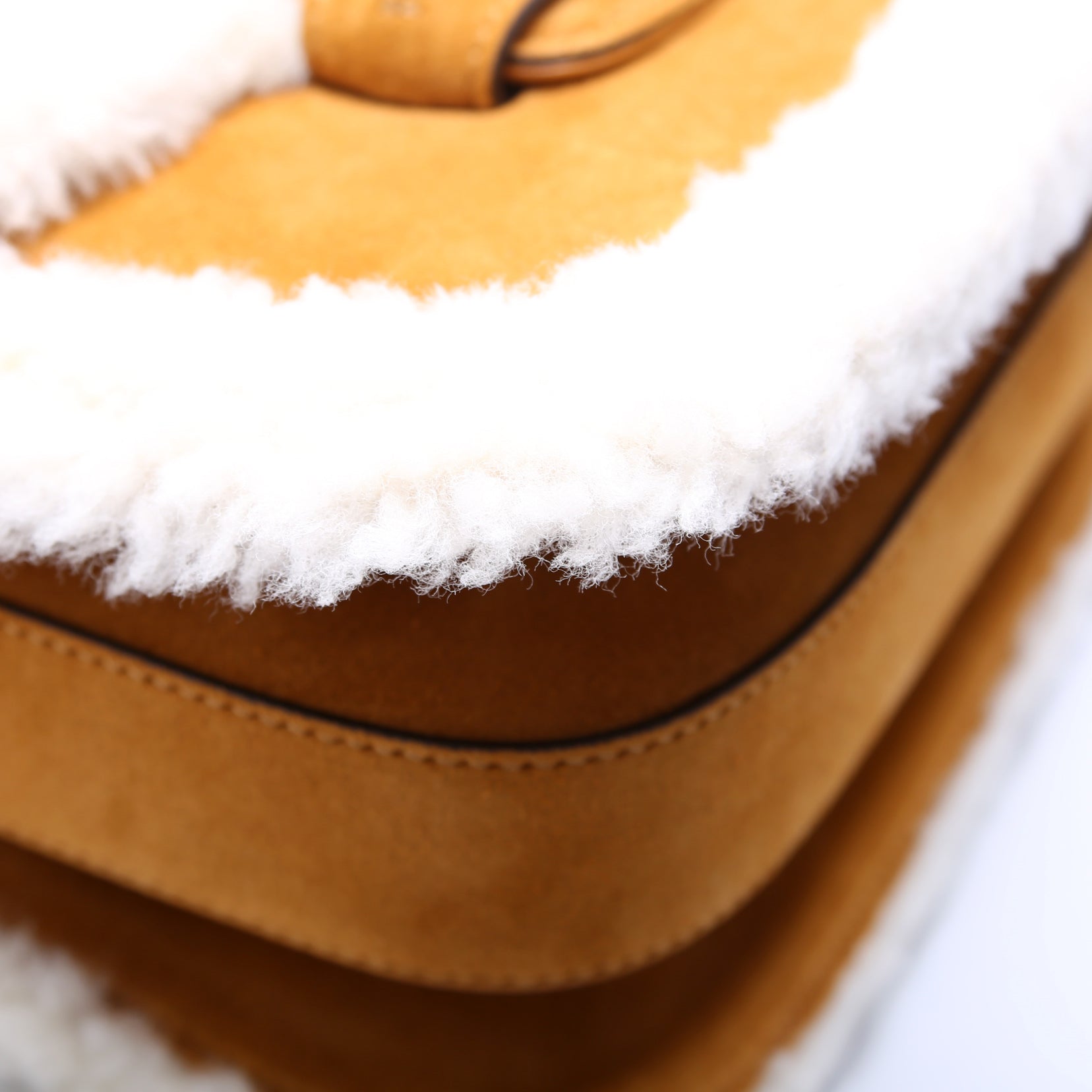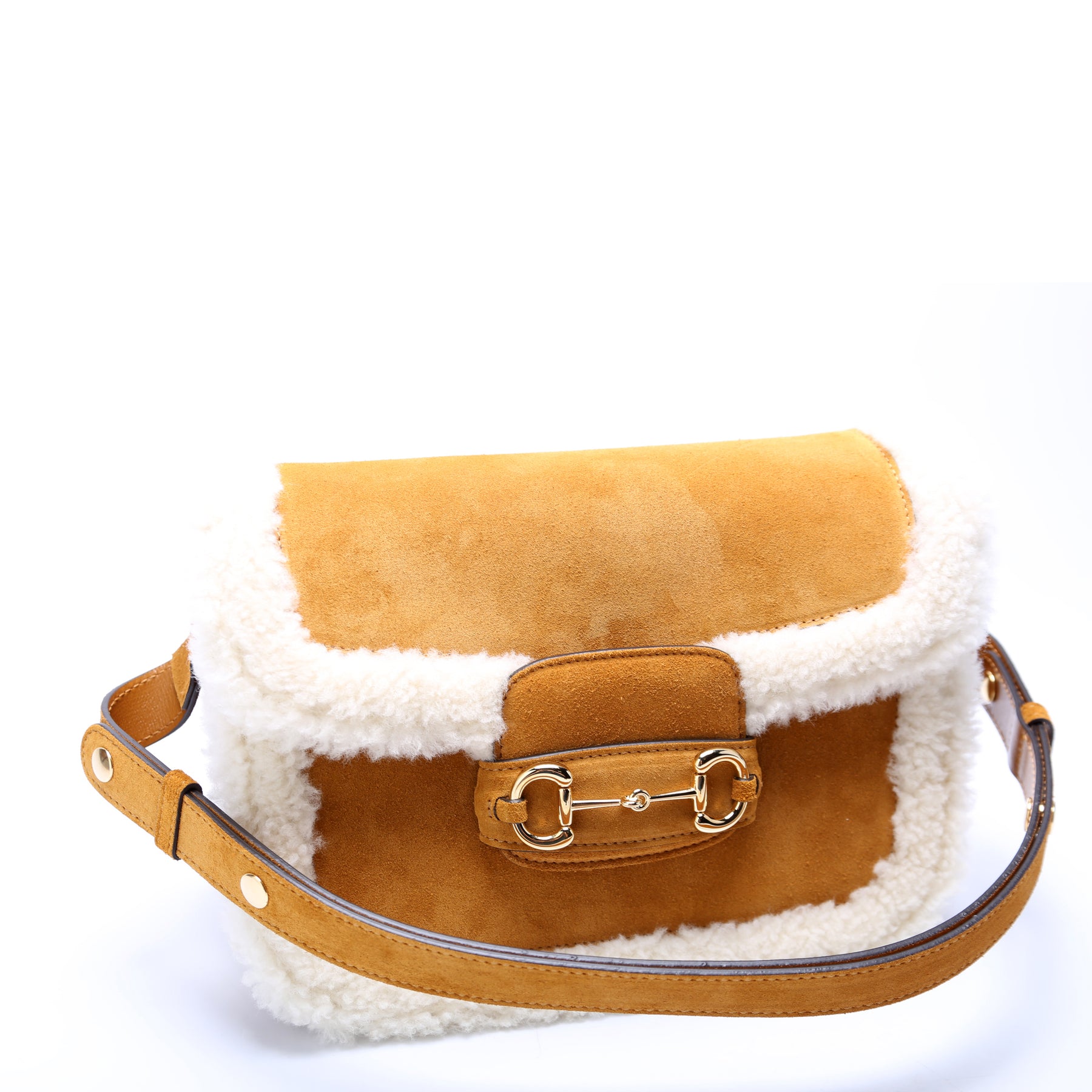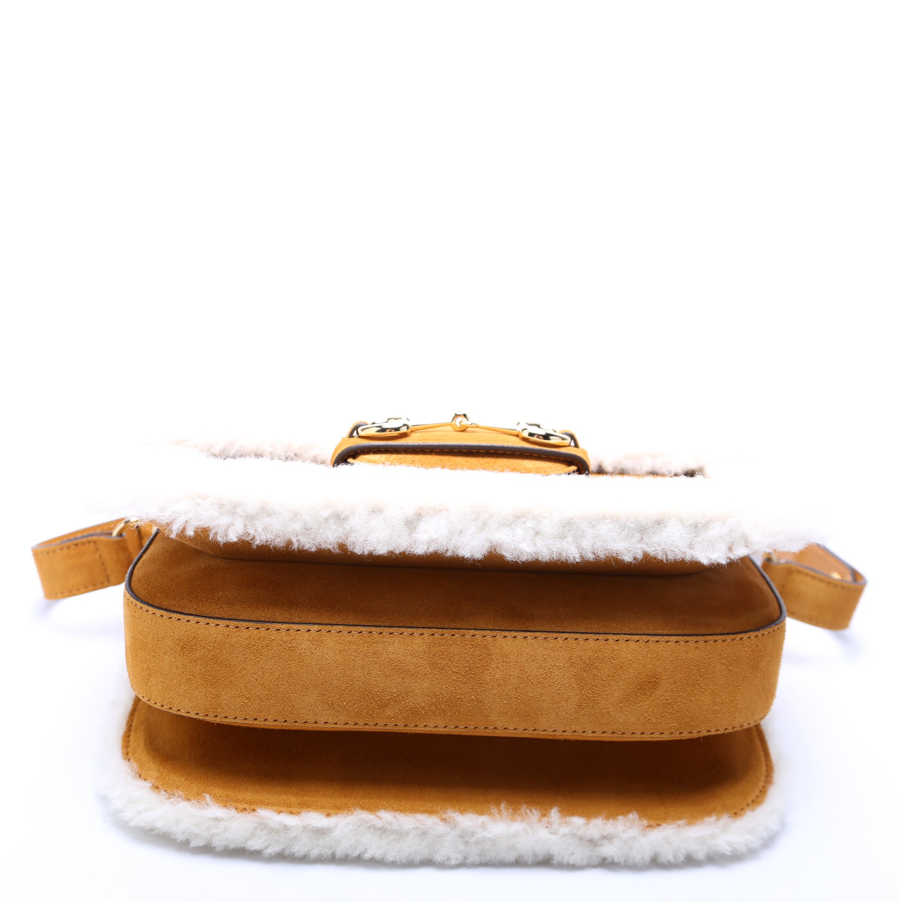 602204 Horsebit 1955 Shearling/Suede Shoulder Bag