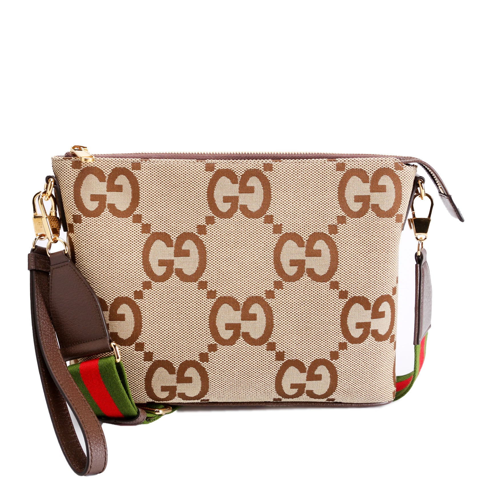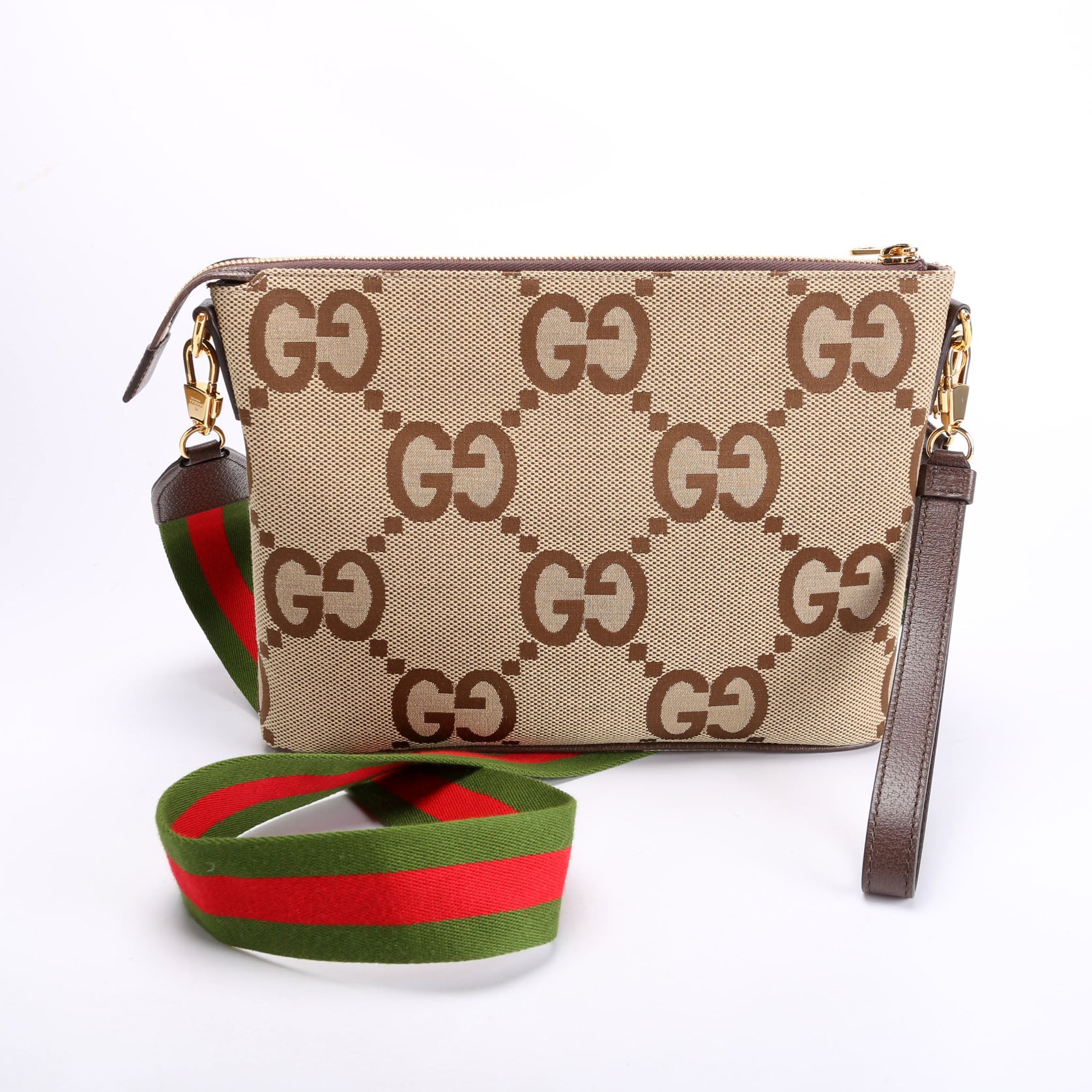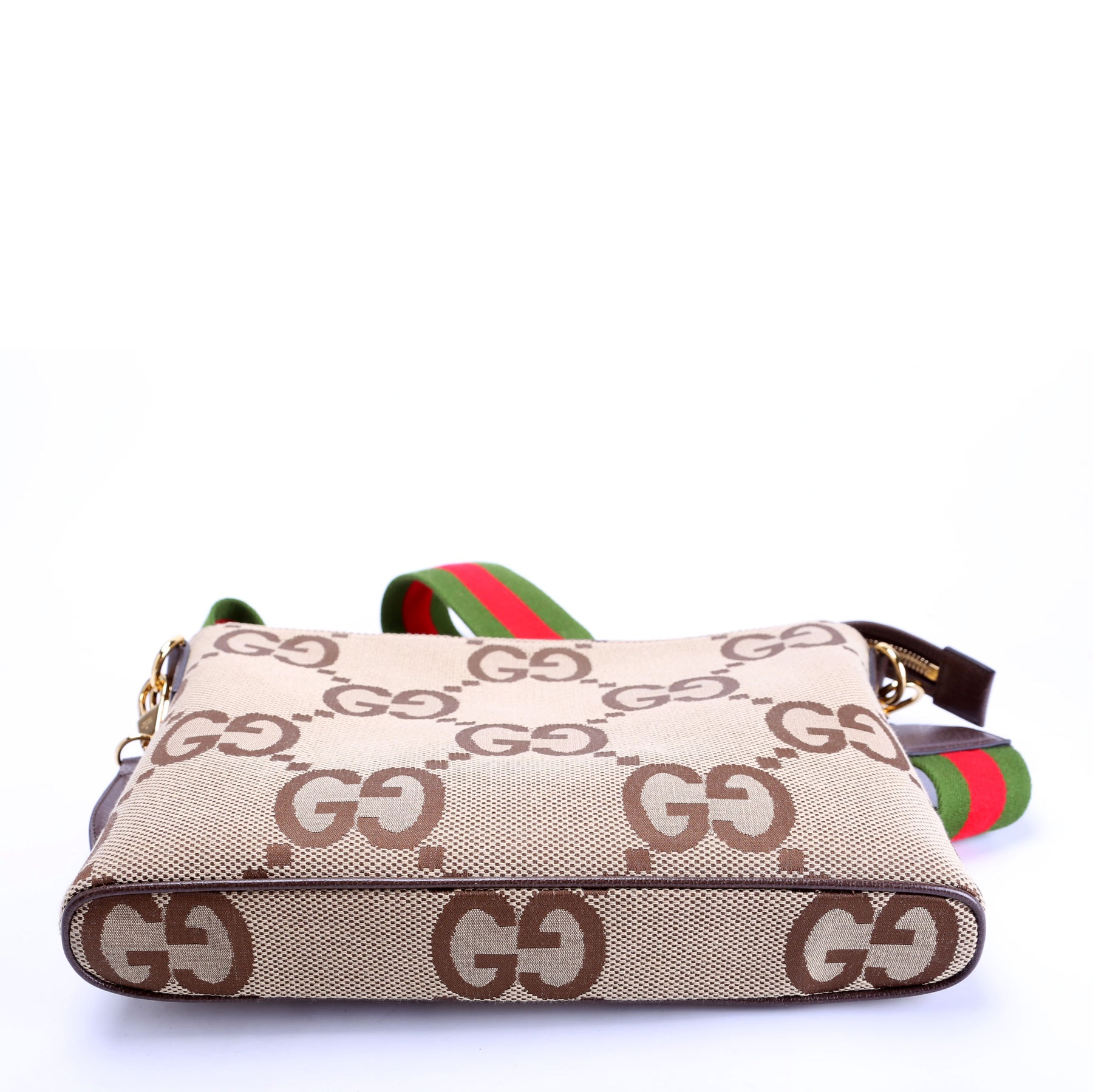 This pre-owned Gucci Jumbo GG Messenger is guaranteed 100% authentic. The exterior is in the classic Gucci Jumbo GG canvas.
