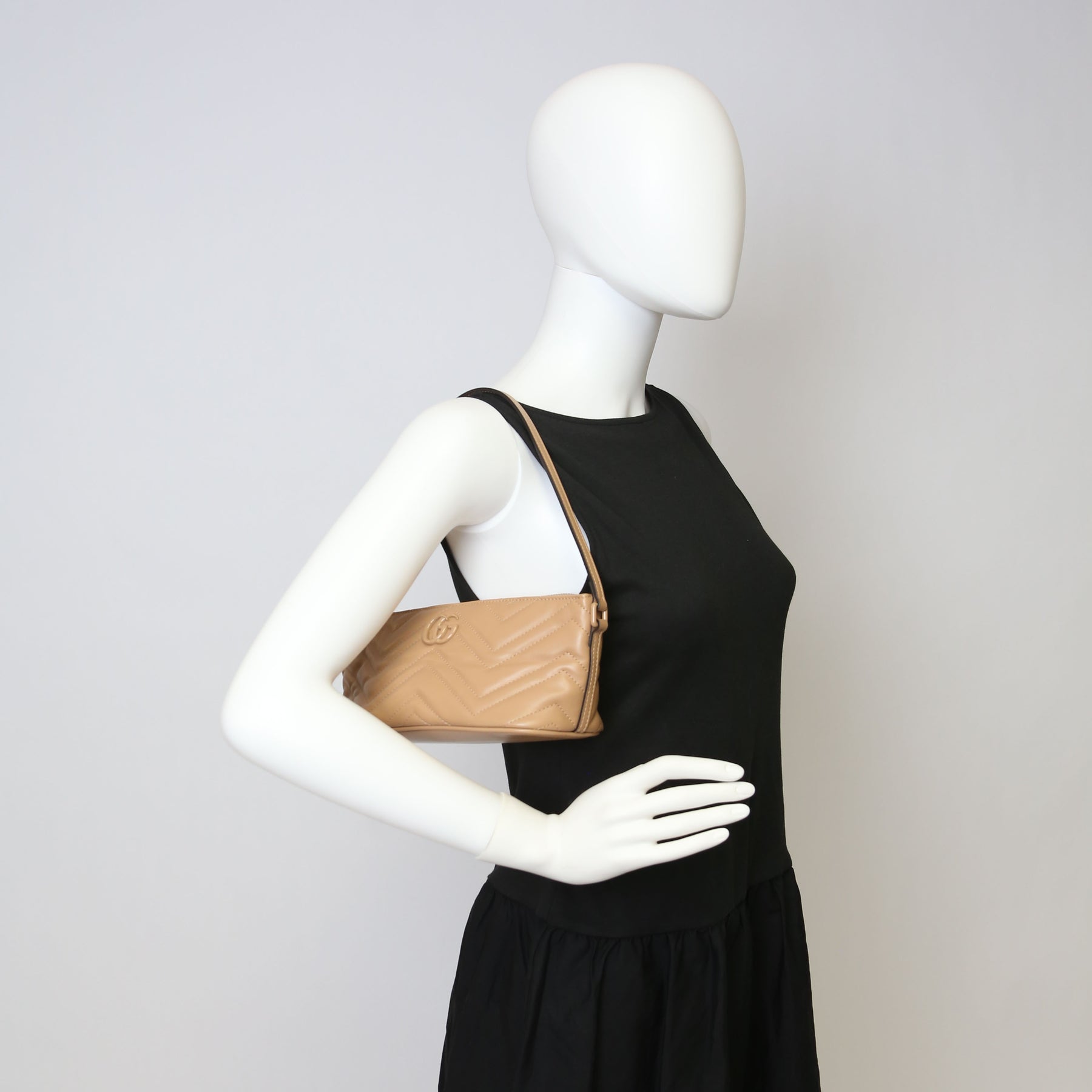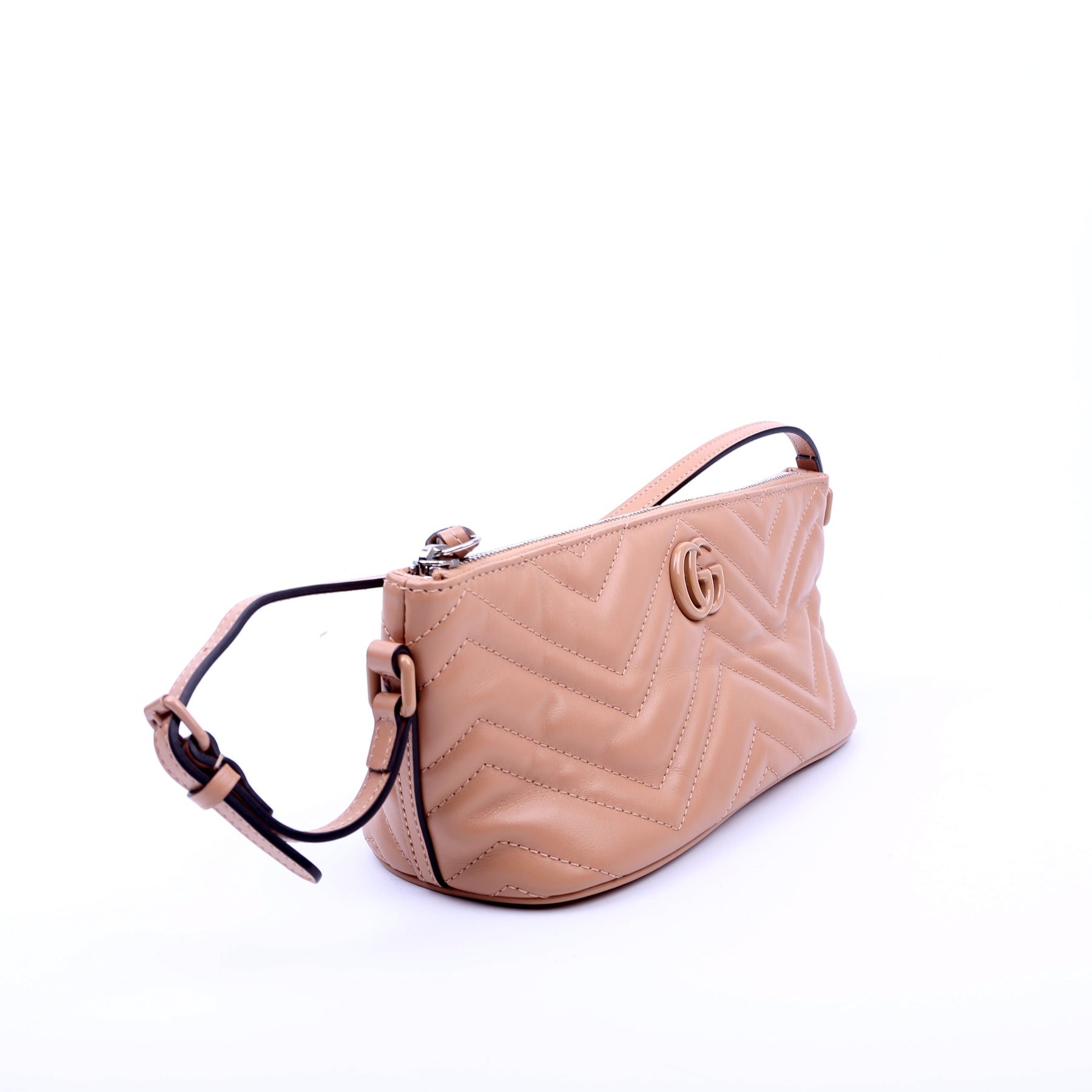 This pre-owned Marmont Sling Mini Shoulder Bag guaranteed 100% authentic. The exterior is in the classic Gucci Marmont leather.