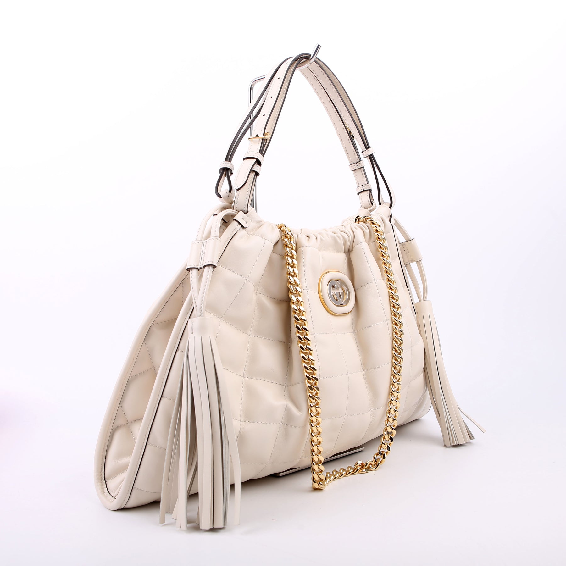 This pre-owned Gucci Deco Quilted Leather Shoulder Bag is guaranteed 100% authentic.