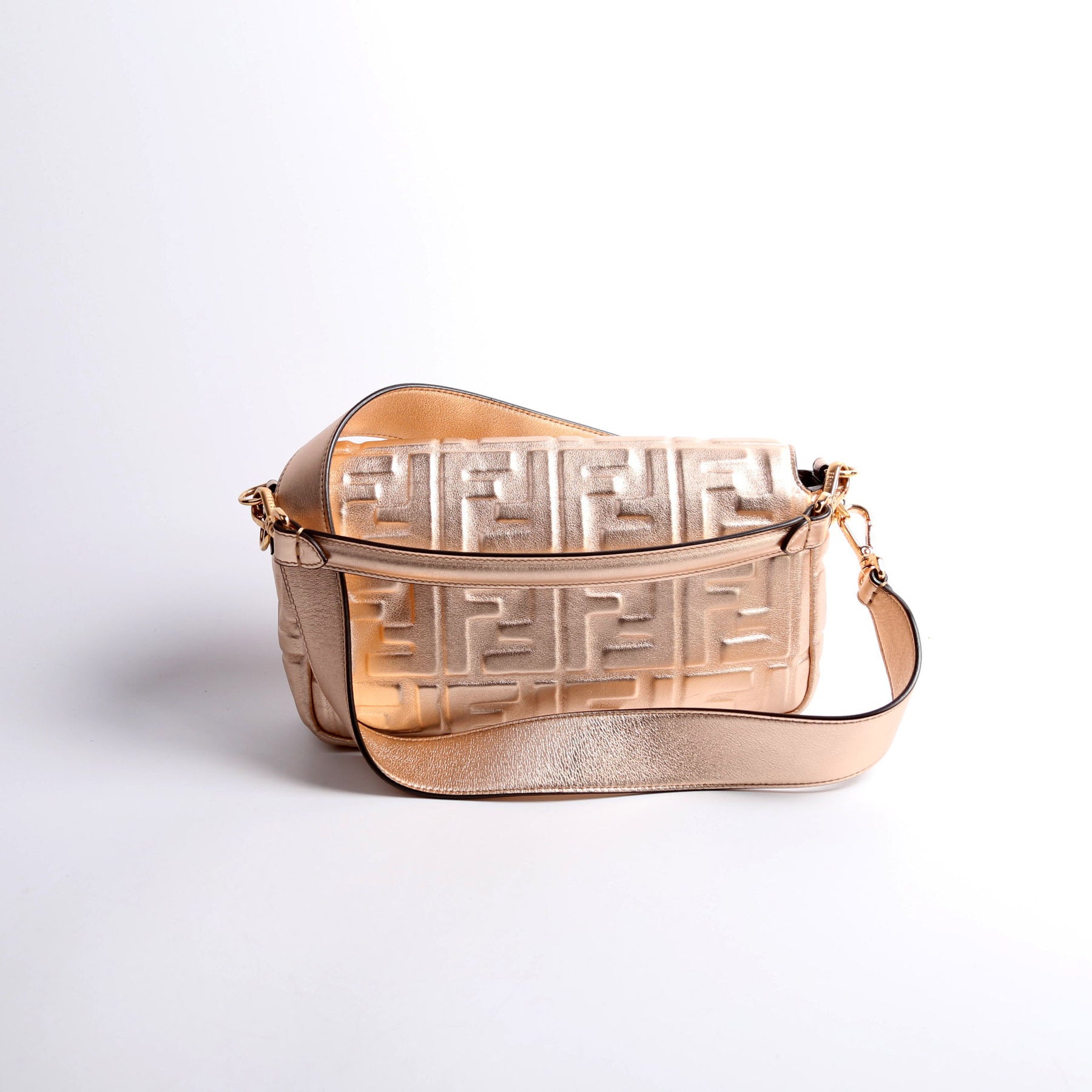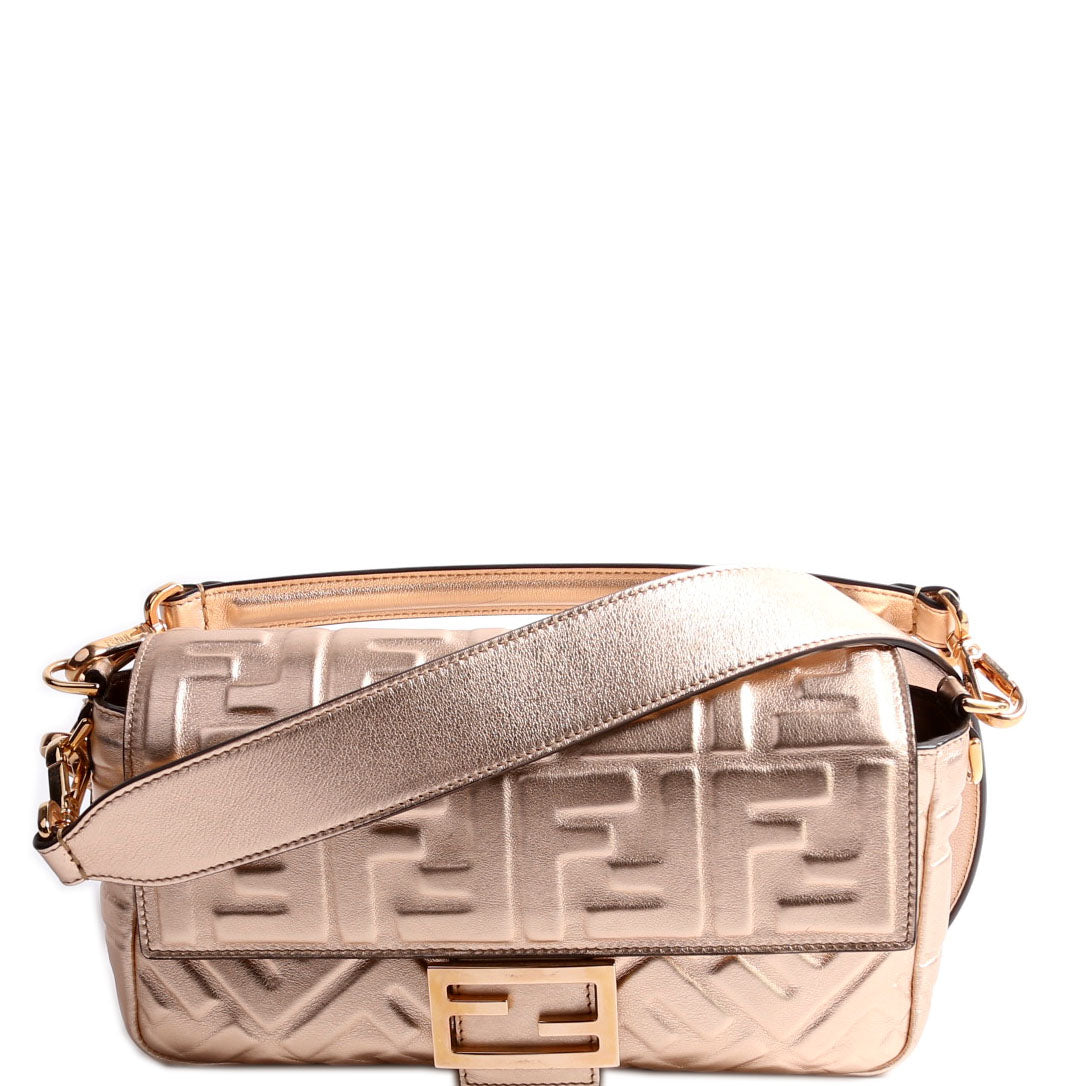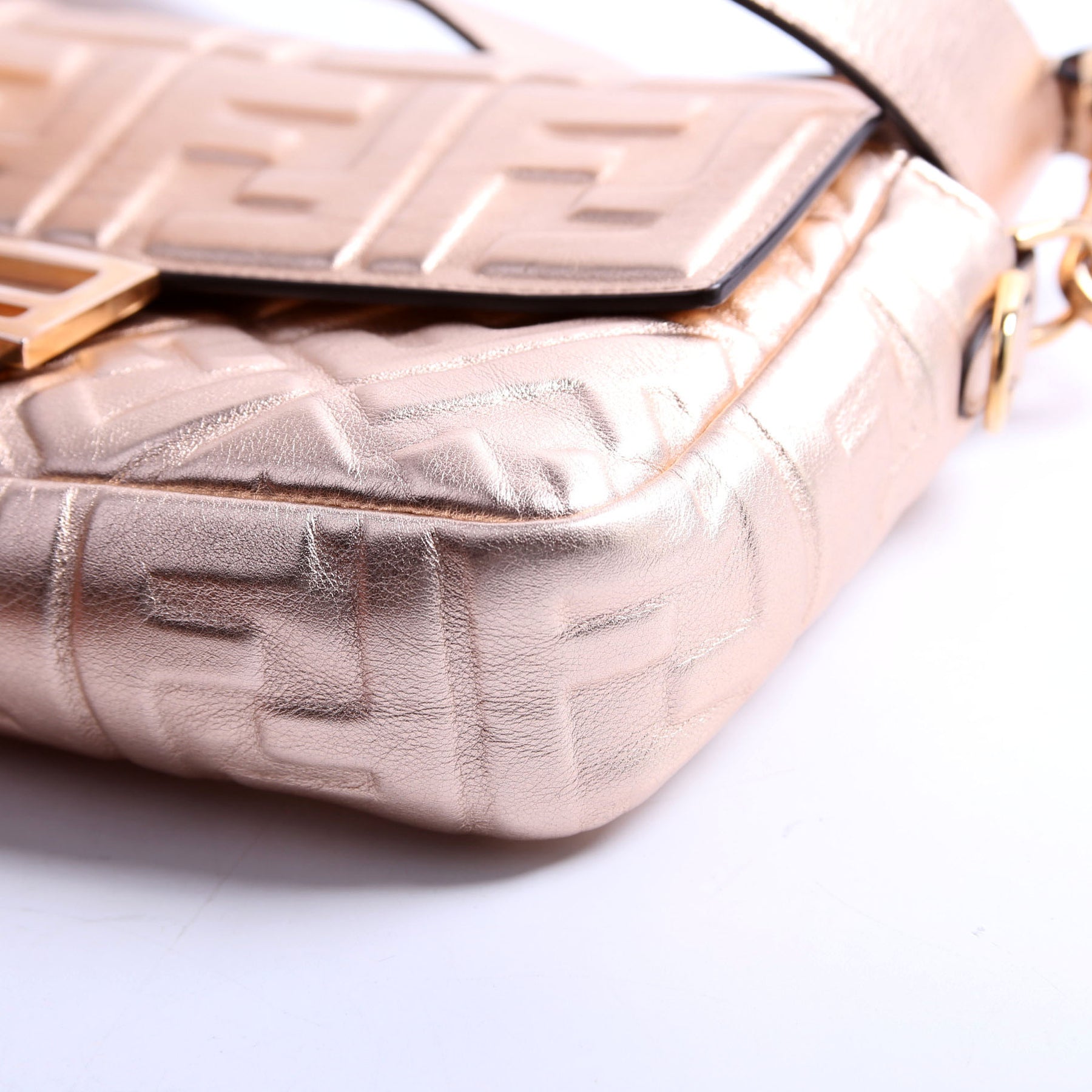 This pre-owned Fendi Baguette FF Embossed Metallic Nappa is guaranteed 100% authentic.