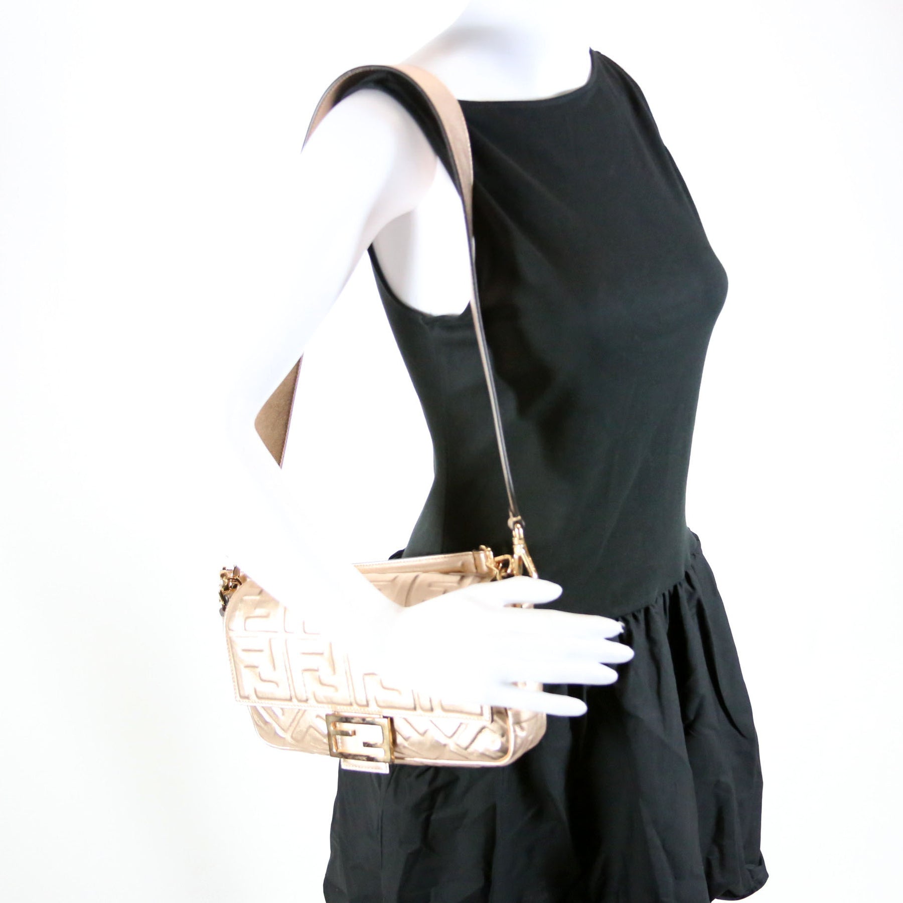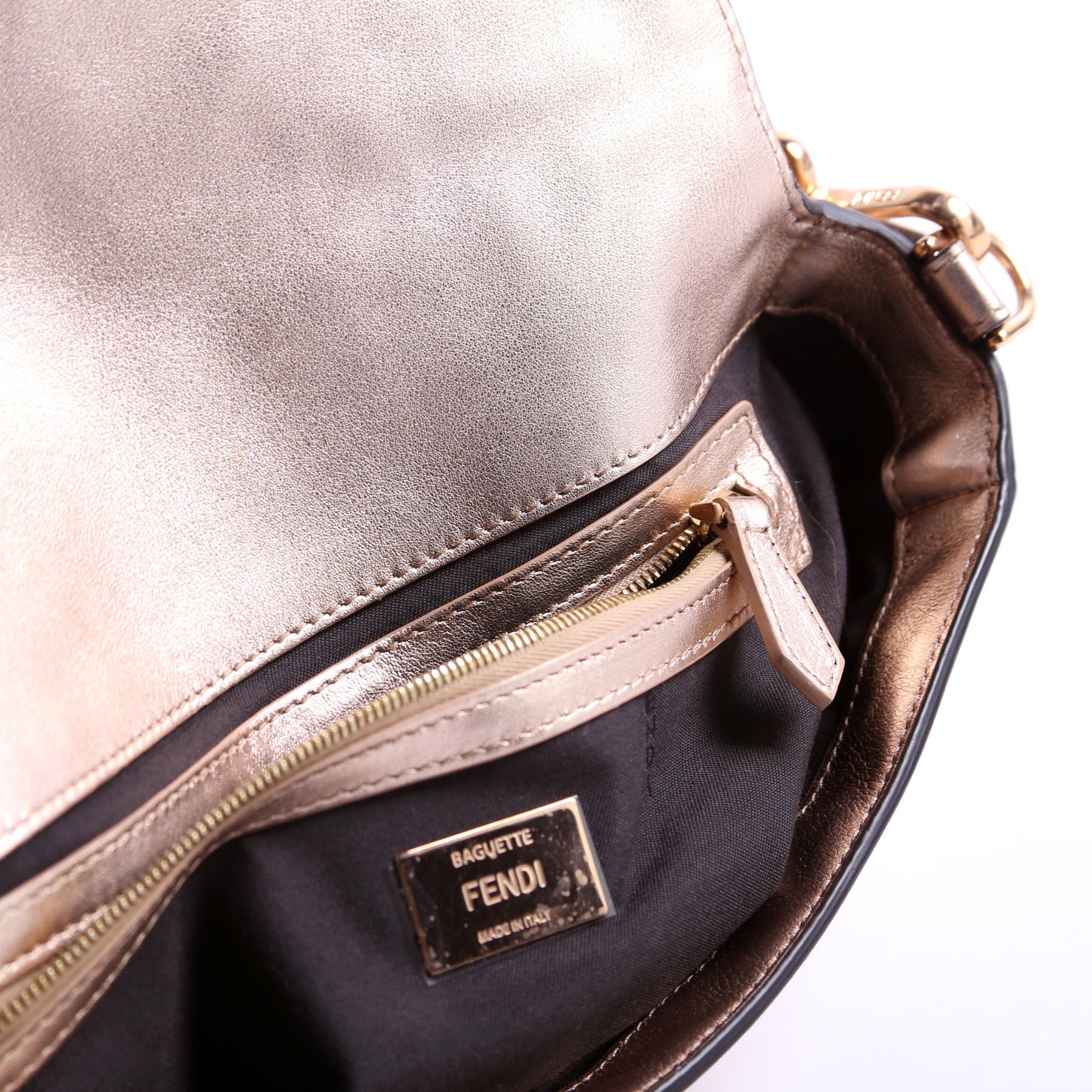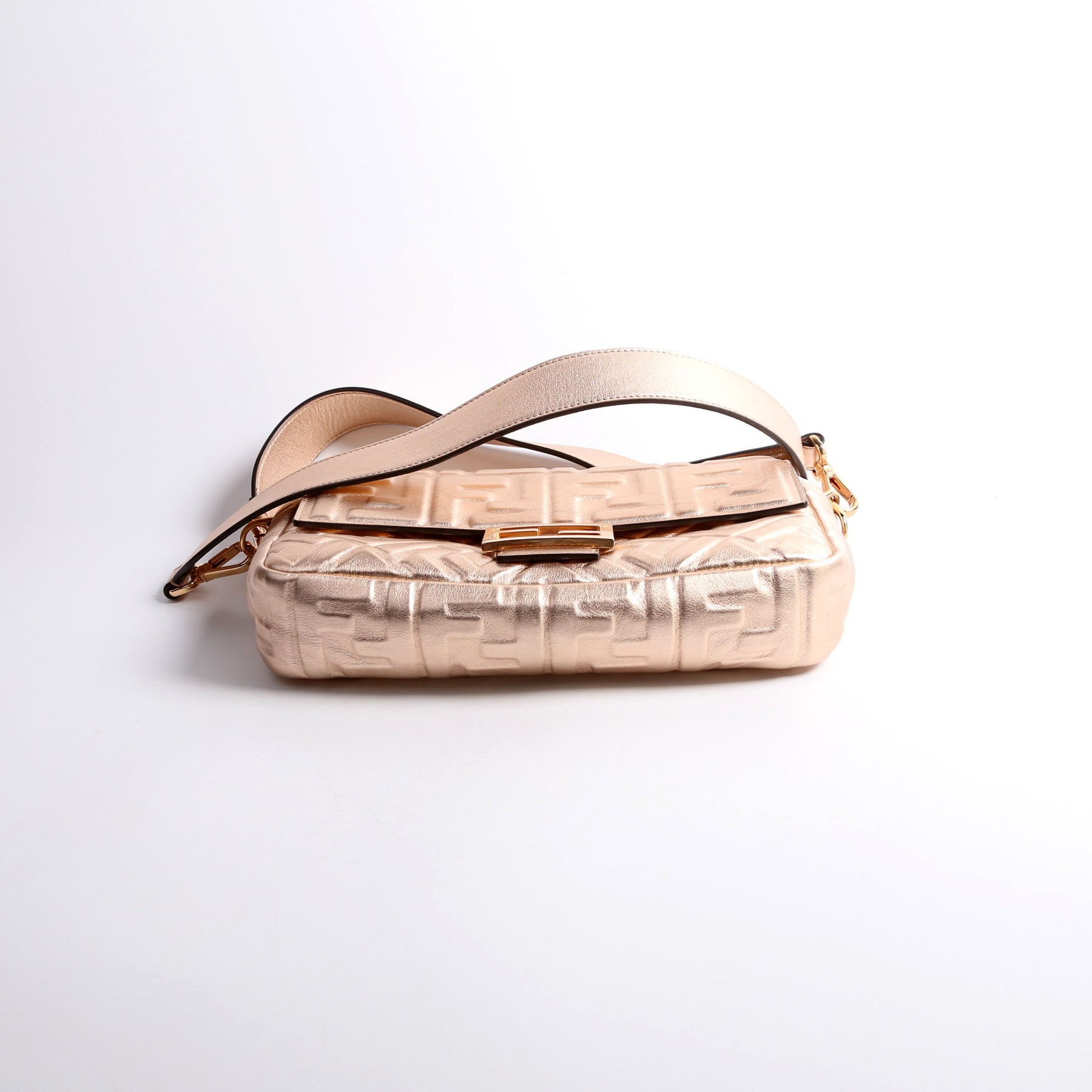 This pre-owned Fendi Baguette FF Embossed Metallic Nappa is guaranteed 100% authentic.