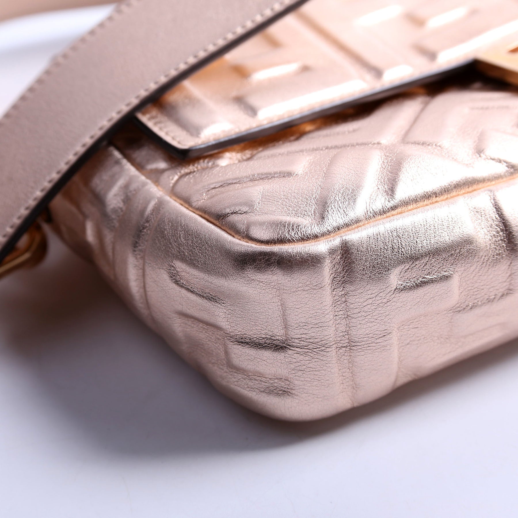 8BR600 Baguette FF Embossed Metallic Nappa Rose Gold