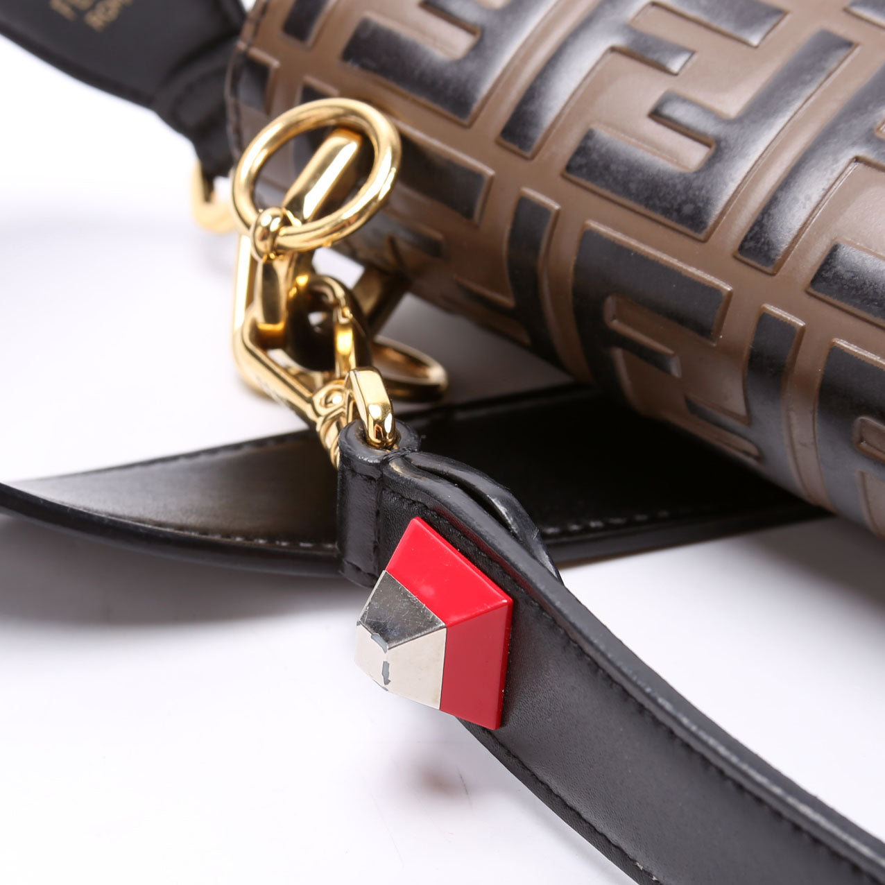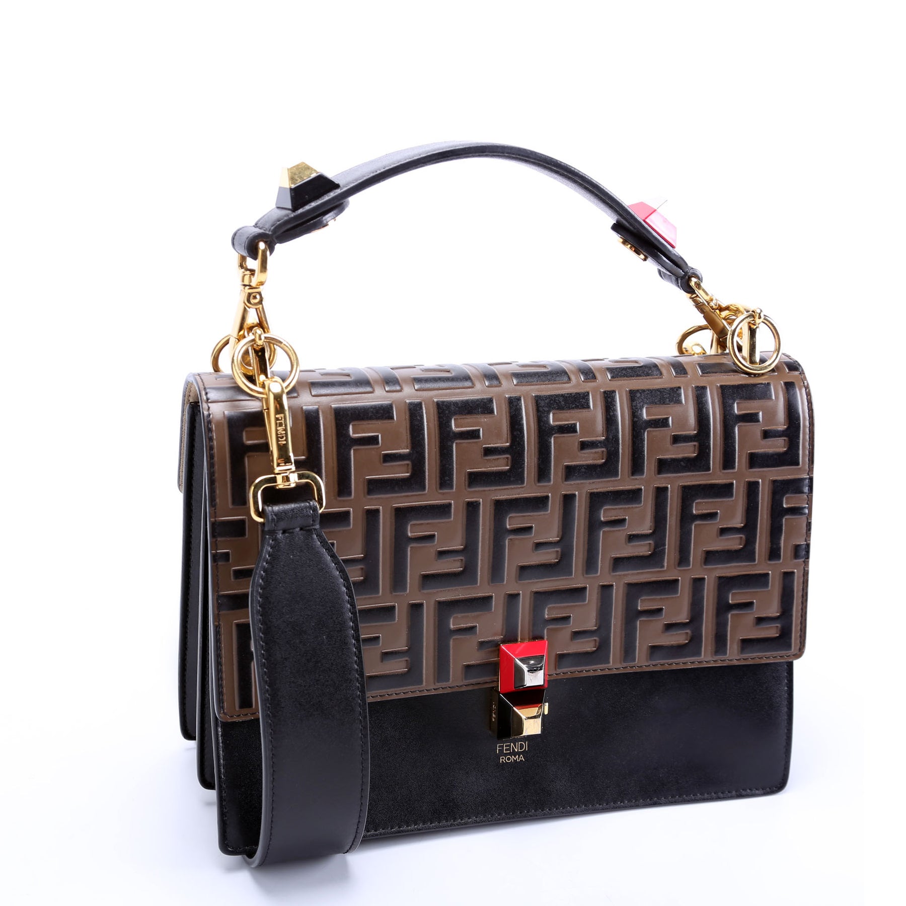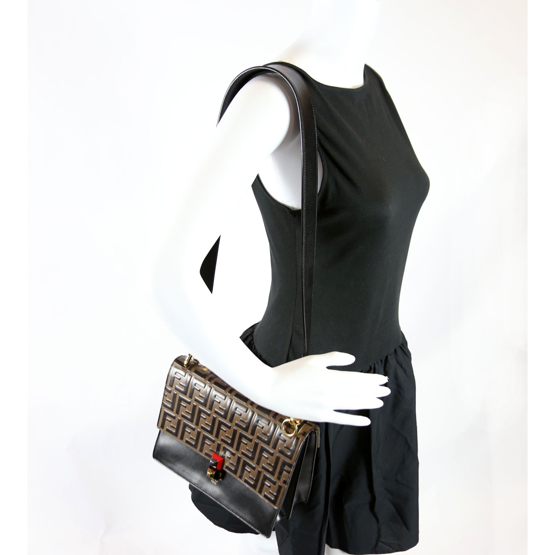 This pre-owned Fendi Kan I Shoulder Bag is guaranteed 100% authentic. The exterior is in the classic Fendi FF leather.