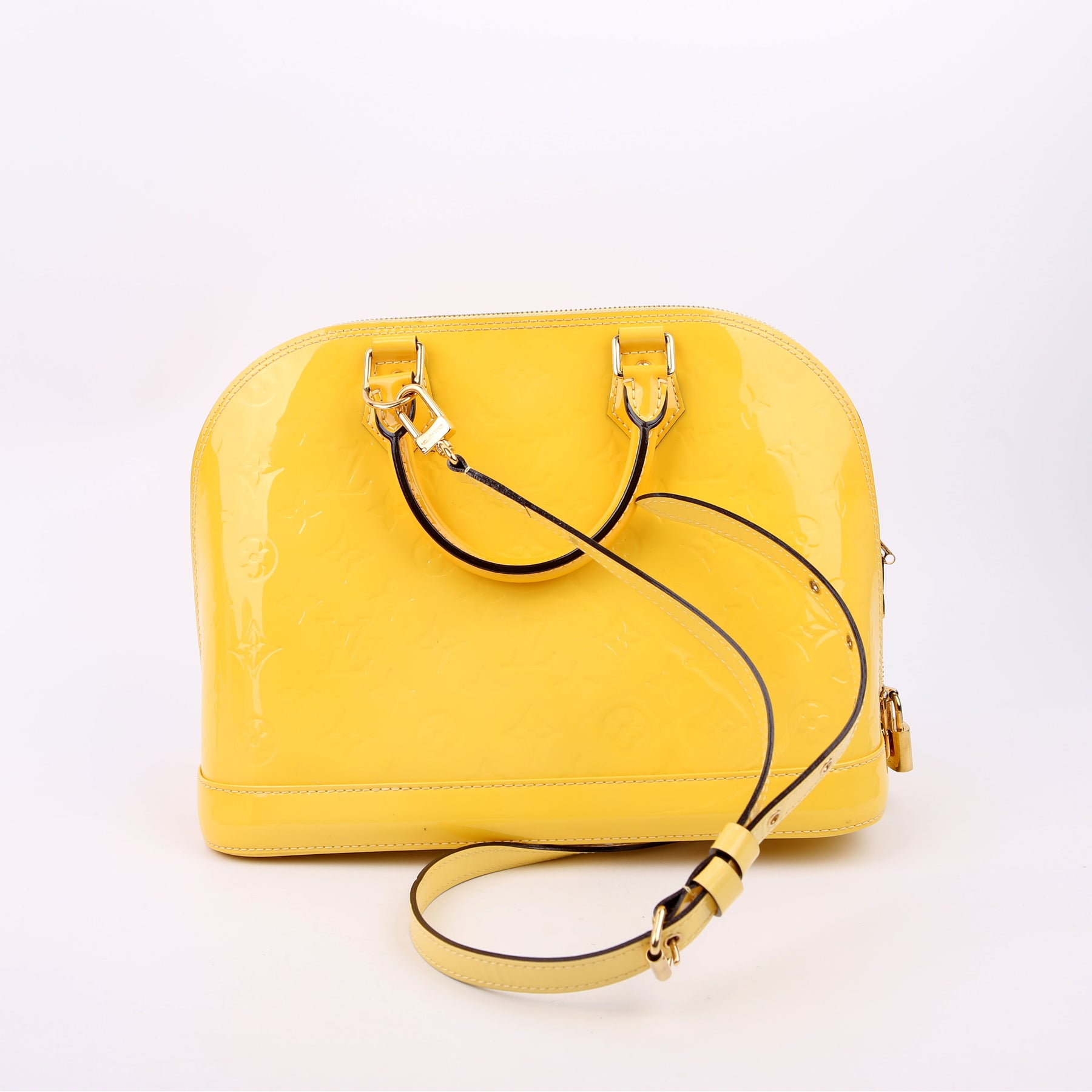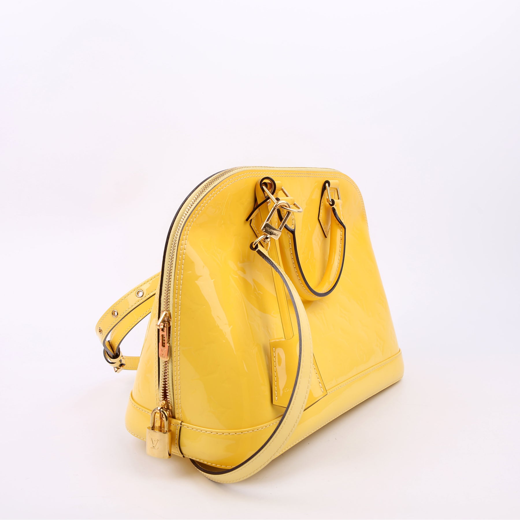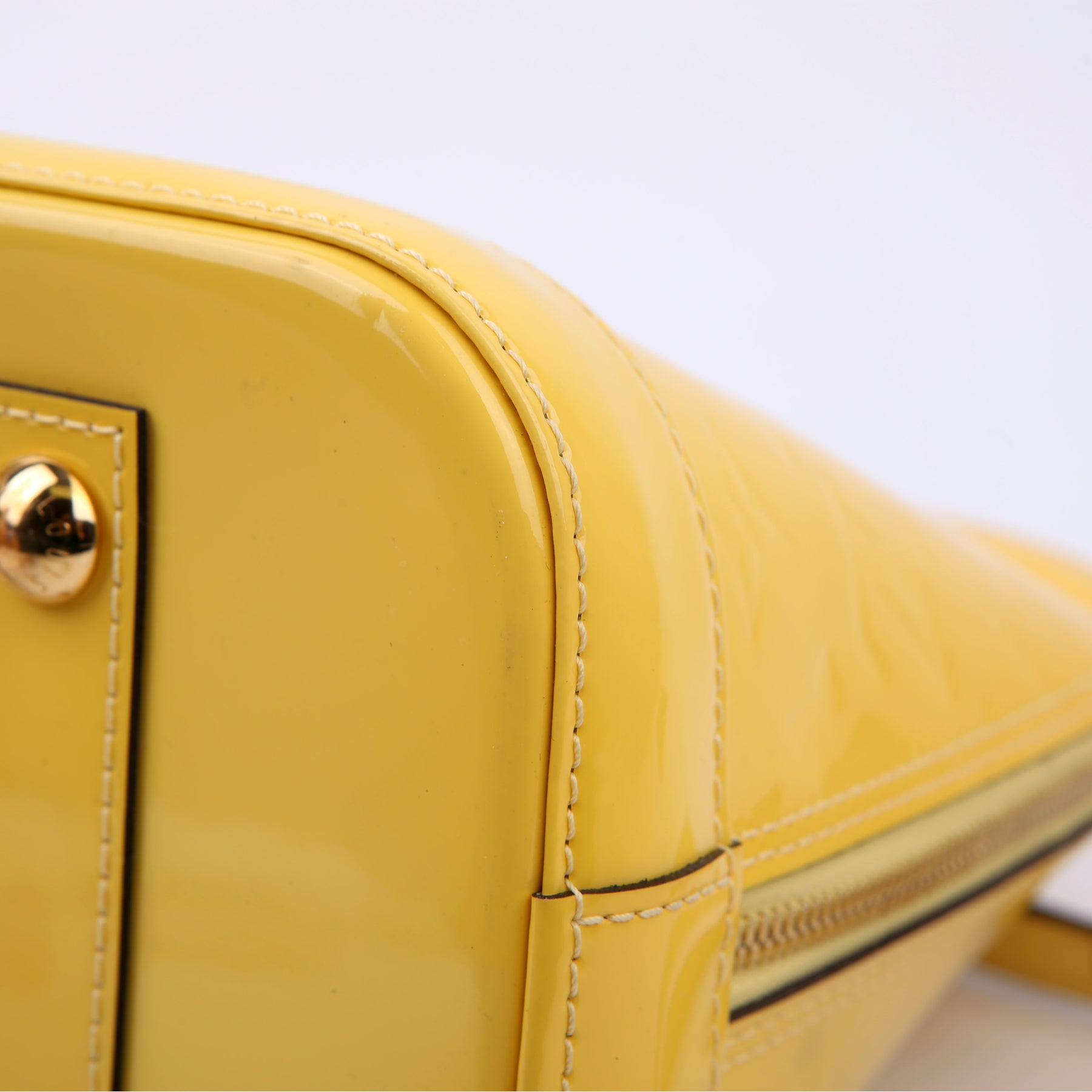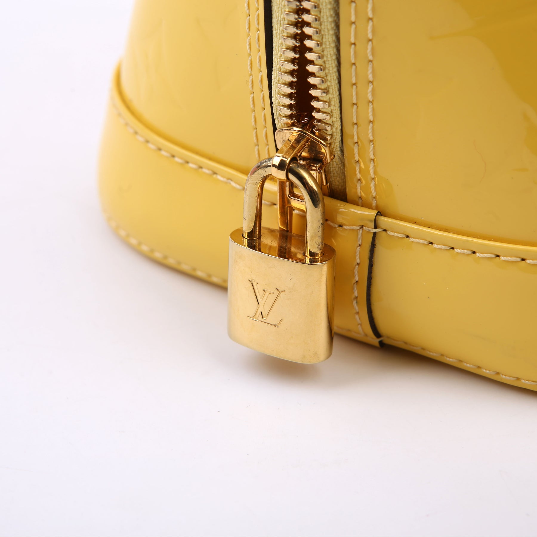 This pre-owned Louis Vuitton Alma PM is guaranteed 100% authentic. The exterior is in the classic Louis Vuitton Vernis leather.