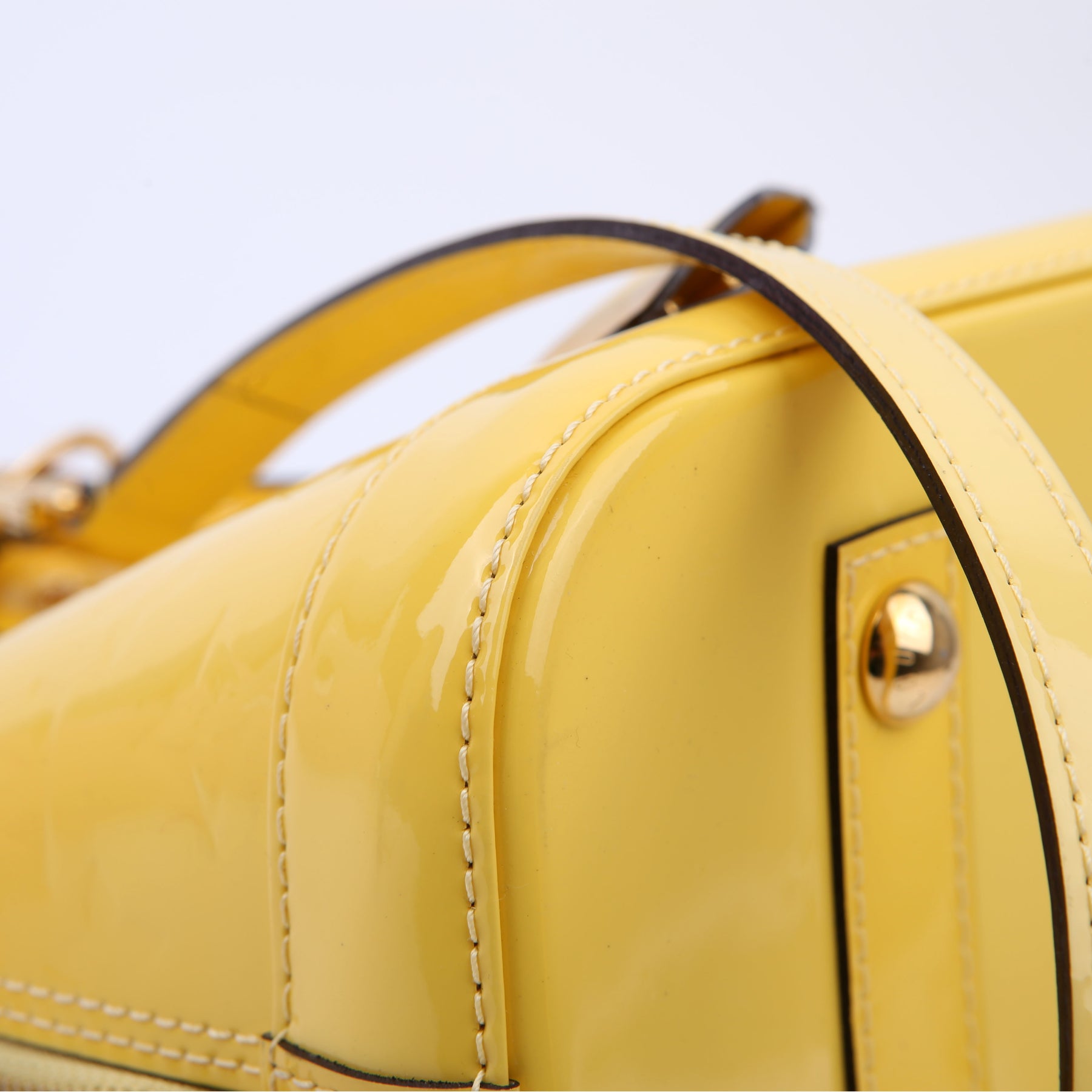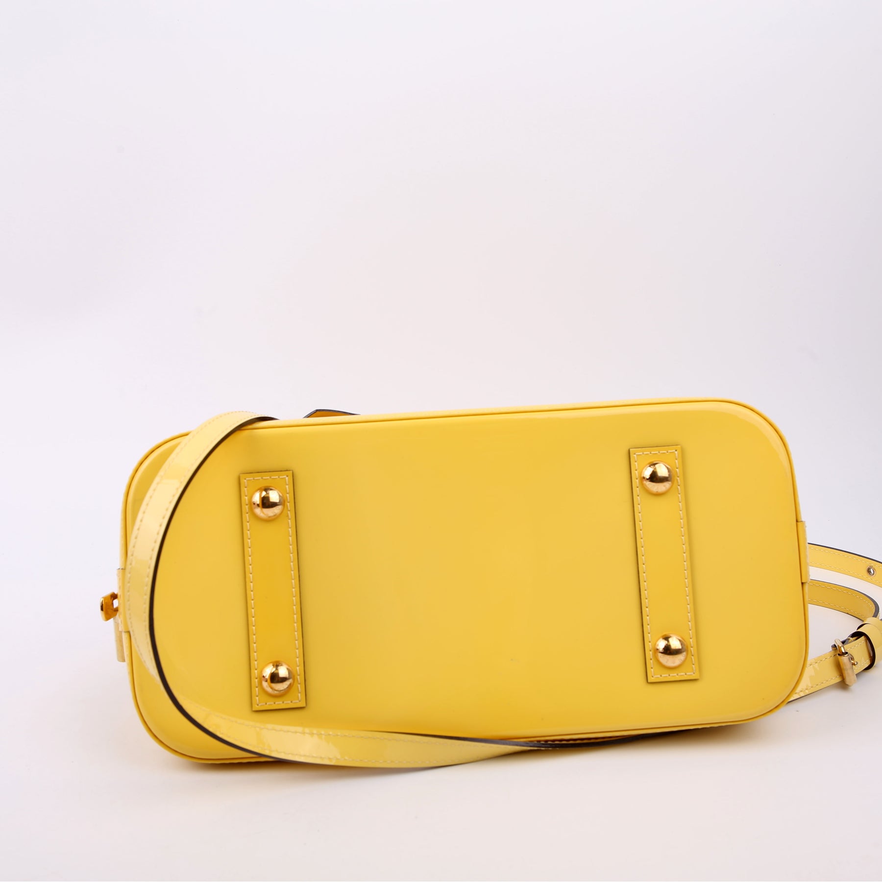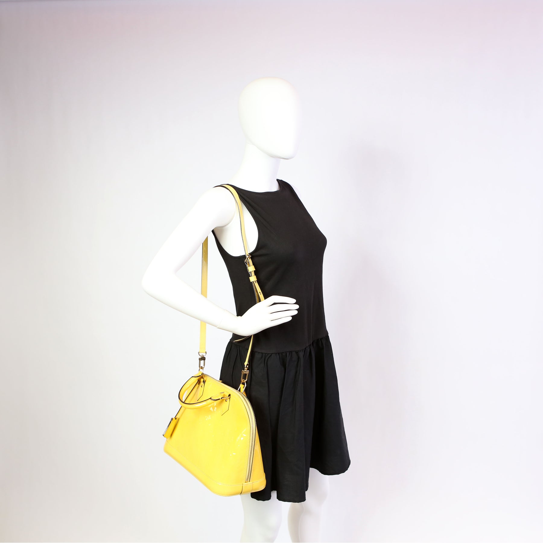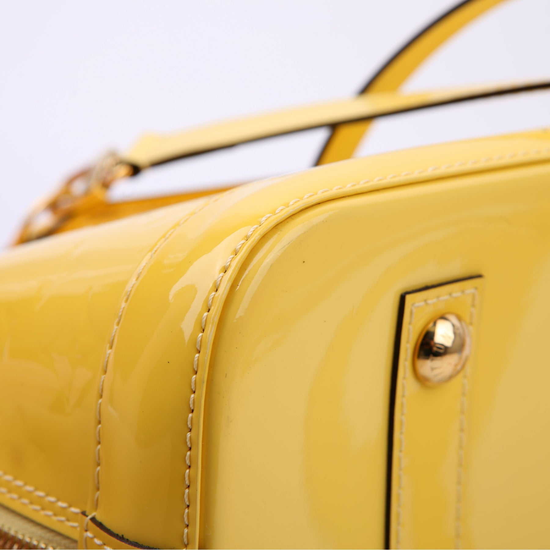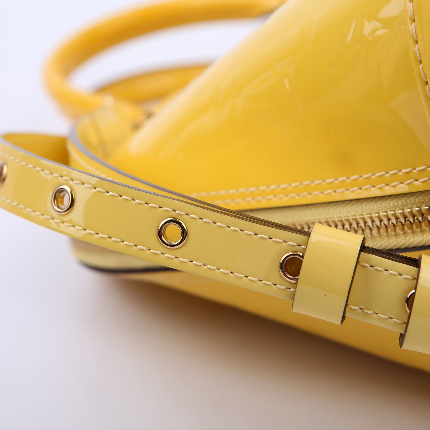 This pre-owned Louis Vuitton Alma PM is guaranteed 100% authentic. The exterior is in the classic Louis Vuitton Vernis leather.