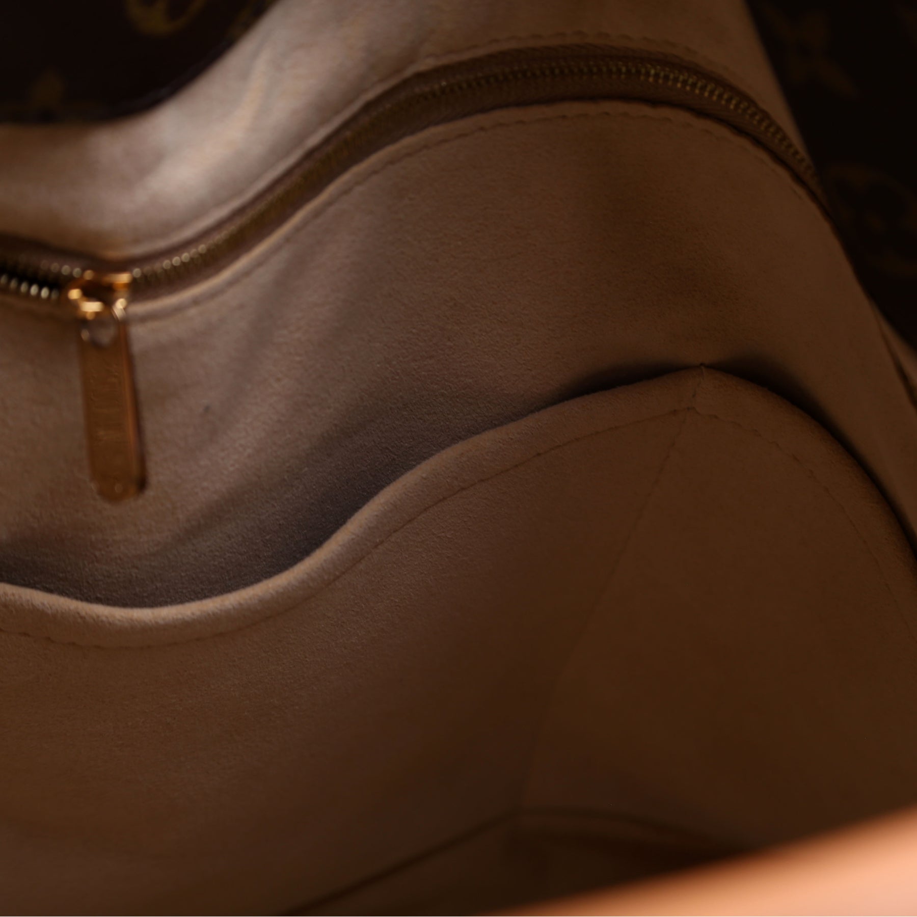 This pre-owned Louis Vuitton Artsy GM is guaranteed 100% authentic. The exterior is in the classic Louis Vuitton Monogram coated canvas.