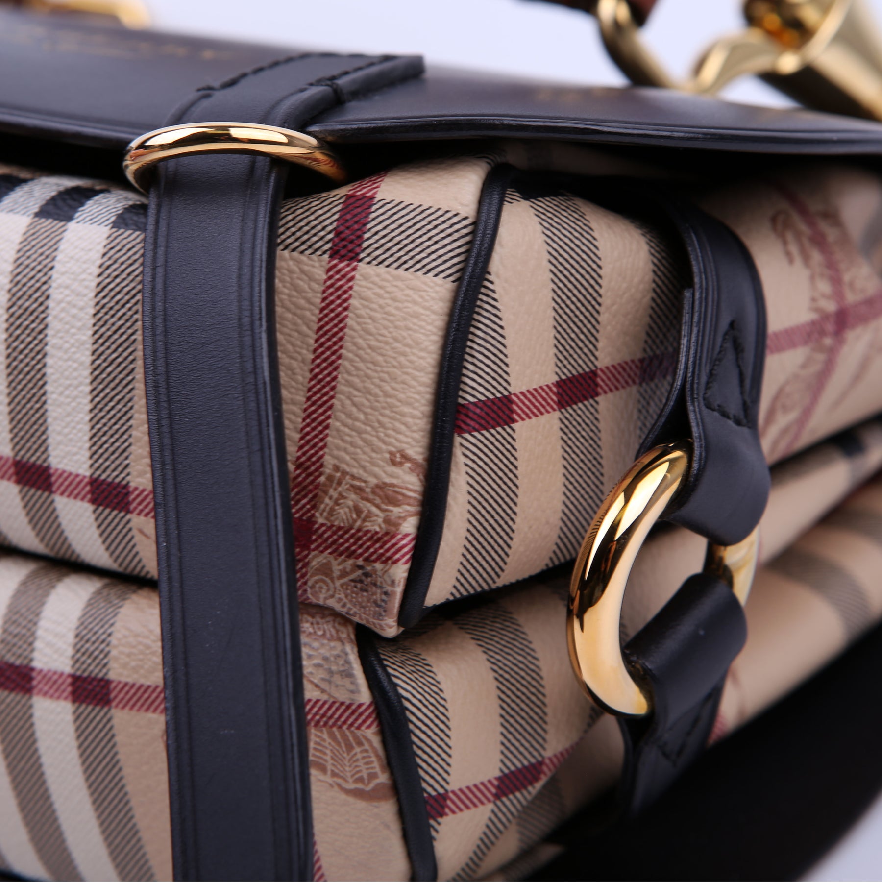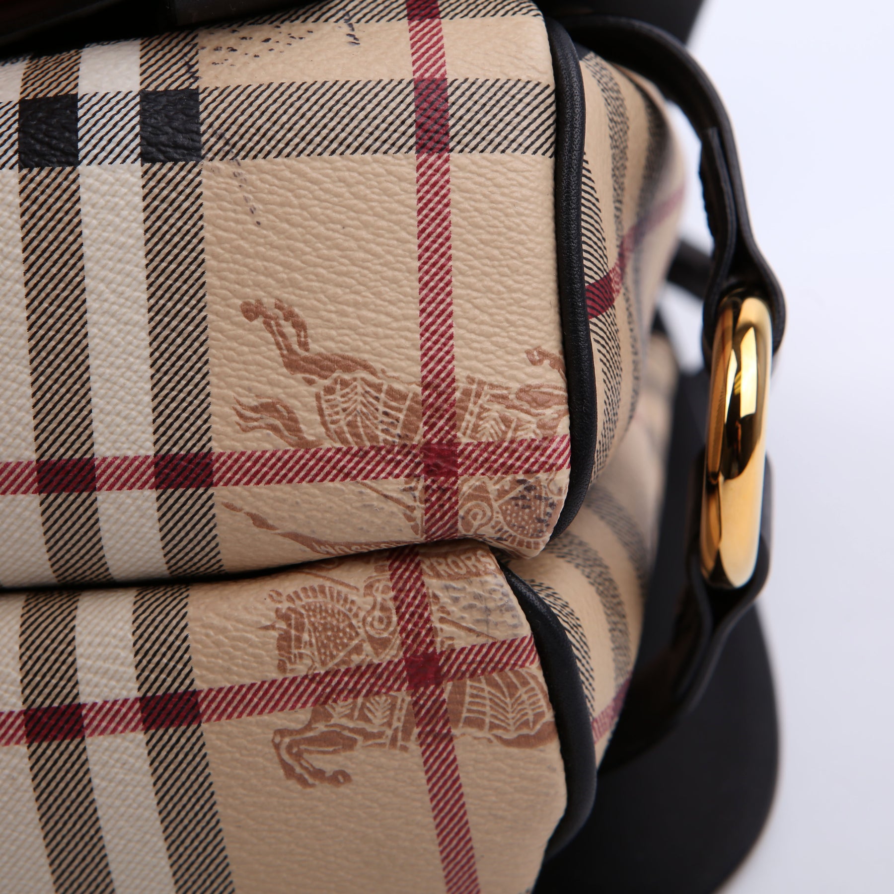 This pre-owned Burberry Bridle Haymarket Leather Shoulder Bag guaranteed 100% authentic.