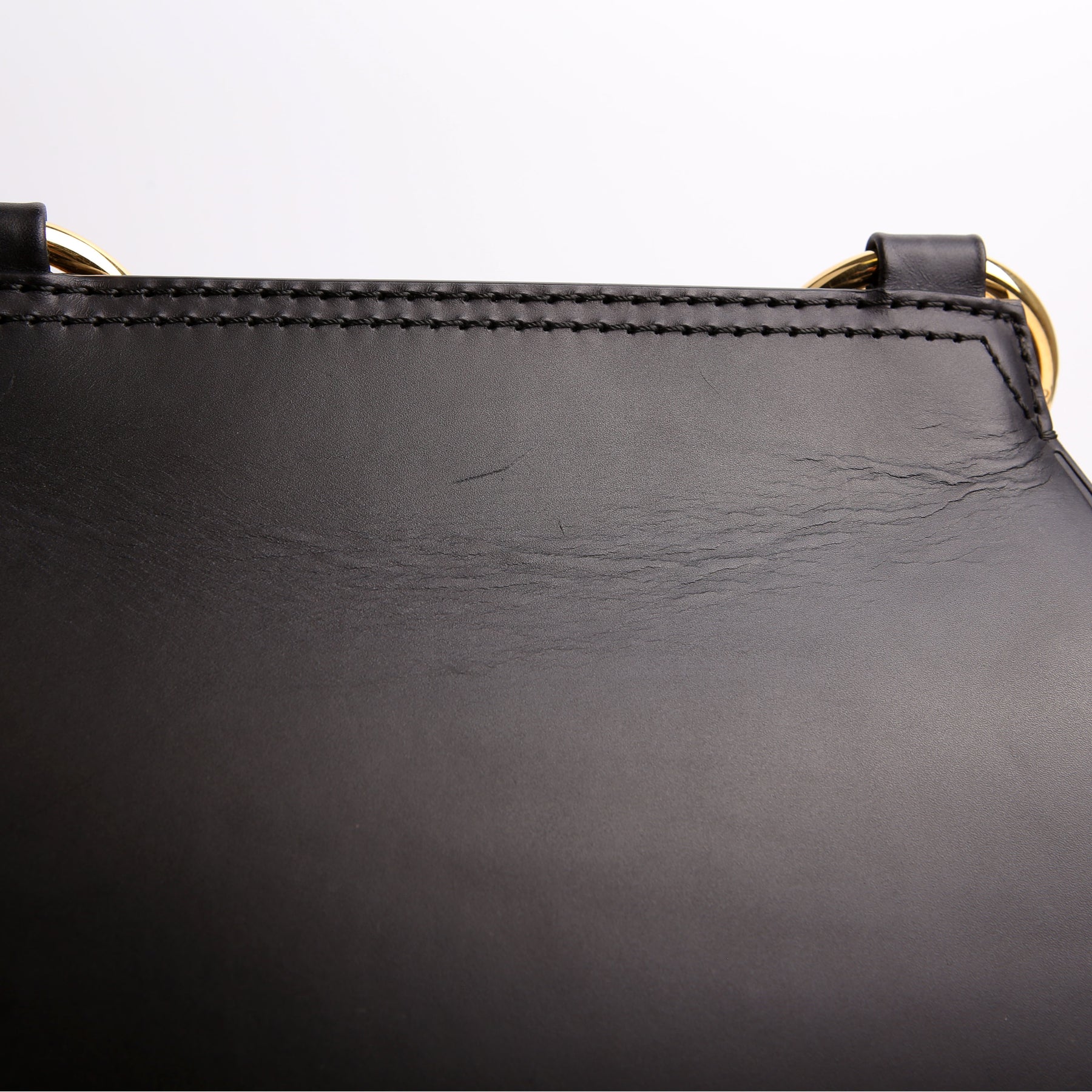 Exterior: The exterior canvas has black color transfer. The black flap has creases.