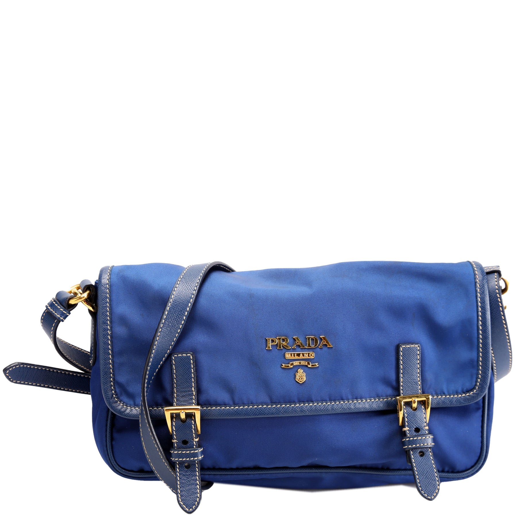 BT0772 Tessuto Nylon Saffiano Buckle Messenger Small Blue