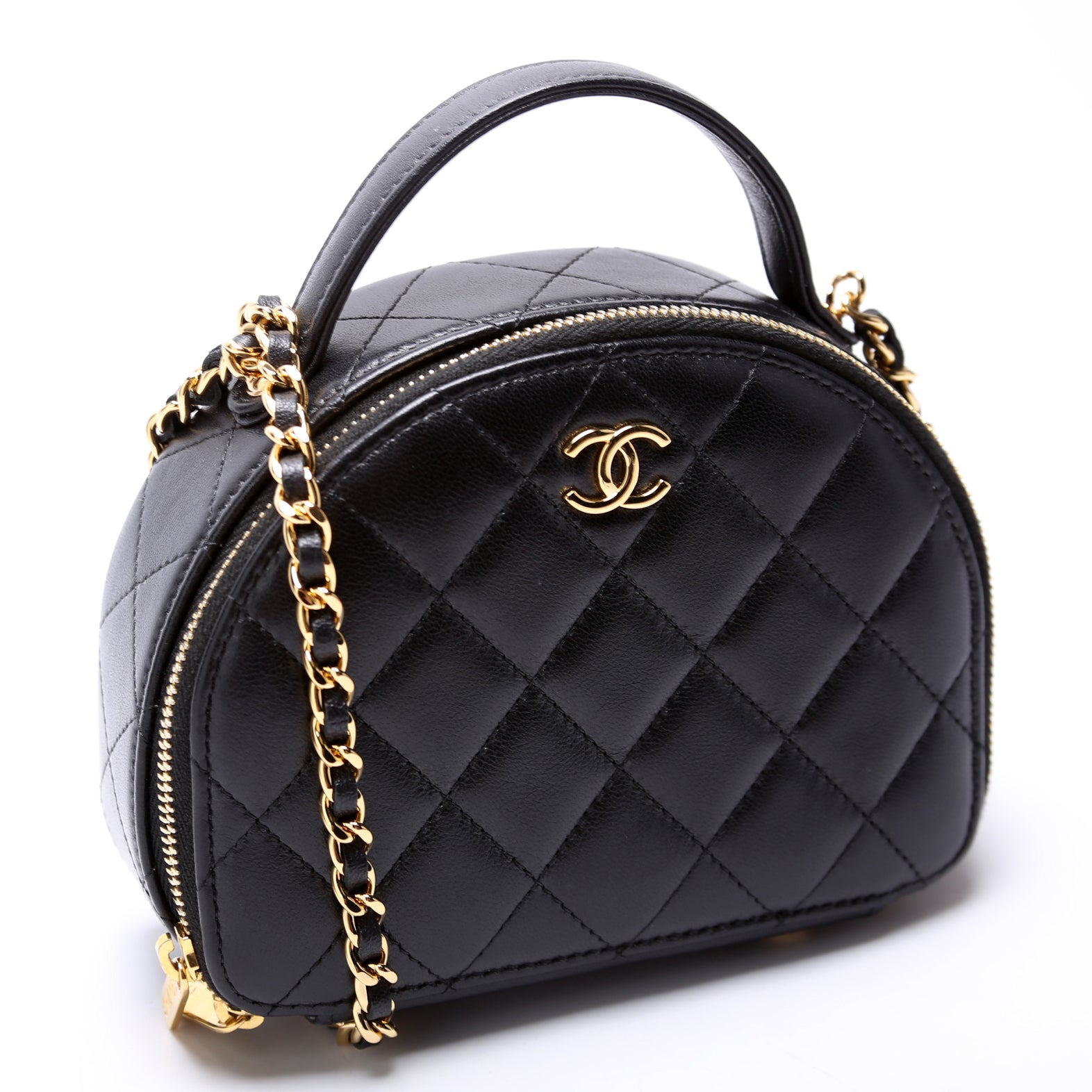 This pre-owned Chanel Chic Riviera Small Top Handle Vanity is guaranteed 100% authentic. The exterior is in the classic Lambskin Lambskin.
