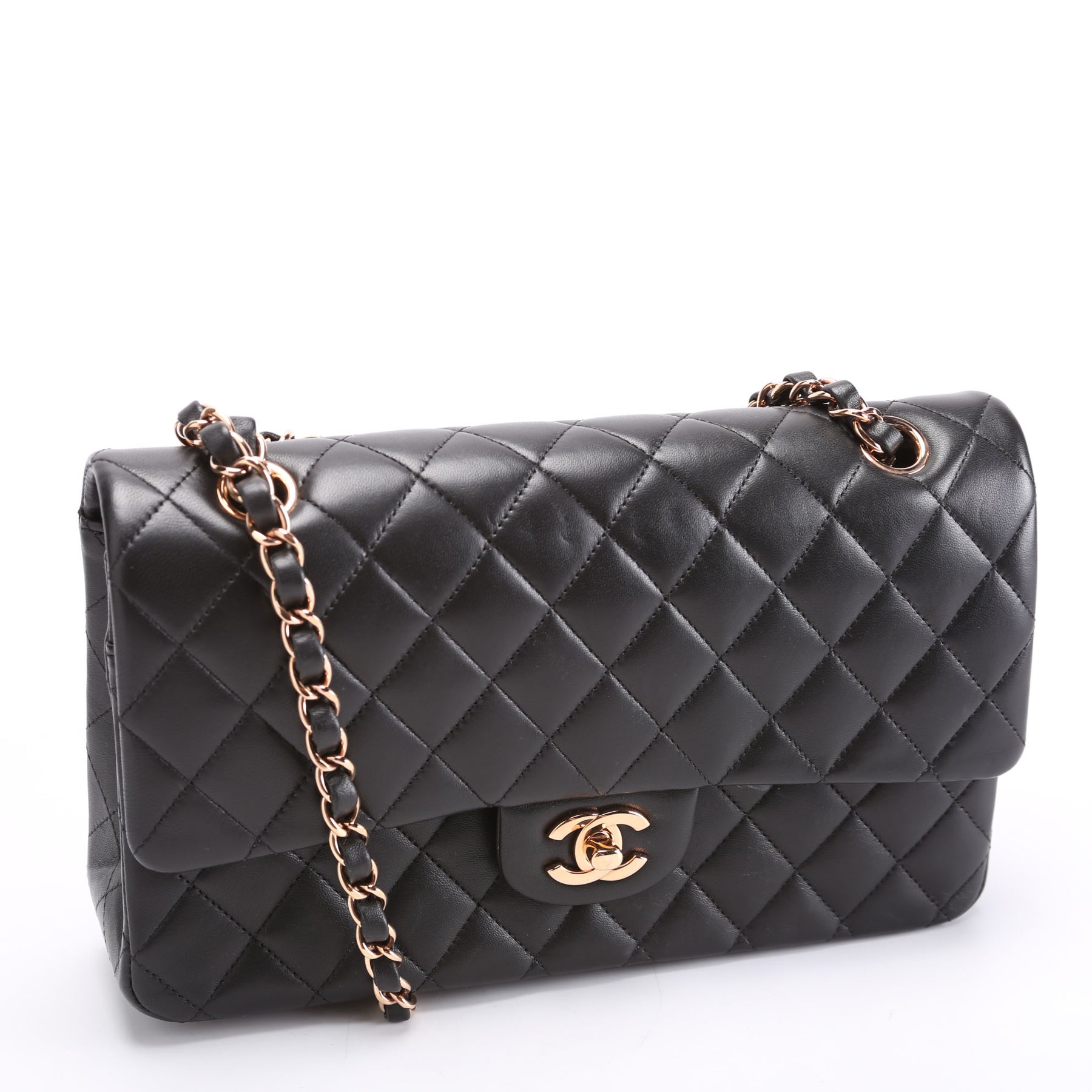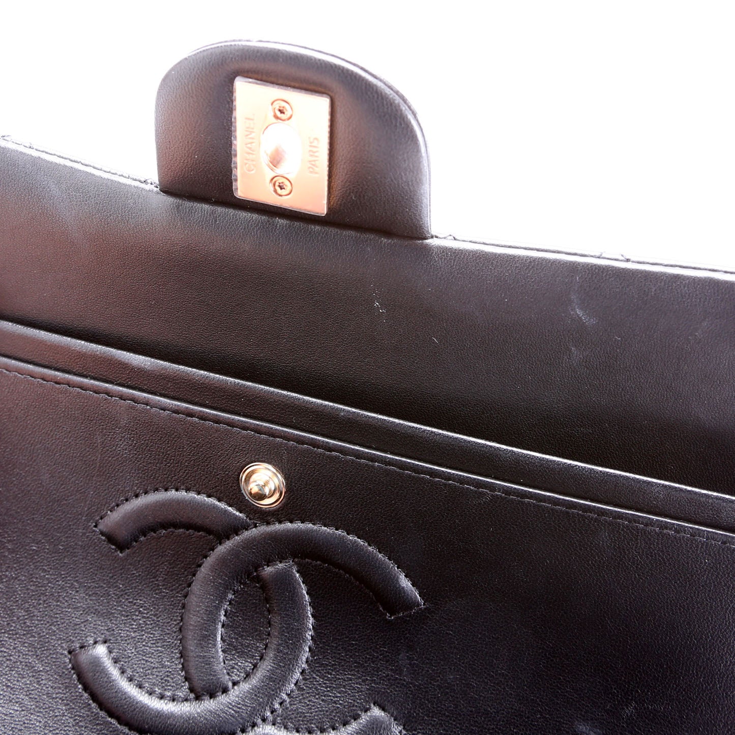 This pre-owned Chanel Classic Flap Medium is guaranteed 100% authentic. The exterior is in the classic Chanel Caviar leather.