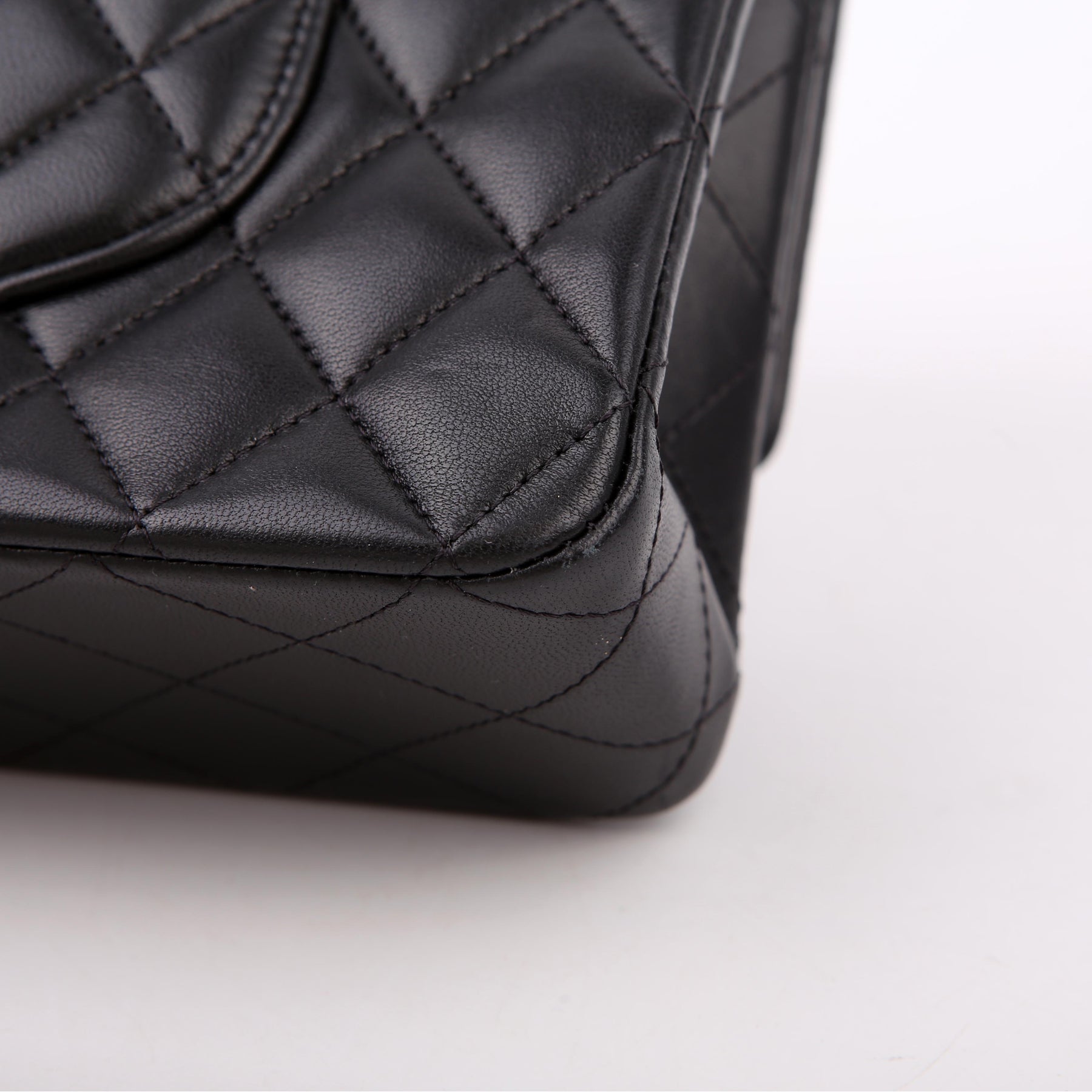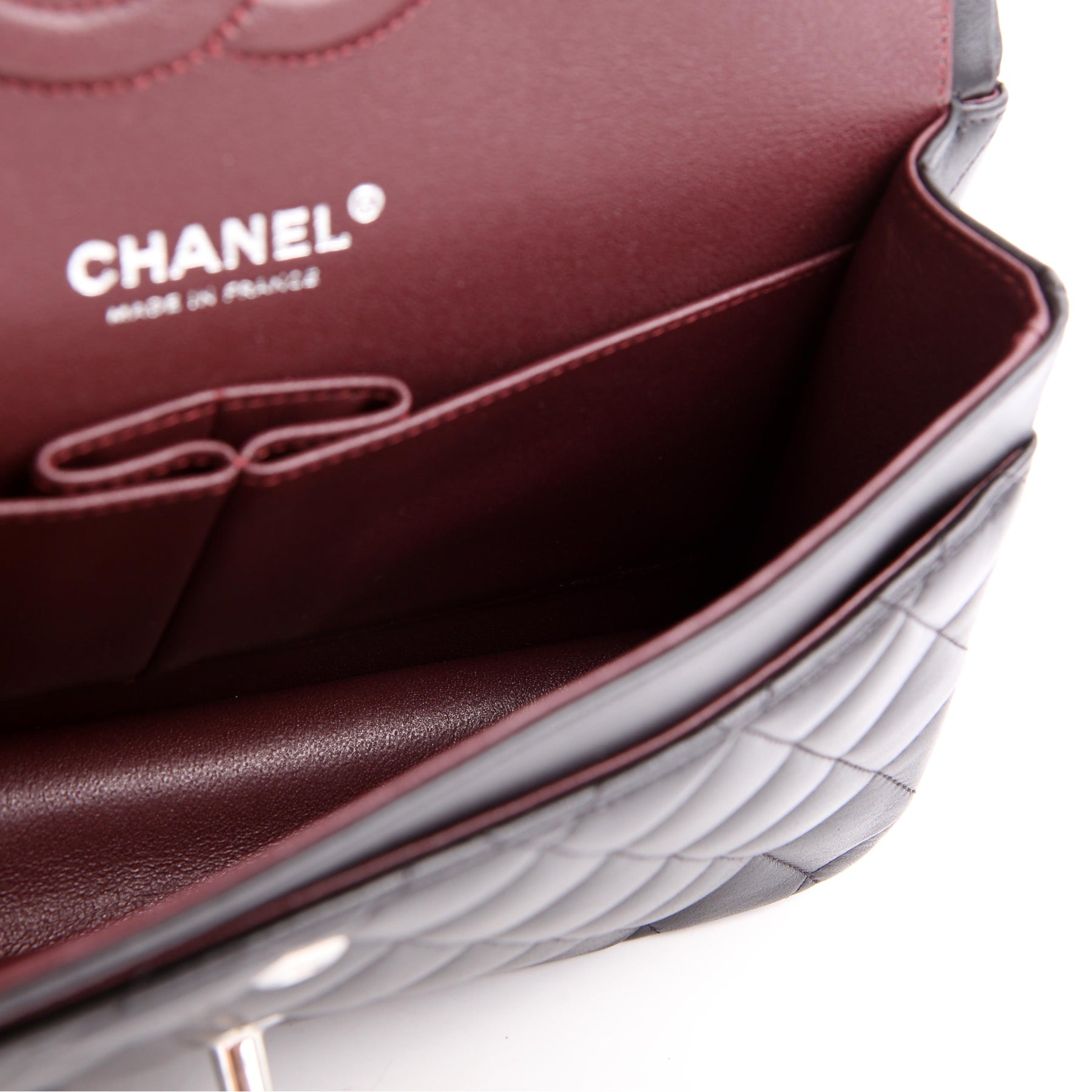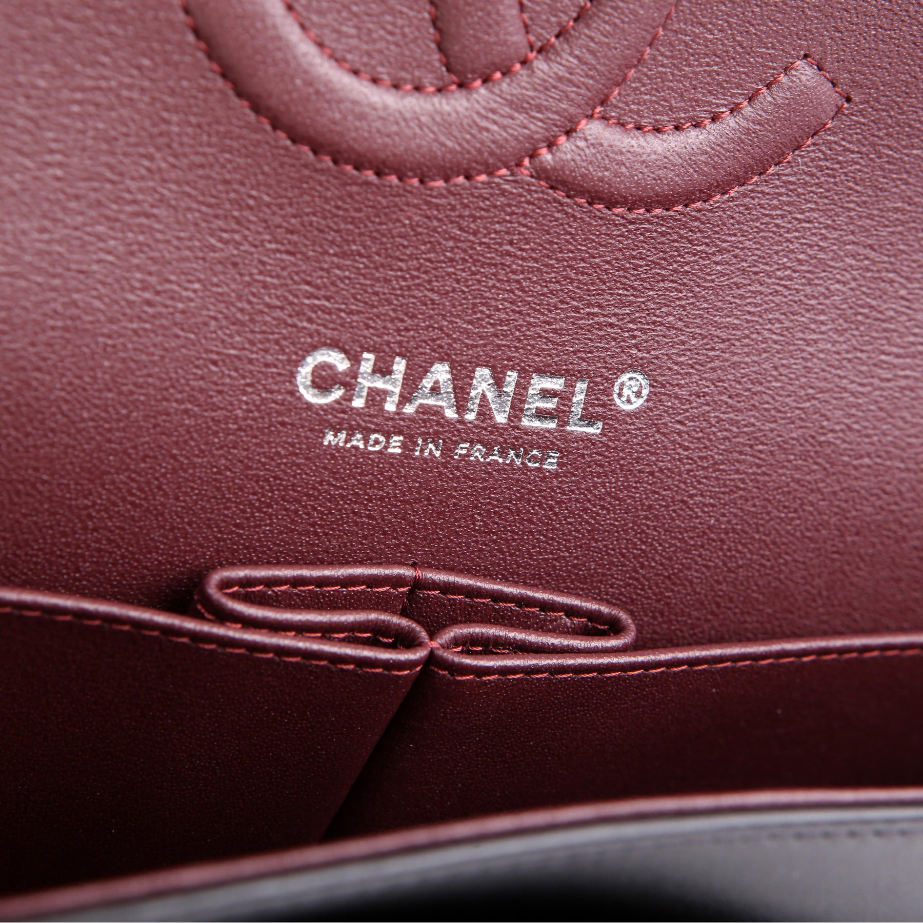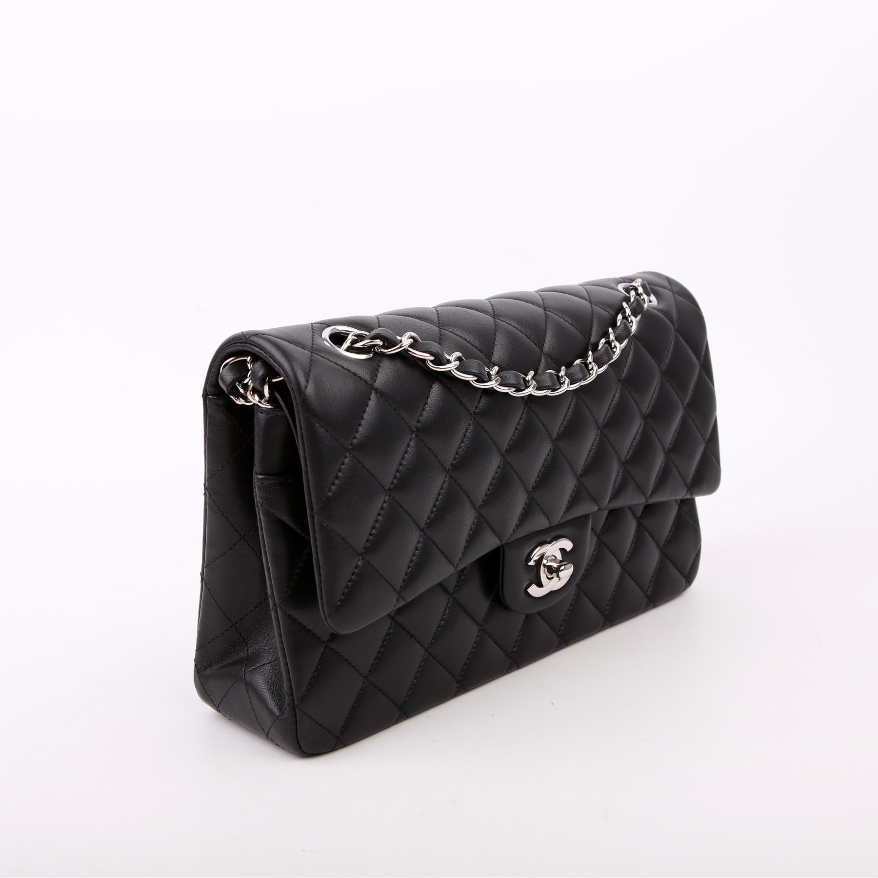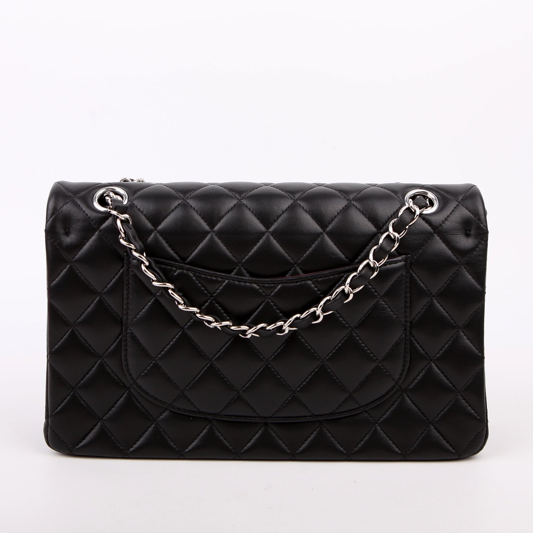 This pre-owned Chanel Classic Flap Medium is guaranteed 100% authentic. The exterior is in the classic Chanel Lambskin leather.