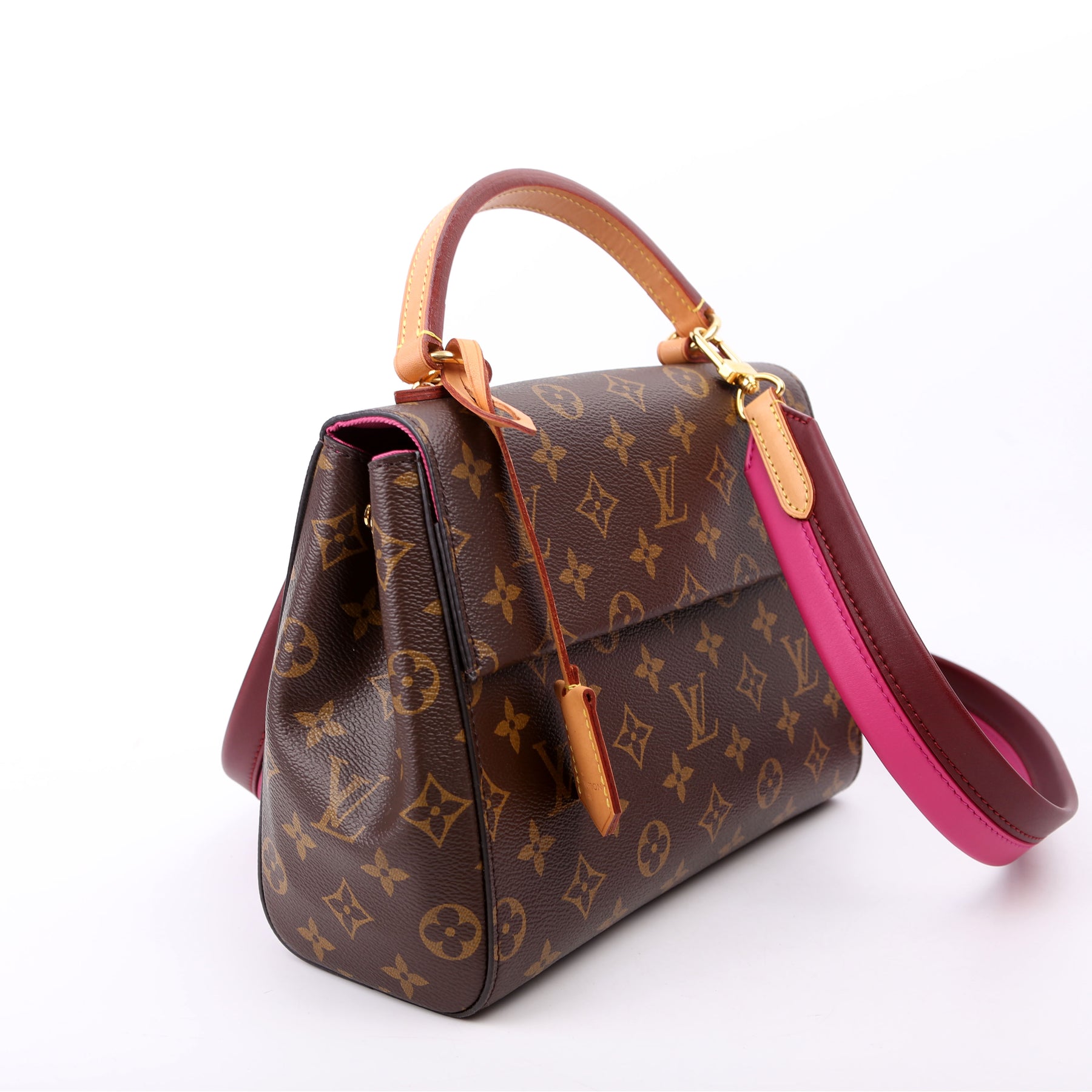 This pre-owned Louis Vuitton Cluny BB is guaranteed 100% authentic. The exterior is in the classic Louis Vuitton Monogram coated canvas.