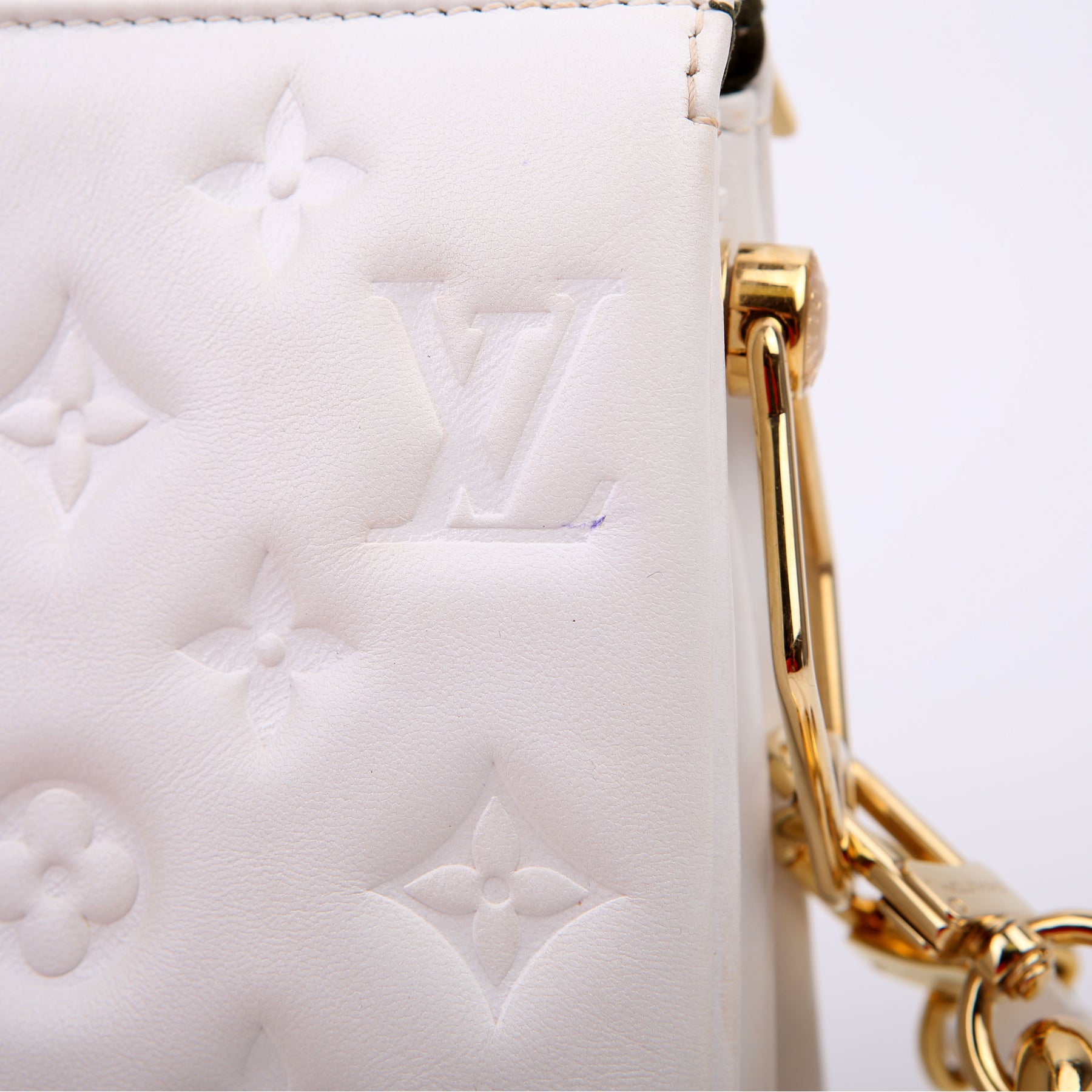 This pre-owned Louis Vuitton Coussin BB Lambskin is guaranteed 100% authentic.