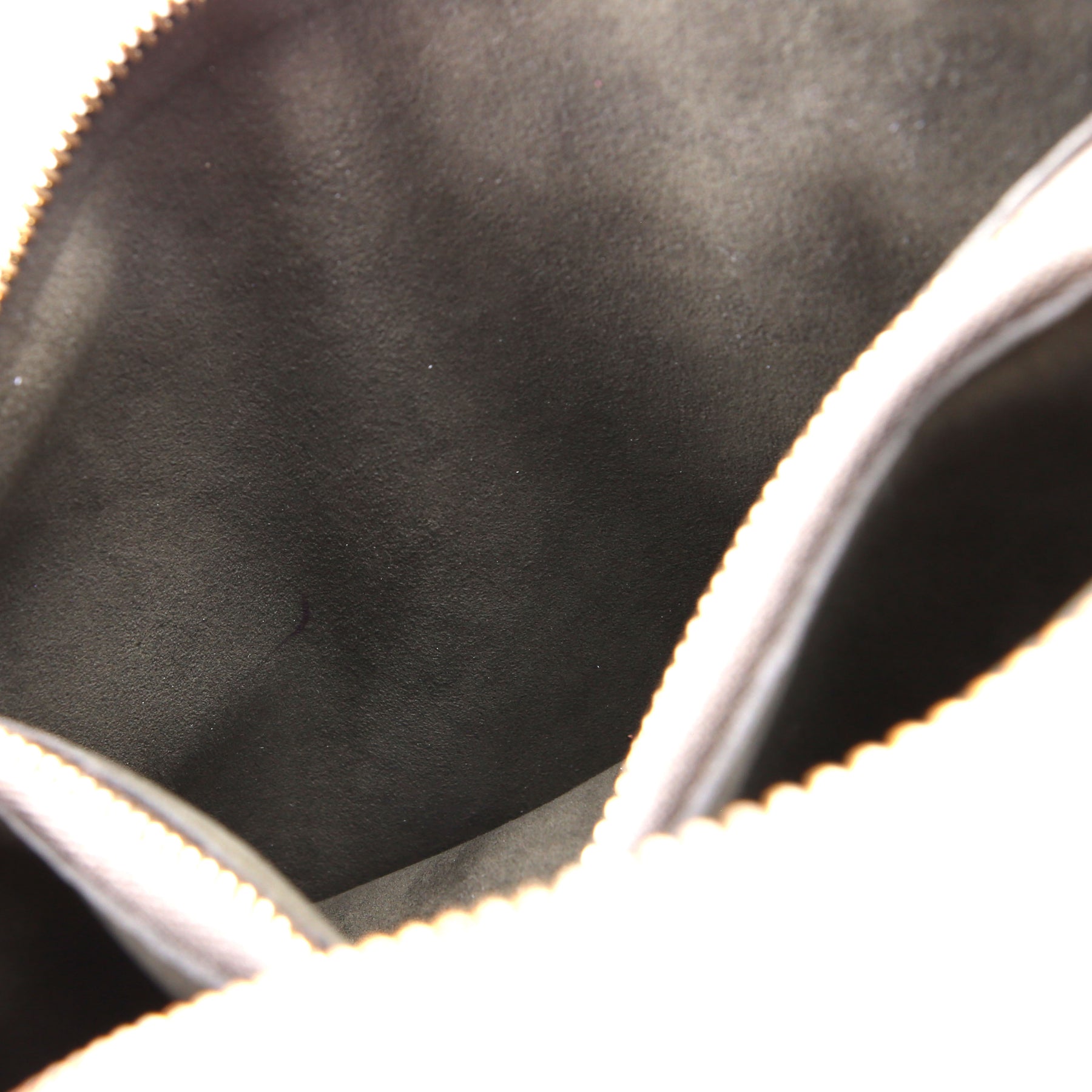 Exterior: The exterior leather has minor discoloration on the sides near the hardware. The leather has small ink marks throughout.