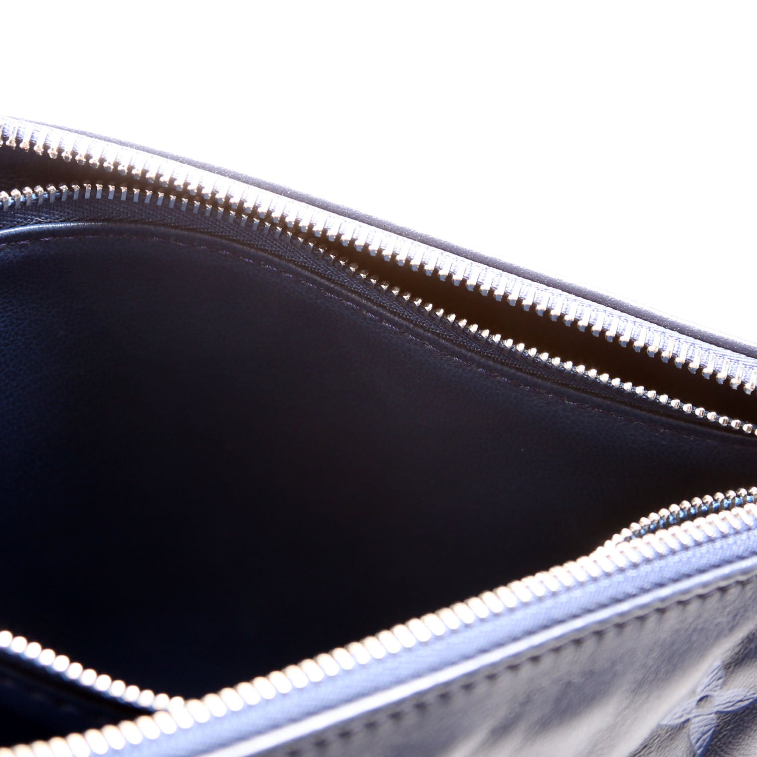 Interior: The interior shows light signs of wear. It features two open sections and one zip closure pocket.