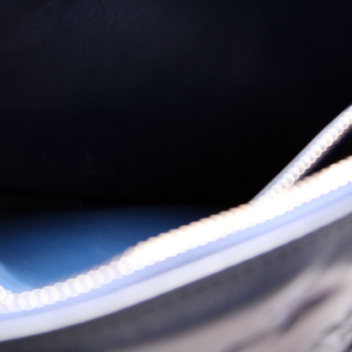 Exterior: The exterior leather shows light wear and scuffs. The corners show light wear and rubbing.
