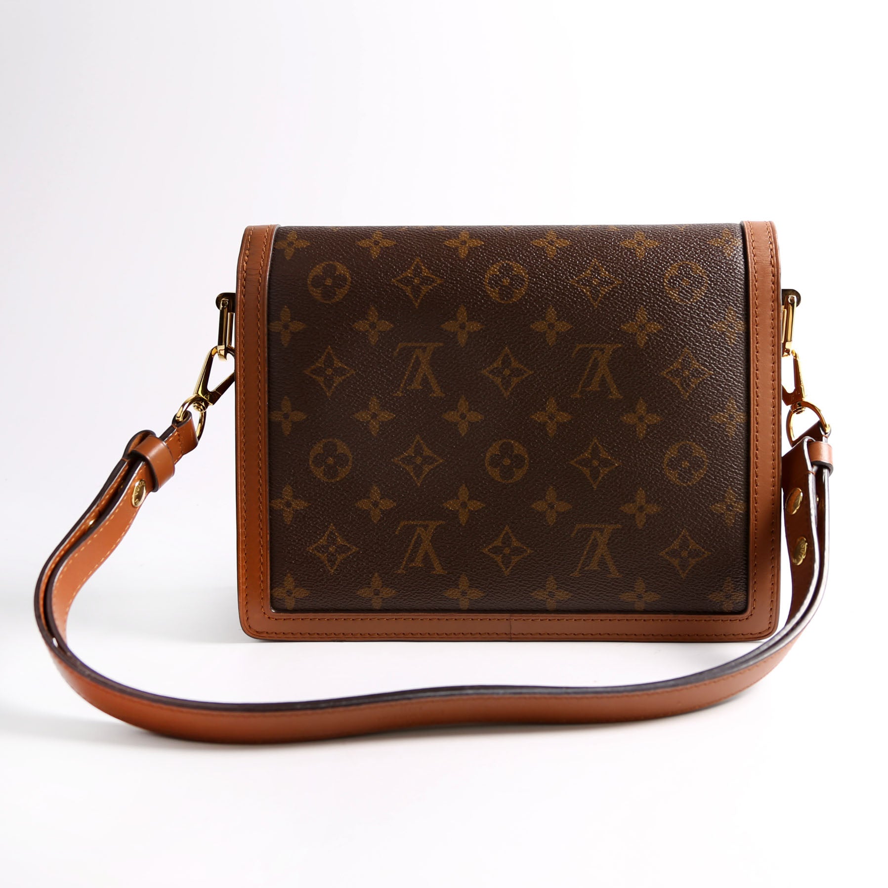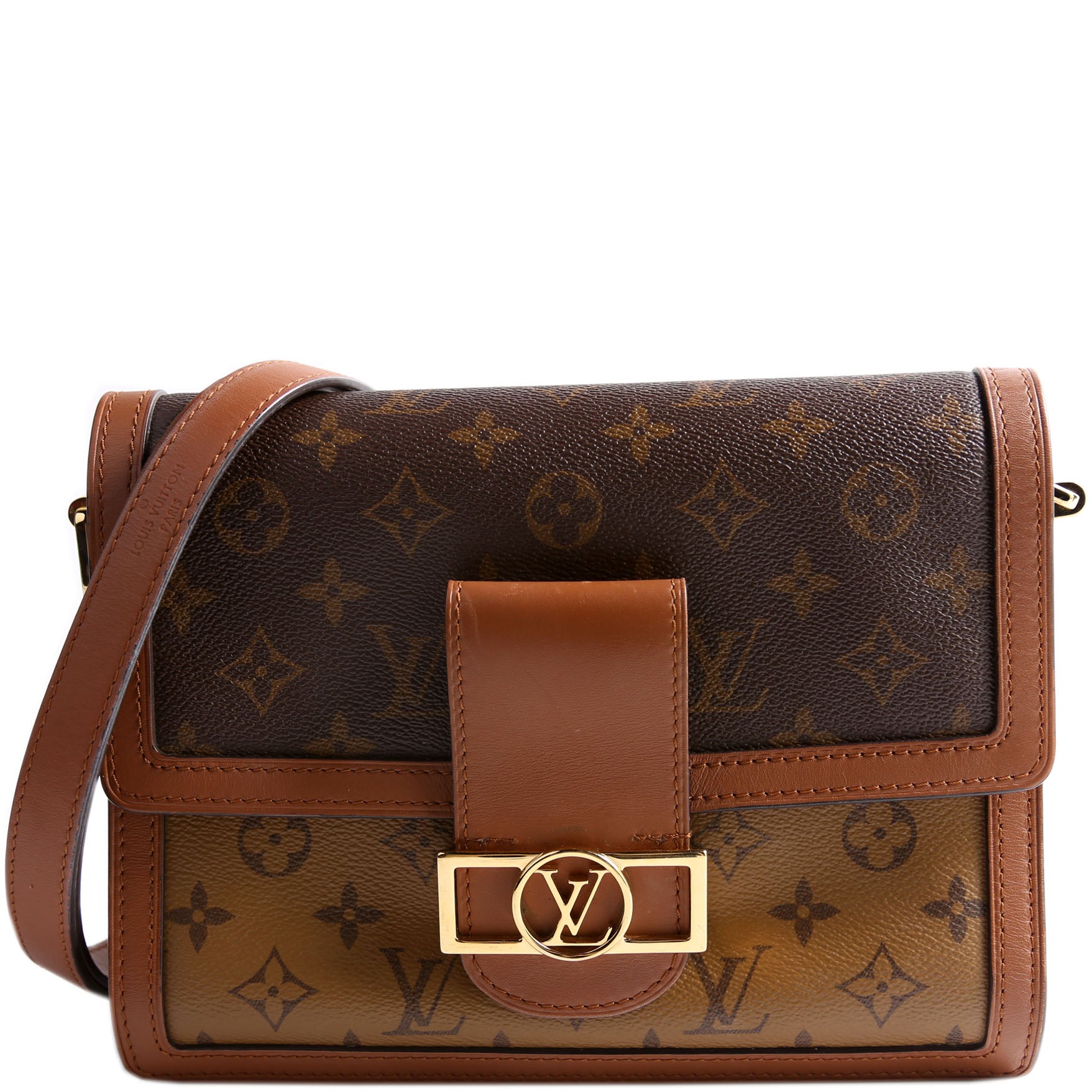This pre-owned Louis Vuitton Dauphine MM is guaranteed 100% authentic. The exterior is in the Louis Vuitton Reverse Monogram coated canvas.