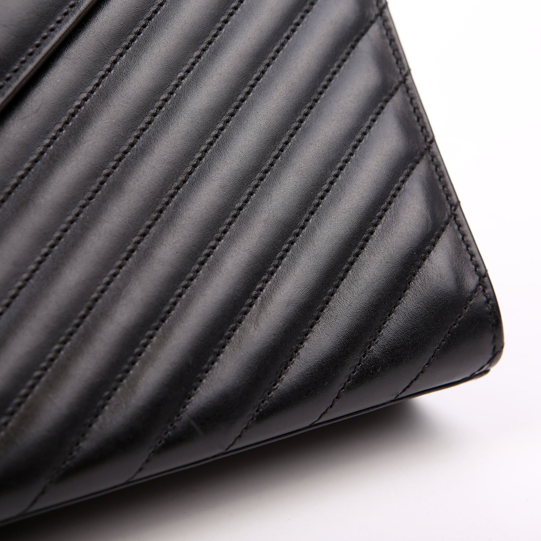 This pre-owned Saint Laurent Envelope Large Chevron is guaranteed 100% authentic. The exterior is in the classic lambskin leather.